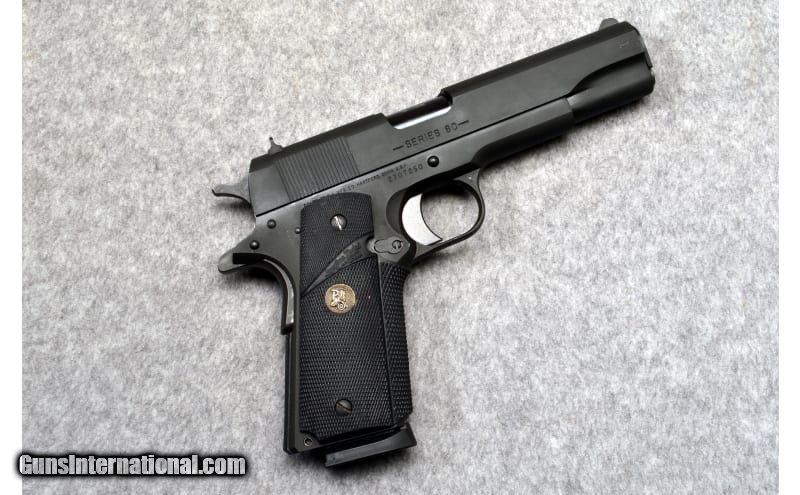 Description: The pistol has a nice finish throughout with minor scratches on the slide. The rubberized Pachmayr grip is in very good condition. The bore is bright with good rifling. Comes with 2 Magazines. .45 Auto SOLD Metal Condition: Very Good with minor cosmetic flaws on slide Bore Condition: Bright and Shiny Barrels: 5 Triggers: Factory Weight: 2.50 lbs. Sights: Fixed Item Location: League City, TX |