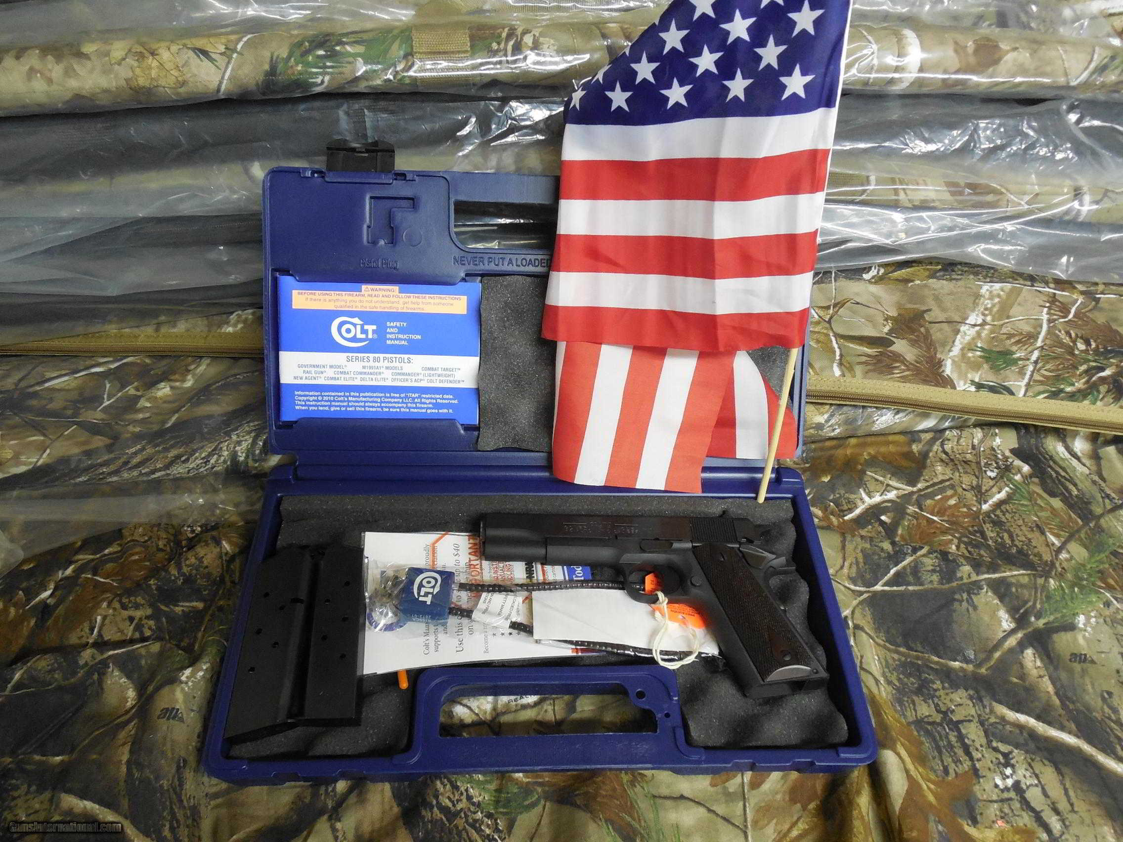 Description: FACTORY NEW IN BOX CLICK ON PICTURES TO ENLARGE Product Description The Colt 1991 series is a direct descendant of the original Colt M1911. A long trigger, flat mainspring housing, and original style recoil spring system remain from the original M1911 design. The Series 80 Government pistols have a 5" barrel and feature high profile sights with dots, a lowered ejection port for extra reliability, a spur hammer, solid aluminum trigger, a standard safety lock, and a standard grip safety. Specifications Type:Pistol Action:Single Caliber:45 Automatic Colt Pistol (ACP) Barrel Length:5.0" Capacity:7+1 Safety:Grip Grips:Rosewood Sights:3-Dot White Weight:35 oz Frame Finish:Blued Frame Material:Carbon Steel Slide Description:Blued Case Type:Hard PAYMENTS : WE TAKE Money Order, Certified Checks & Credit Cards, ( we charge 3% on Credit Cards because that is what they charge us. ) PERSONAL CHECKS HELD TILL CLEARED Postal Money Orders & Credit Cards are preferred and ships the Quickest SHIPPING FOR HAND GUNS $ 25.00 U.S. SALES ONLY SHIPPING FOR RIFLES $ 30.00 U.S. SALES ONLY LAYAWAYS AVAILABLE PLEASE BE SURE THIS GUN IS LEGAL IN YOUR STATE I WILL SHIP GUN TO YOUR FFL DEALER; YOU NEED TO SEND ME THE PHONE # OF YOUR DEALER SO I CAN CALL FOR HIS OR HER FFF LICENSE All firearms must be shipped to a FFL transfer dealer. We ship to the US ONLY. It is your responsibility to make sure you comply with the laws of your county, state, and city on ALL item. We may sometimes use file photos instead of the actual gun. WHEN E-MAILING ME I WILL REPLAY, IF YOU DO NOT SEE A REPLAY FROM ME, CHECK YOUR JUNK MAIL, IT MAY GO THERE SOMETIMES I HAVE BEEN ON THIS SIGHT FOR OVER 4 YEARS AND HAD OVER 4,000 ITEMS LISTED AND SOLD!!!!!!!!!!!!!!!!!!!!! YOU CAN REST EASY WITH US. WE HAVE A PLATINUM RATING & WE ARE ALSO A VERIFIED SELLER WITH GUNS INTERNATIONAL. WE ARE THE HONEST & TRUSTED STORE !!!!!!!!!! THANK YOU AND GOD BLESS OUR TROOPS!!!!!!!!!!!!! JOIN THE N R A; THE GUN OR AMMO YOU SAVE MIGHT BE THIS ONE!!! By purchasing this item, you certify that you are at least 21 years of age, live in a state where this purchase is not prohibited, you are not under indictment for, and have not been convicted in any court of a crime punishable by imprisonment for a term exceeding 1 year, you are not a fugitive from justice, are not an unlawful user of or addicted to any controlled substance, have not been adjudicated as a mental defective nor have you been committed to any mental institution, and you are not an alien illegally or unlawfully in the United States. SEE ALL OF AA GUNS & AMMO’S ITEMS AT aagunsandammo (GUNS, AMMO, HOLSTERS, SCOPES, RED-DOTS, MAG LOADERS, EXTRA MAGAZINES, BAYONETS & MUCH MORE) NEW STUFF ALWAYS COMING IN. SOLD |