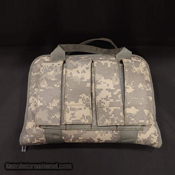 Description: This 1911 handgun is in fine condition but has a few scratches on the barrel and a crack on the grip. It does come with a camo case and four magazines for a quick load up. Still a fine piece to add to the collection! Pre-Owned - 1911 Colt Government A1 .45ACP Handgun