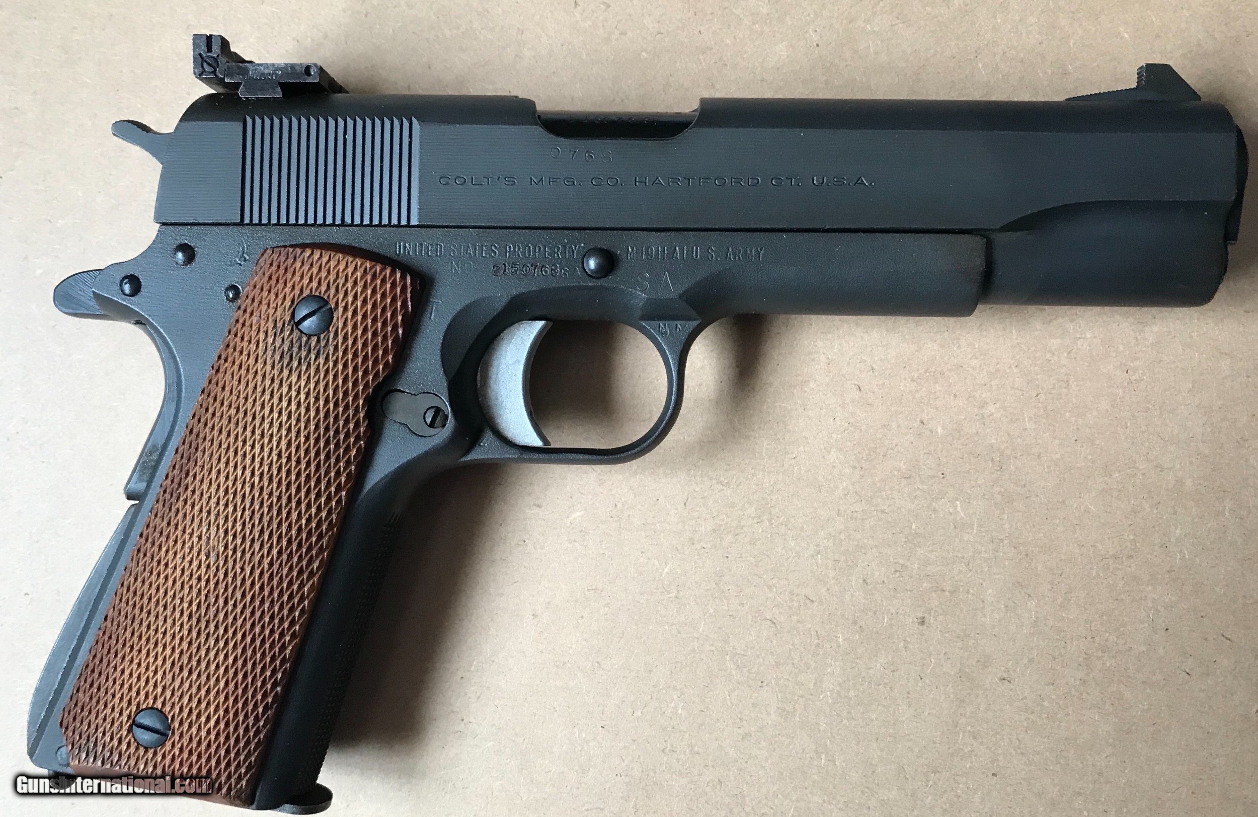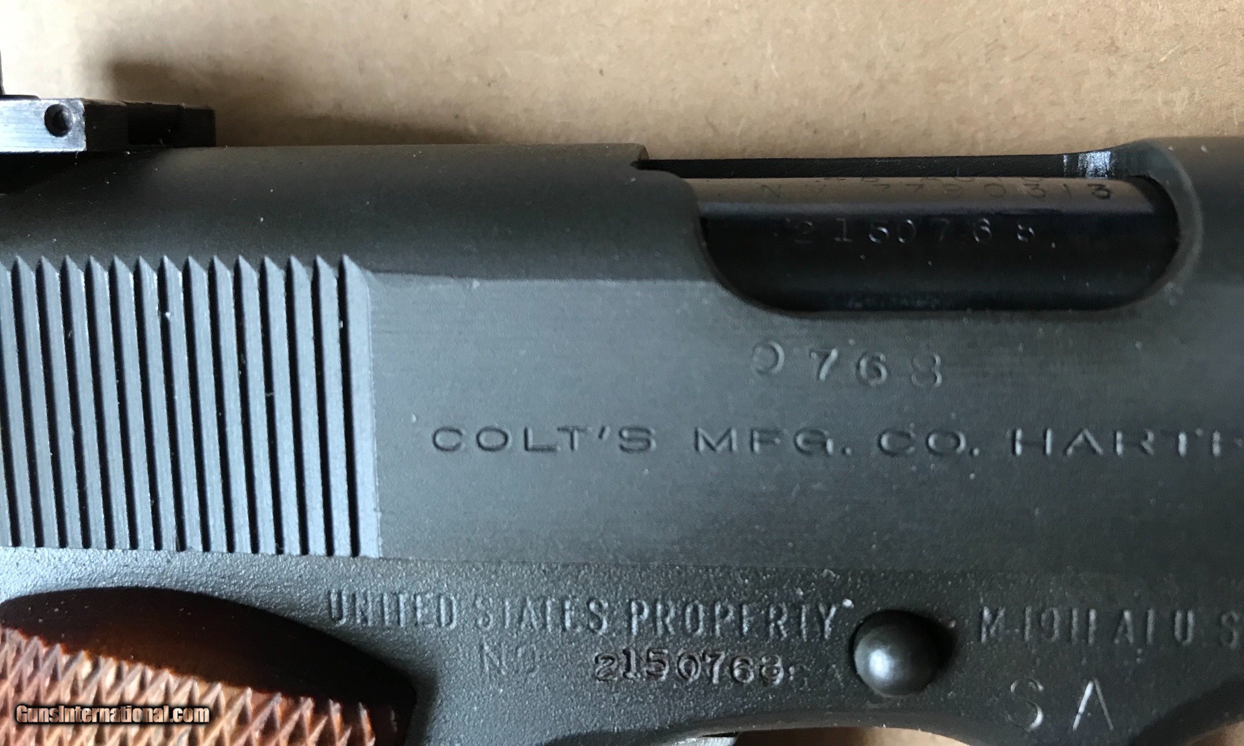 Description: circa 1962. 99%...outstanding original specimen. Most likely arsenal tested only. The Colt slide to Remington Rand frame is super tight. Was found in a sock, in a dresser. Any questions please call. Gary 570-428-5742. $2850.00 shipped to FFL. If you are C&R, my FFL must have copy of some kind of id with picture. SOLD Curio/Relic: Yes |