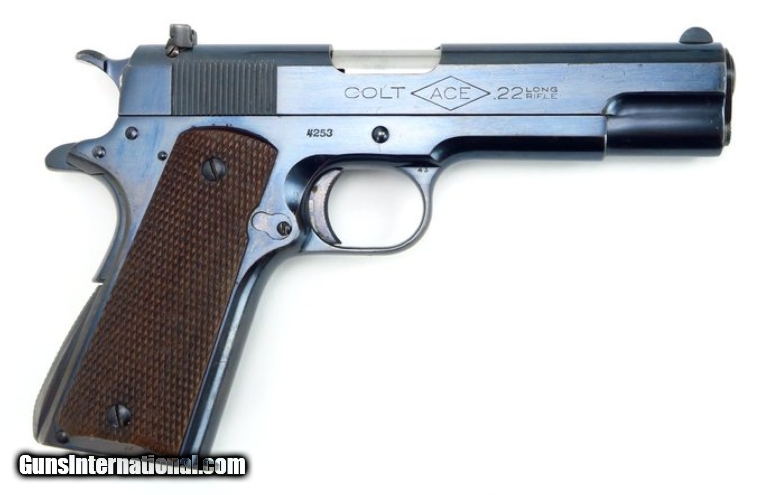 Colt ACE .22 LR caliber pistol. Manufactured approximately 1932. Excellent bore. Gun has 95-96% blue. Action works perfectly. Grips are very good plus with the tops of a few checkered diamonds flattened just slightly.