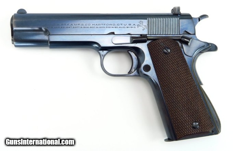Description: Colt ACE .22 LR caliber pistol. Manufactured approximately 1932. Excellent bore. Gun has 95-96% blue. Action works perfectly. Grips are very good plus with the tops of a few checkered diamonds flattened just slightly. SOLD |