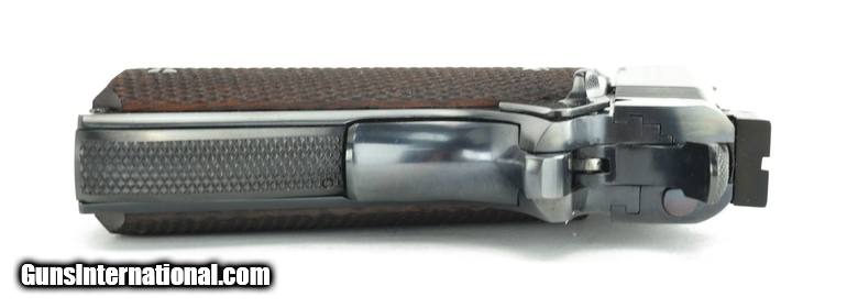 Description: "Colt Ace .22LR caliber pistol. Beautiful service model Ace. Blue finish. When we got this pistol, we thought it was in mint condition. Everything was perfect. Perfect slide markings, perfect WE inspection markings. You could not ask for a better service model blue Ace! With a 40x power loupe we found two or three microscopic pit areas. They are so tiny you have to remember where to look with the loupe. Slide is numbered to the frame. Bore is perfect. Action is perfect. Grips are 99% perfect. Correct marked service model Ace magazine is mint. This is absolutely the best refinished Colt auto we have seen in 45 years of selling many thousands of auto Colts. This could easily sell for $7500 if not refinished. We are selling it as described. SOLD |