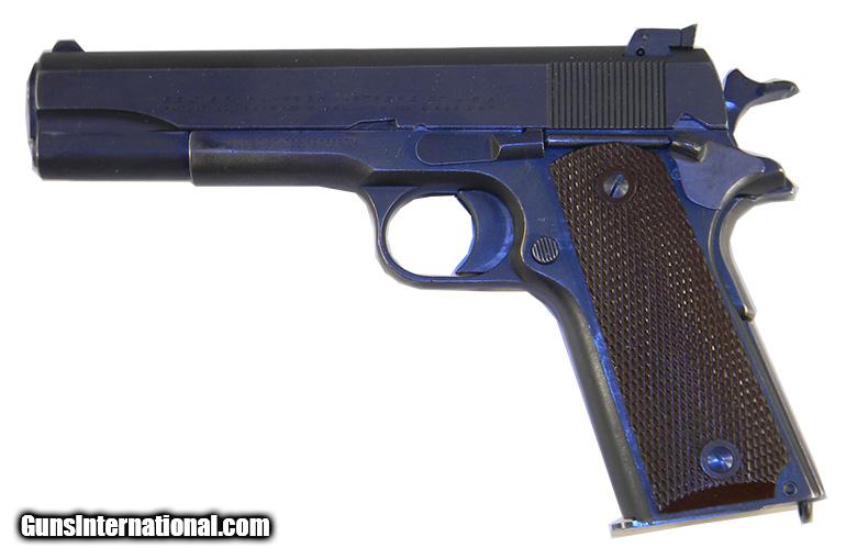 Description: 1918 Colt that has two arsenal rework stamps "Agusta Arsenal AA" and "Rock Island Arsenal RIA" with "fK" inspector under serial number 38235. Frame marked "United States Property". It has "Colt Service Model" and "Ace 22 Long Rifle" on slide. Very good to excellent finish and condition. Comes in D.C.M. cardboard box with wax paper. A nice original U.S. Pistol. SOLD Curio/Relic: Yes |