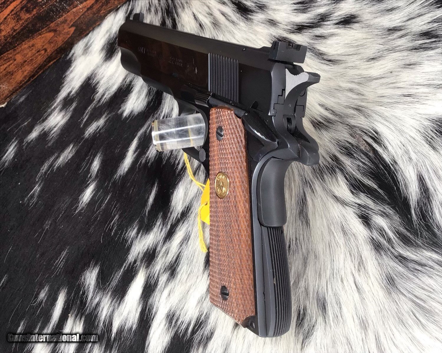 Description: Beautiful 99% condition , 1979 Colt Sercice Ace ,Unfired since factory in numbered to gun factory original box with manual and papers. Our shop has seen a few of this model pass through our doors in the last five years,this one is in the highest condition we have seen. One Colt branded magazine, deep polished blued finish. The Service Ace model was developed for the US military to simulate the recoil of the .45acp, implementing a floating chamber while firing the .22 LR round. Add 3% if paying with credit card. Bless America from a proud American, and a Viet Nam Vet , thankful for ourGod Bless America from a proud American, and a Viet Nam Vet , thankful for our freedoms.. paid for by the Blood ,Sweat and Tears of our brave men and women in uniform. Ten Below Firearms is a Veteran owned and operated business. We specialize in out of production models of high quality firearms. We love to ship! If you are out of state or can't make it to our store, just give us a call! Handguns normally ship for $30 and Long guns for $40 to $65 for extra length long guns. That's 2-3 day USPS Priority shipping, Delivery conformation and with tracking number. Optional Postal insurance is additional $1.70 per $100 and highly recommended. freedoms.. paid for by the Blood ,Sweat and Tears of our brave men and women in uniform. Ten Below Firearms is a Veteran owned and operated business. We specialize in out of production models of high quality firearms. We love to ship! If you are out of state or can't make it to our store, just give us a call! Handguns normally ship for $30 and Long guns for $40 to $65 for extra length long guns. That's 2-3 day USPS Priority shipping, Delivery conformation and with tracking number. Optional Postal insurance is additional $1.70 per $100 and highly recommended. SOLD Handgun Caliber: .22 Long Rifle Manufacturer: Colt Model: Service Ace Serial Number: 39701B70 Barrel Length: 5 inch Condition: Excellent Metal Condition: Excellent Wood Condition: Excellent Bore Condition: Excellent Action: S/A semi-auto Finish: Blued Manufacture Date: 1979 Item Location: Mn |