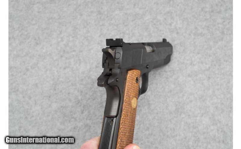 Description: SOLD Curio/Relic: Yes Caliber Info: .22 LR Metal Condition: Excellent Wood Condition: Excellent Bore Condition: Clean and sharp Barrels: 5 Triggers: SA; with grip safety Stock: Checkered walnut grips with Colt medallions Weight: 2 lbs 8 oz. Sights: Adjustable target rear; blade front Extras: Factory box and one magazine. Item Location: Sun Prairie, WI |