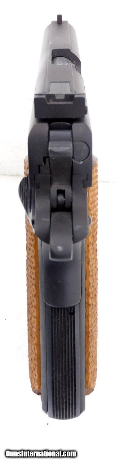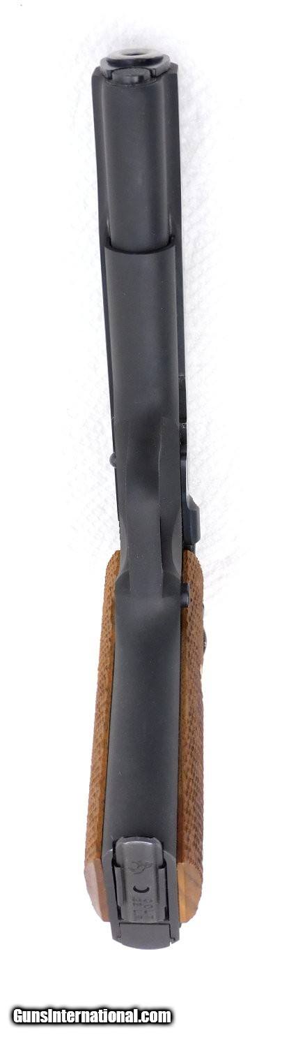 Description: Colt ACE 22 Semi-Automatic Pistol Manufacturer: Colt Model: Service Model ACE Caliber: .22 LR Manufactured: 1983 Barrel: 5", bright shiny bore, strong rifling Rear Sight: Adjustable square notch Front Sight: Blade style Finish: Blued, extremely light handling marks Action: Semi-automatic, mechanically solid, fed by removeable magazines, manual safety, grip safety, serrated trigger - hammer spur Grips: Excellent checkered walnut with inset gold Rampant Colt medallions Accessories: One 10 round Colt magazine, original cardboard box with fitted styrofoam insert, original documentation Condition: Absolutely gorgeous Colt Service Model ACE pistol in excellent used condition. See pictures. Serial Number: 70B51051 Sprague's Number: 141039 Add 3% for Credit Card Shipping $45.00 in the 48 contiguous United States SOLD |