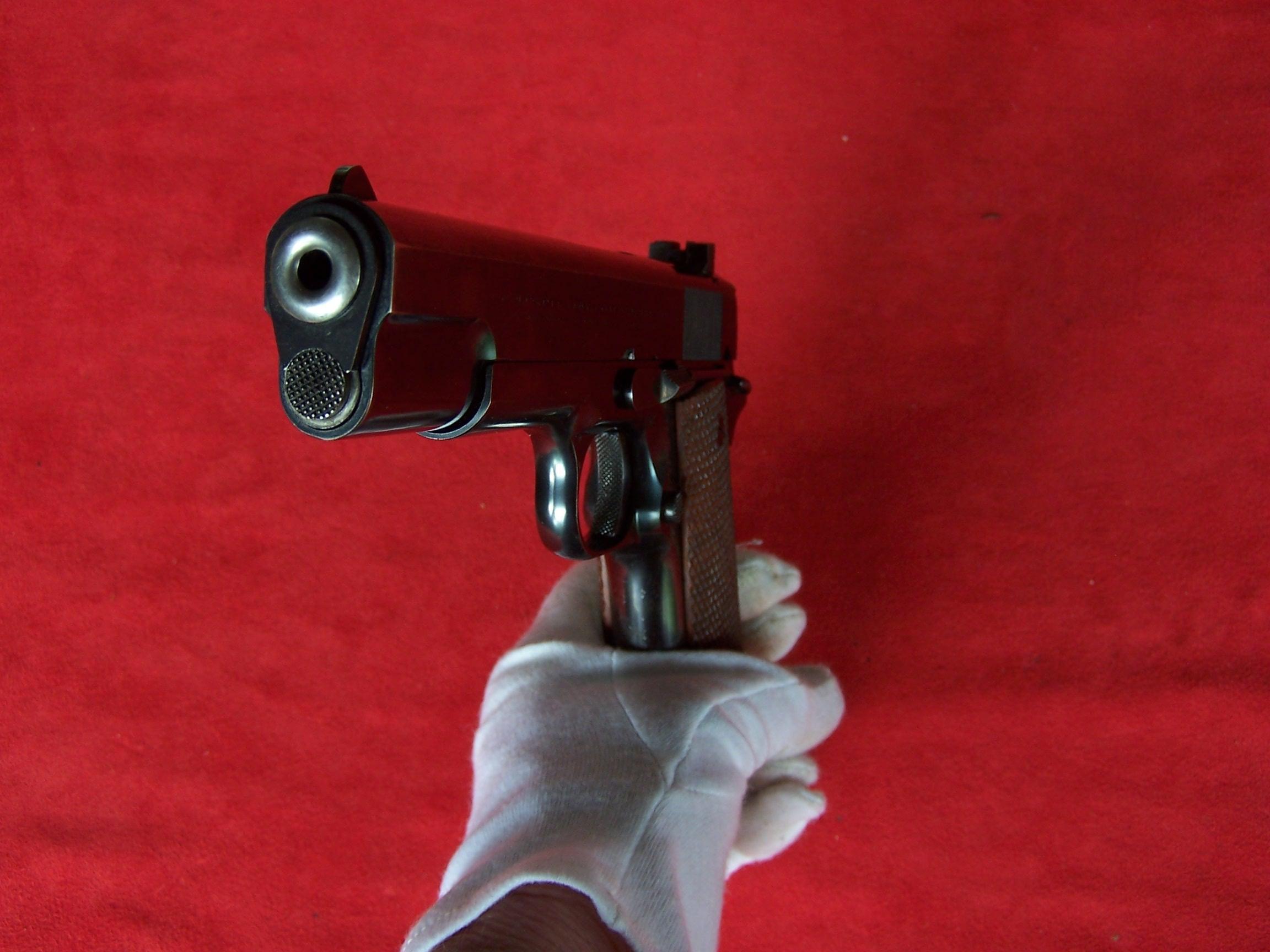 Description: An extremely nice Colt Ace .22 caliber from 1937 that remains in it’s original box and has all the paperwork including the instruction and takedown pamphlet, target and shooting suggestions. This is a very high condition pre war Ace that is mechanically perfect. The bore is like new and the original checkered walnut grips look like they did when the gun left the factory. The finish rates in the 98% range with just a few small faint spots and some edge wear at the muzzle. The original box remains in very good condition and does not have any broken corners. I offer a three day non firing inspection period and always want the buyer to be satisfied with their purchase. The gun will be packed correctly with the gun in a zipper sleeve and shipped via FedEx Air with insurance to your FFL dealer in the continental United States for $55 (California is extra because I have to ship through my local dealer). This gun requires a C&R or FFL license for transfer. I ship the following day after the payment arrives and provide tracking information. Please see my other Colts and various collectible firearms that I have listed. Thanks for your interest and please let me know if you have any questions. Price is $6750 plus $55 insured shipping. Please call Cam 931-484-3200 with any questions. Please Note: This item is sold pending funds. Please Note: A same as cash price Lay-A-Way plan is available on this gun. Please call to discuss. SOLD Curio/Relic: Yes Manufacturer: Colt Model: Pre War Ace Pistol Serial Number: SN 8901 Caliber Info: .22 Caliber Condition: Excellent Metal Condition: 98% Wood Condition: As New Bore Condition: Excellent Barrel Type: Taget Action: Automatic |