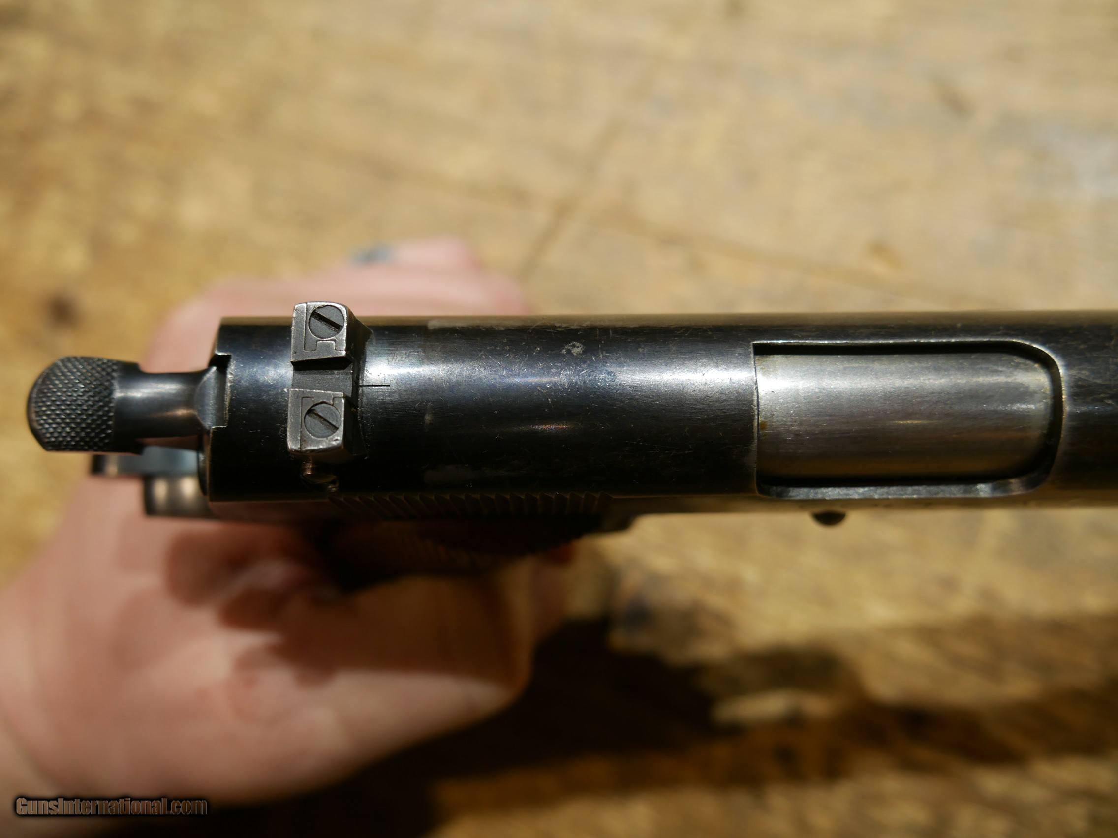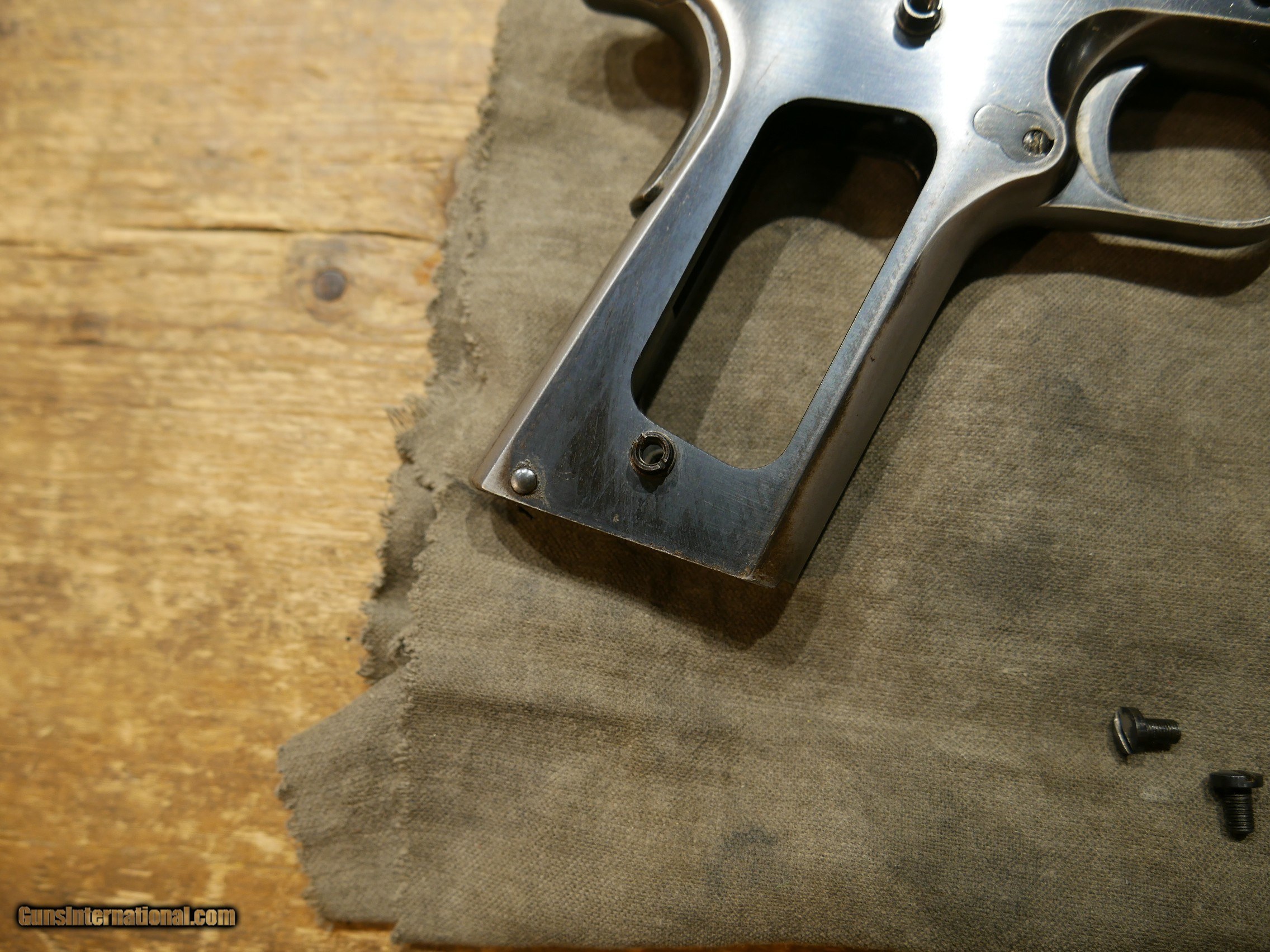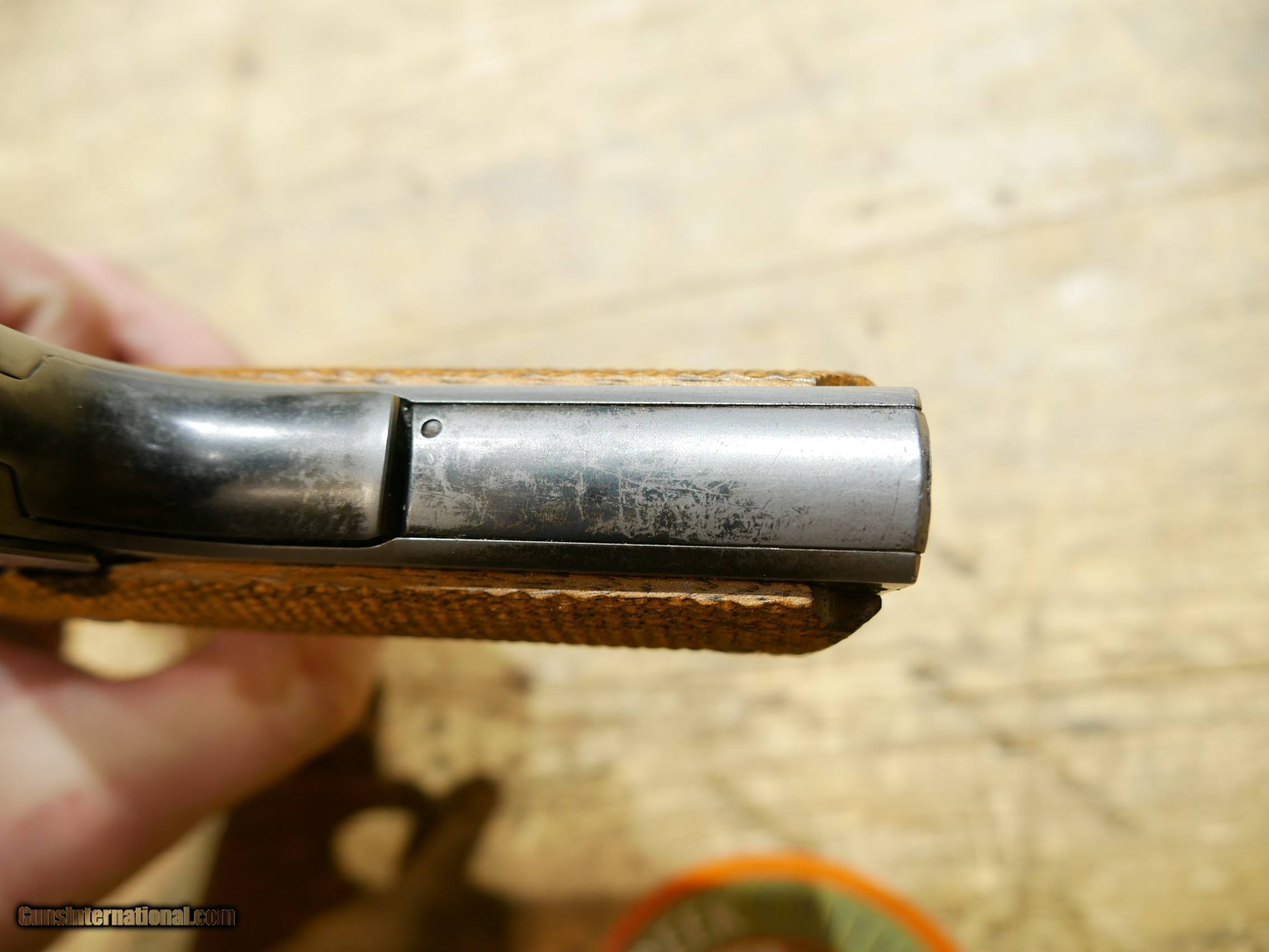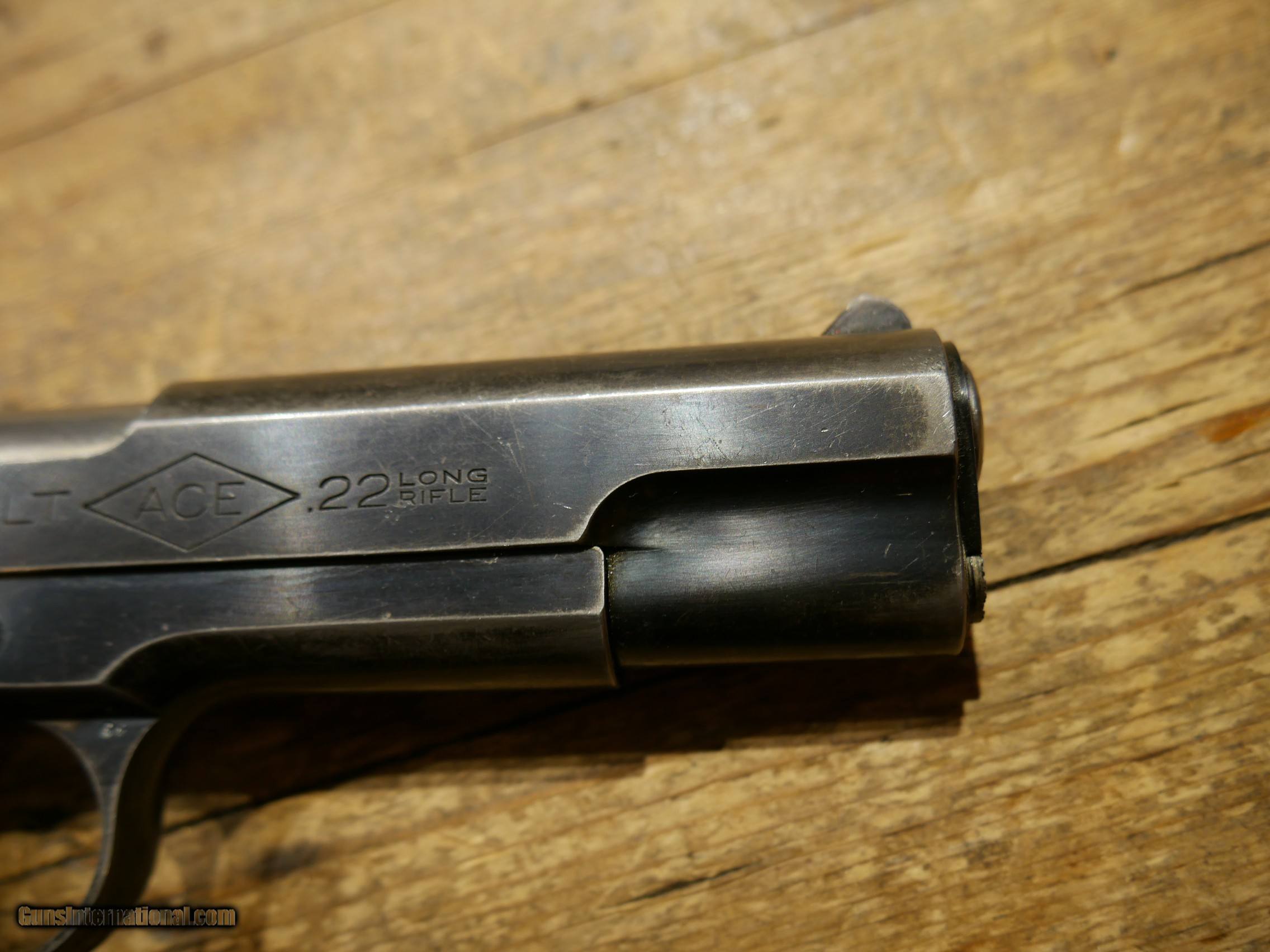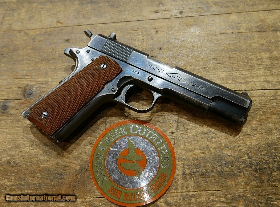 Description: Colt Ace Model semi-auto pistol in .22LR. 1911 single-action-only design. SN 6152, looks like 1936 production when running through Colt's online look-up. Adjustable rear sight. Wood grips are likely replacements but the screws seem to match the gun. Comes with 1 10-rd two-tone colt 22lr mag. Solid barrel, this was built before the "floating chamber". Slide does not lock back on an empty mag but the slide release can be pushed up to lock. This wonderful piece of Colt history is in good overall shape and very good internally. It shows years of good honest wear through out but function is excellent. Bore is shiny. Please see pics for details, if you'd like a different or more specific please pic please ask. This would be an excellent restoration candidate or just an honest shooter proudly displaying its history. Please call or email with any questions. Must ship to FFL. ***$40 SHIPPING AND INSURANCE*** ***NO CREDIT CARD FEES*** ***ALL WARRANTIES ARE HANDLED BY THE MANUFACTURER*** ***NO WARRANTIES THROUGH SILVER CREEK OUTFITTERS IMPLIED OR EXPRESSED*** ***MUST CALL TO COMPLETE TRANSACTION*** ***PLEASE BE IN CONTACT WITH A RECEIVING FFL AND BE PREPARED TO PROVIDE THEIR EMAIL ADDRESS OR AT LEAST THEIR PHONE WHEN MAKING PAYMENT*** SOLD Handgun Caliber: .22 Long Rifle Manufacturer: COLT'S MFG CO. Model: ACE Condition: USED, GOOD |