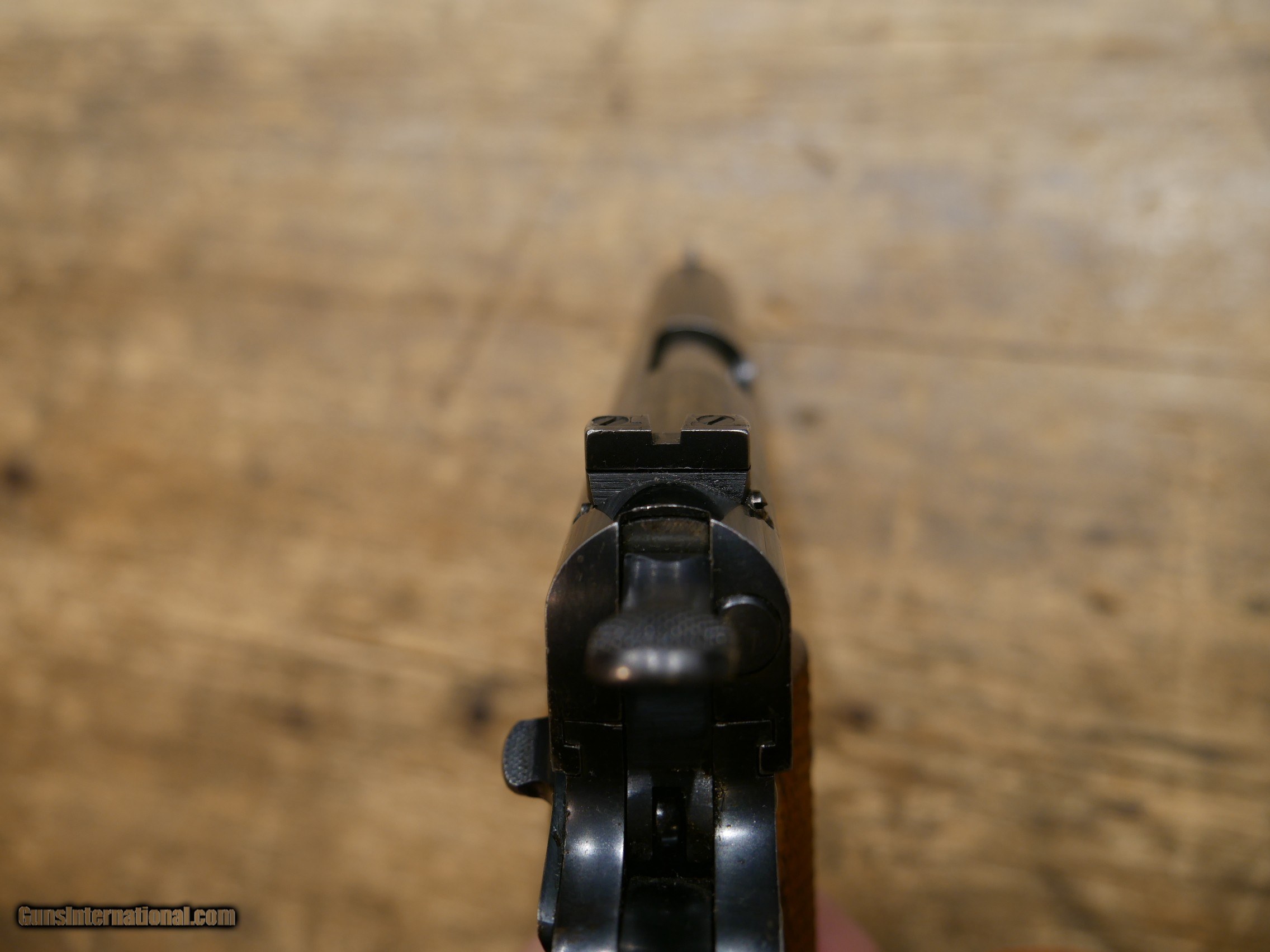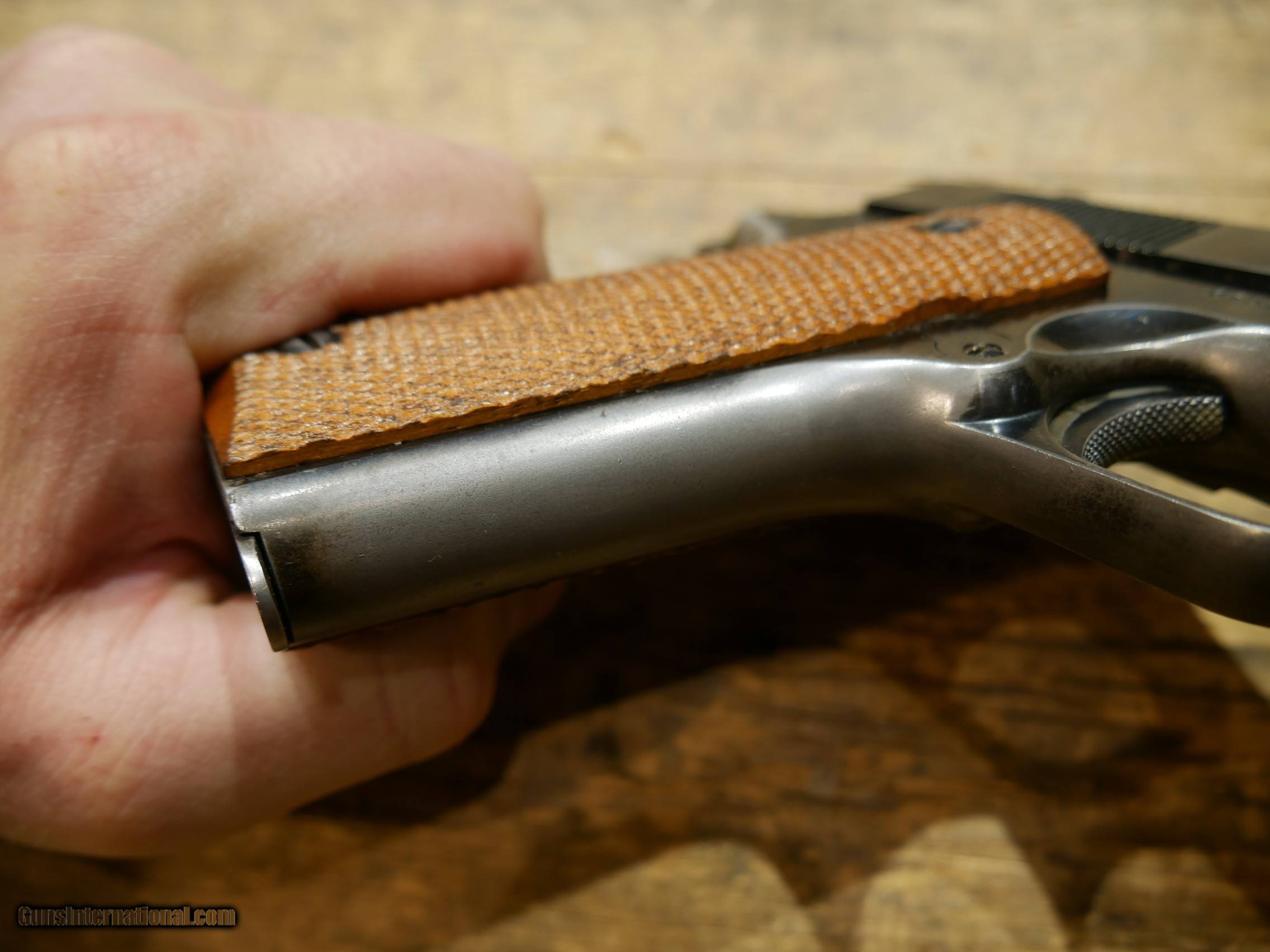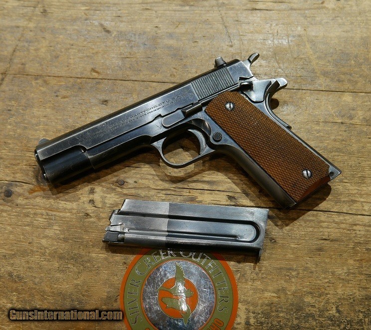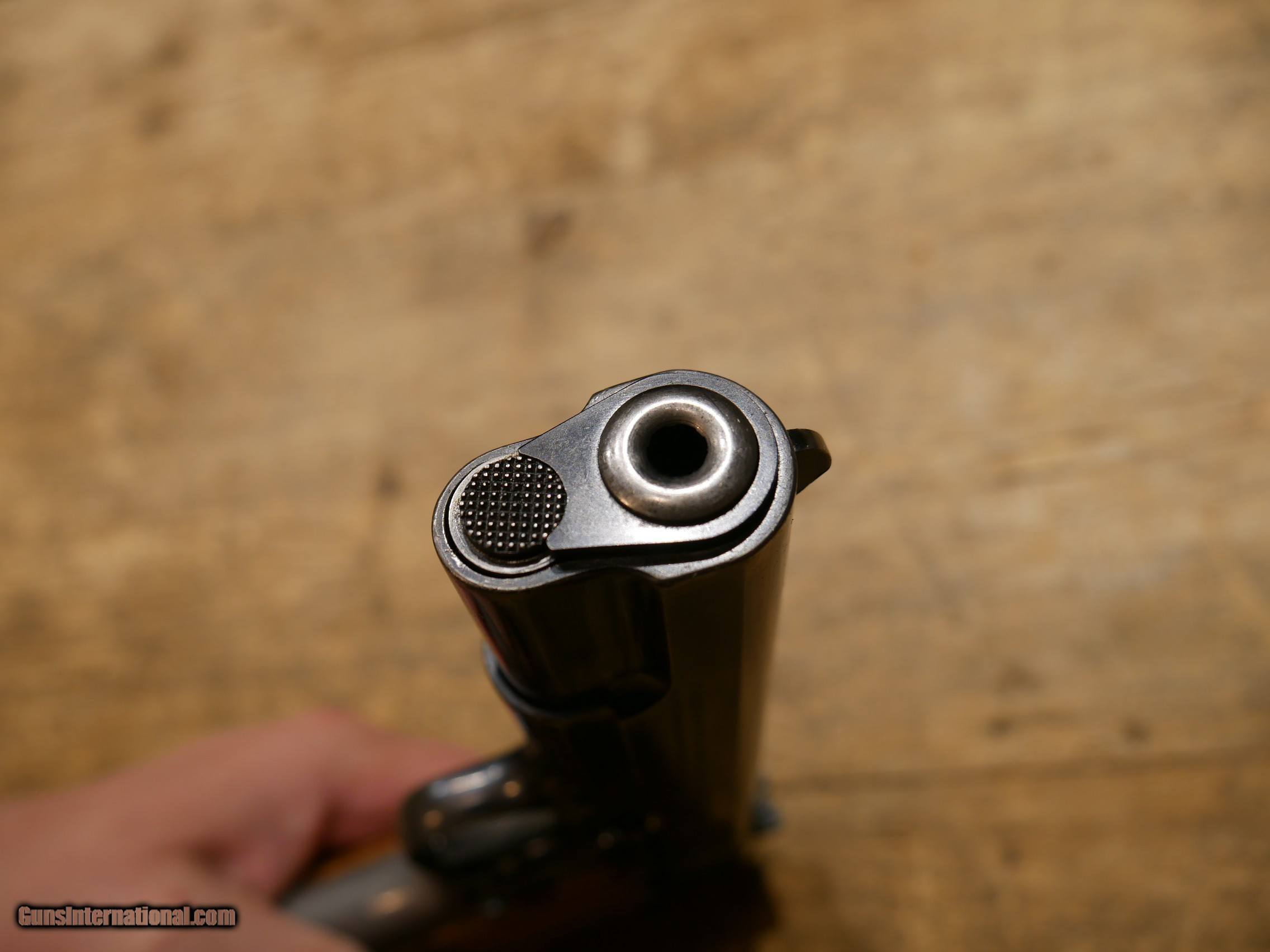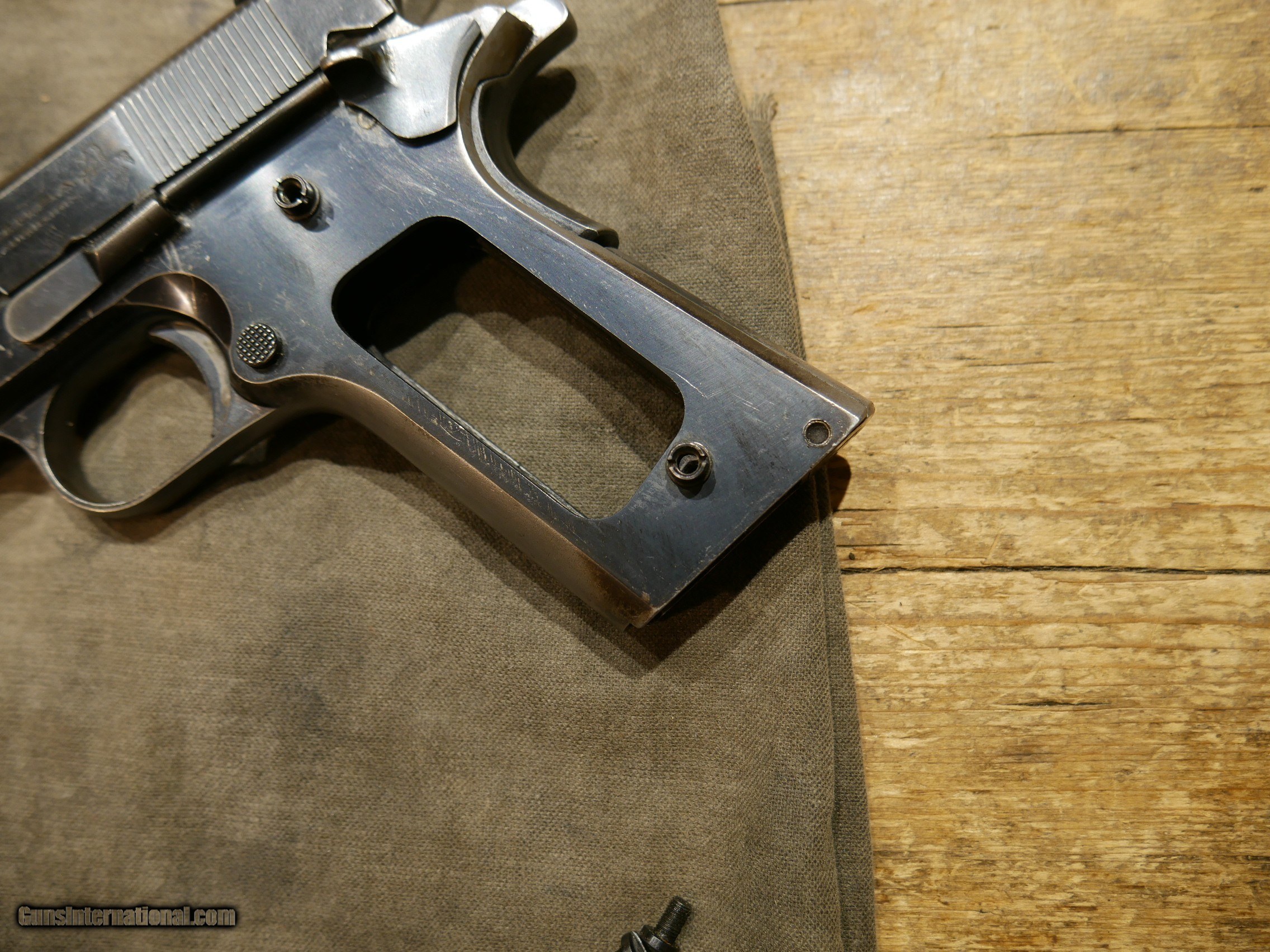 Description: Colt Ace Model semi-auto pistol in .22LR. 1911 single-action-only design. SN 6152, looks like 1936 production when running through Colt's online look-up. Adjustable rear sight. Wood grips are likely replacements but the screws seem to match the gun. Comes with 1 10-rd two-tone colt 22lr mag. Solid barrel, this was built before the "floating chamber". Slide does not lock back on an empty mag but the slide release can be pushed up to lock. This wonderful piece of Colt history is in good overall shape and very good internally. It shows years of good honest wear through out but function is excellent. Bore is shiny. Please see pics for details, if you'd like a different or more specific please pic please ask. This would be an excellent restoration candidate or just an honest shooter proudly displaying its history. Please call or email with any questions. Must ship to FFL. ***$40 SHIPPING AND INSURANCE*** ***NO CREDIT CARD FEES*** ***ALL WARRANTIES ARE HANDLED BY THE MANUFACTURER*** ***NO WARRANTIES THROUGH SILVER CREEK OUTFITTERS IMPLIED OR EXPRESSED*** ***MUST CALL TO COMPLETE TRANSACTION*** ***PLEASE BE IN CONTACT WITH A RECEIVING FFL AND BE PREPARED TO PROVIDE THEIR EMAIL ADDRESS OR AT LEAST THEIR PHONE WHEN MAKING PAYMENT*** SOLD Handgun Caliber: .22 Long Rifle Manufacturer: COLT'S MFG CO. Model: ACE Condition: USED, GOOD |