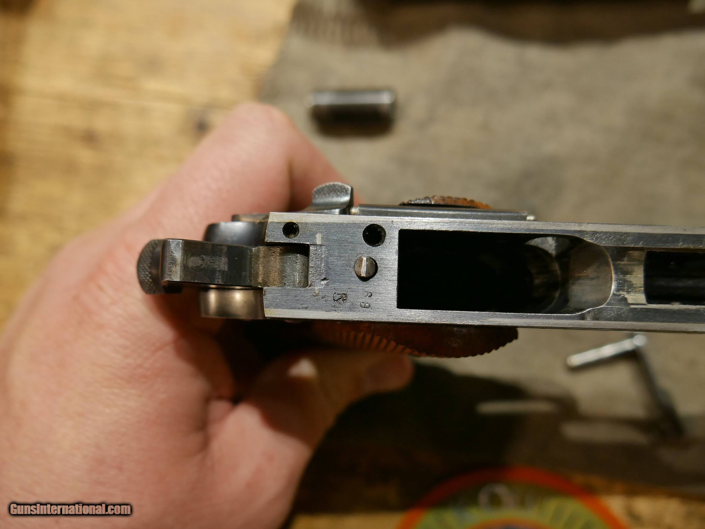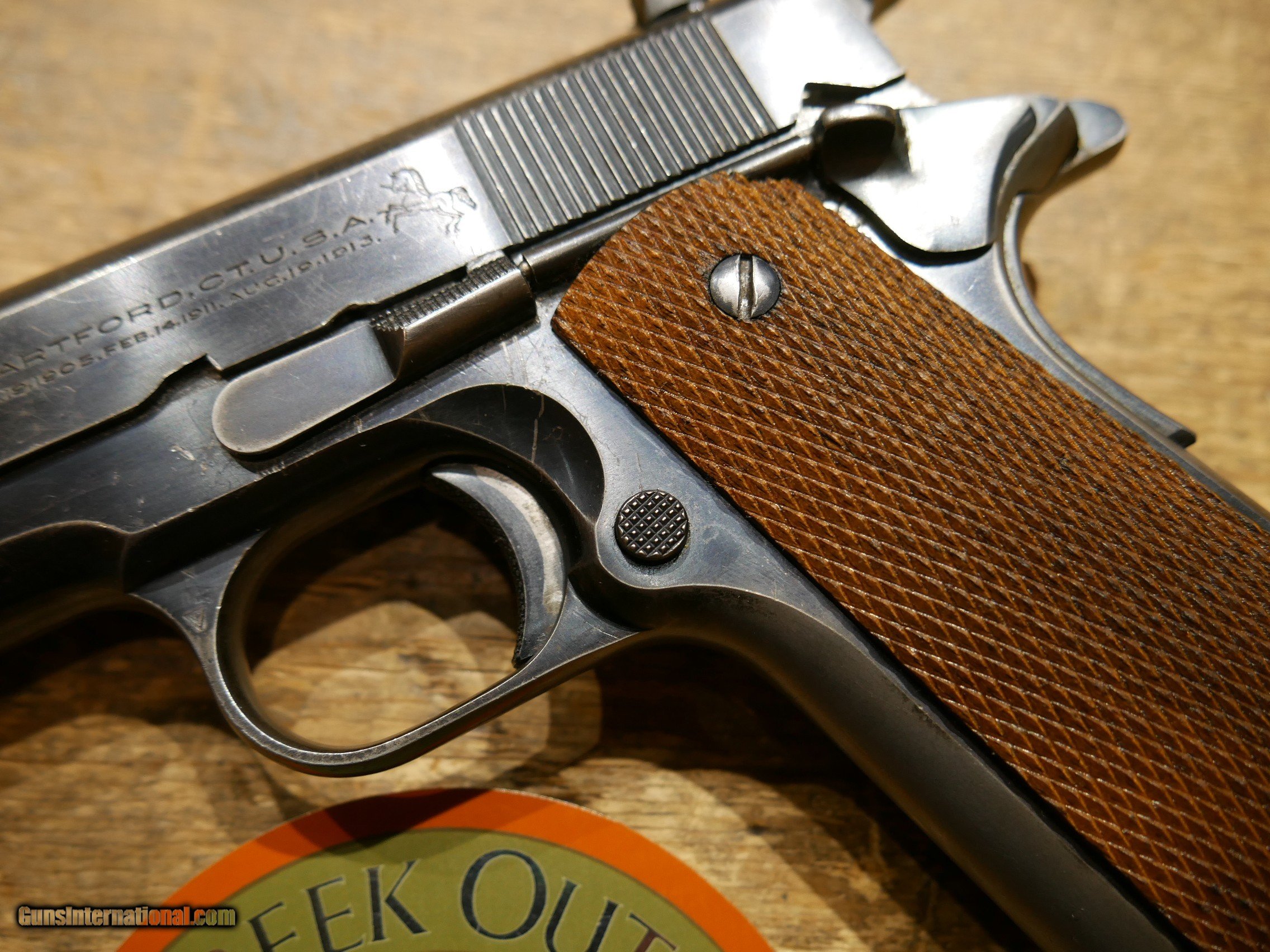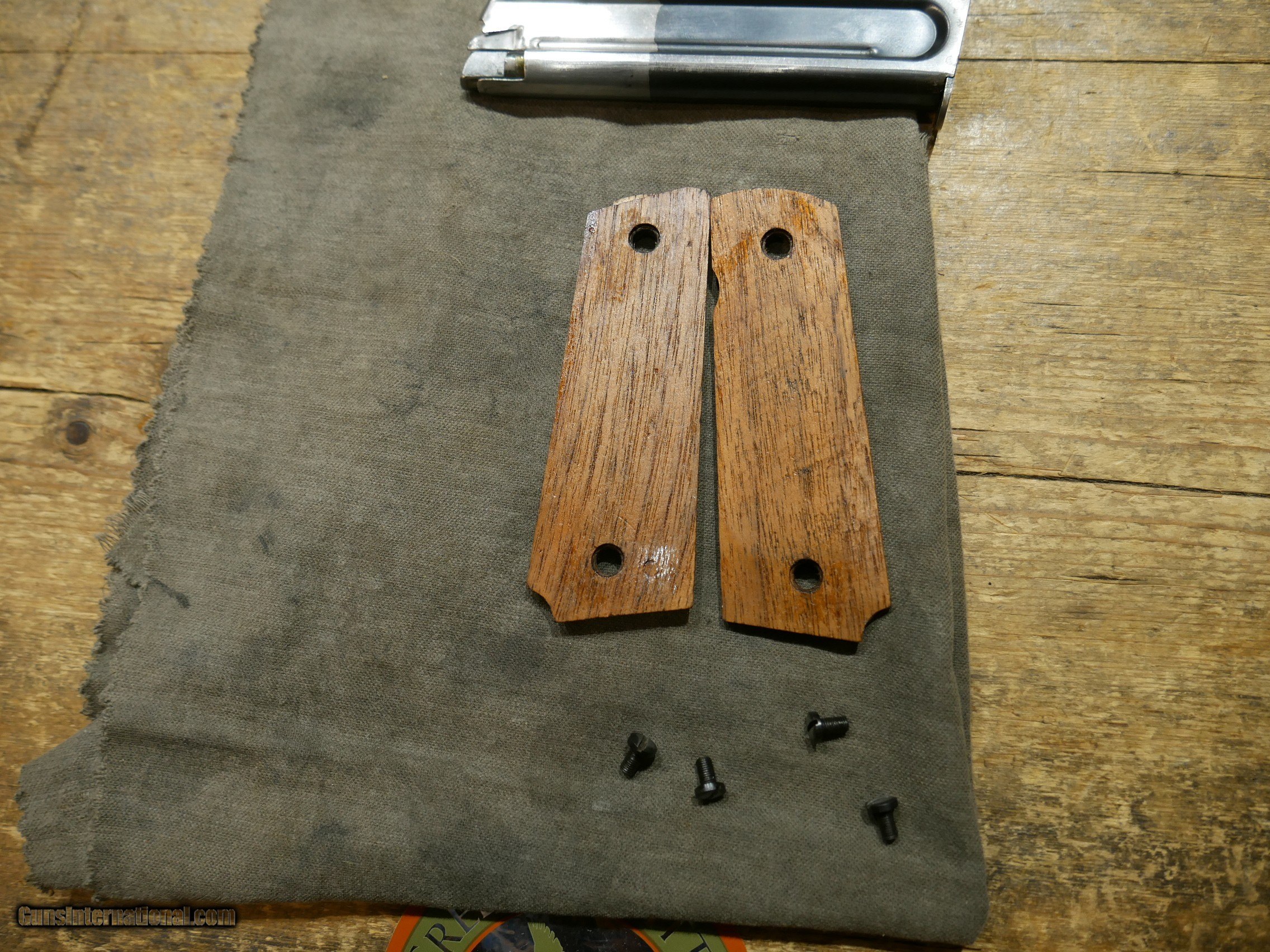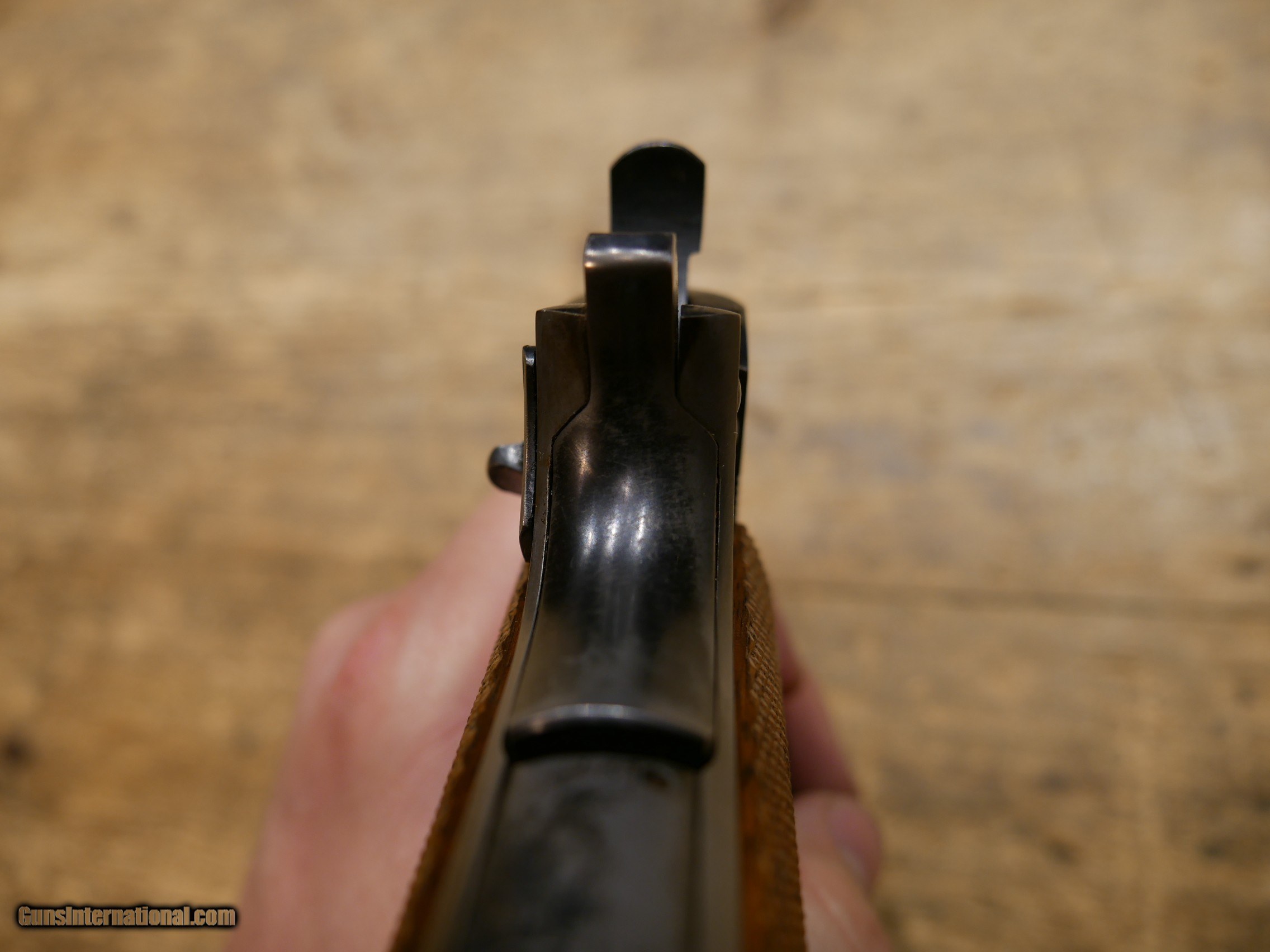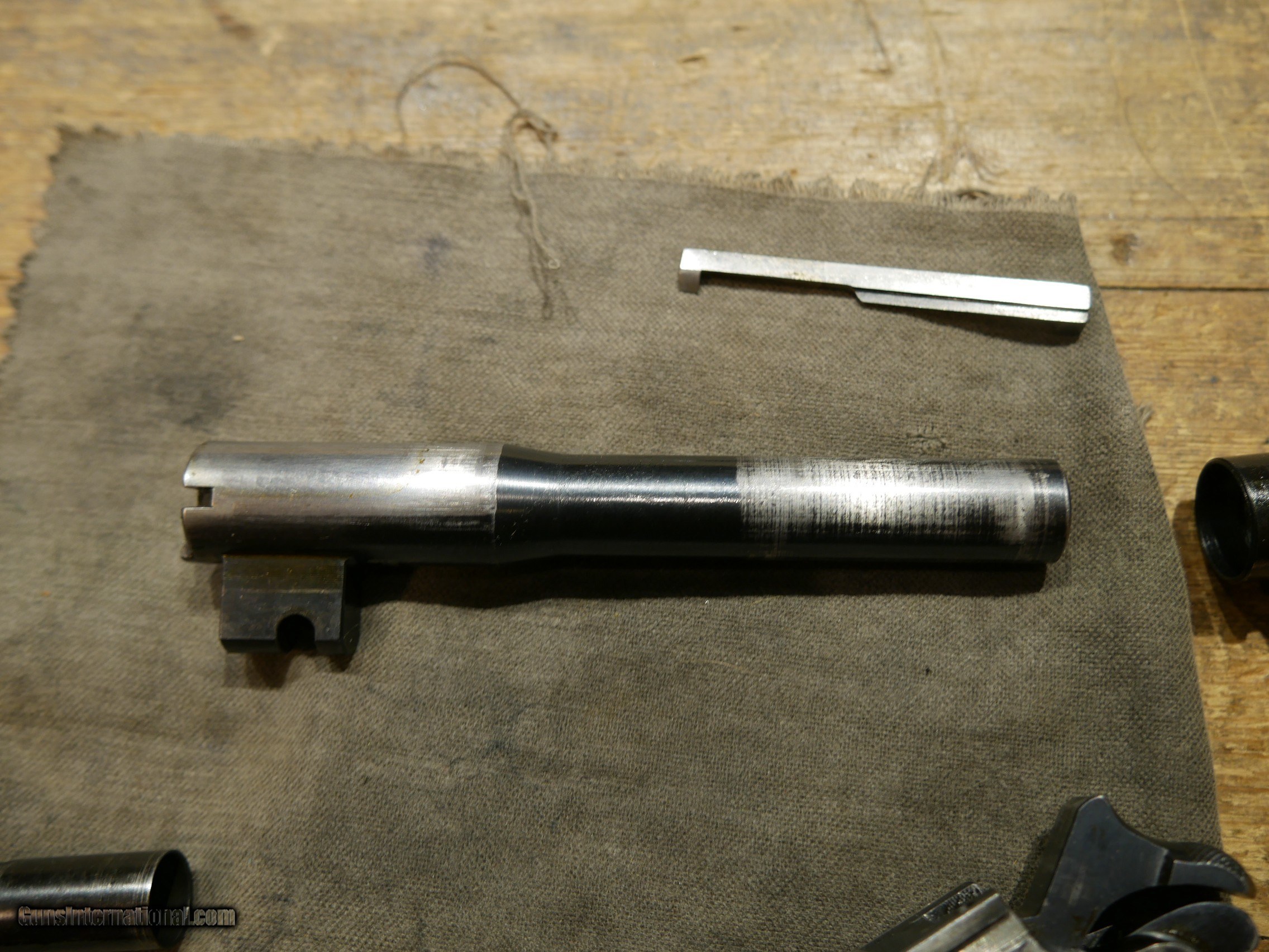 Description: Colt Ace Model semi-auto pistol in .22LR. 1911 single-action-only design. SN 6152, looks like 1936 production when running through Colt's online look-up. Adjustable rear sight. Wood grips are likely replacements but the screws seem to match the gun. Comes with 1 10-rd two-tone colt 22lr mag. Solid barrel, this was built before the "floating chamber". Slide does not lock back on an empty mag but the slide release can be pushed up to lock. This wonderful piece of Colt history is in good overall shape and very good internally. It shows years of good honest wear through out but function is excellent. Bore is shiny. Please see pics for details, if you'd like a different or more specific please pic please ask. This would be an excellent restoration candidate or just an honest shooter proudly displaying its history. Please call or email with any questions. Must ship to FFL. ***$40 SHIPPING AND INSURANCE*** ***NO CREDIT CARD FEES*** ***ALL WARRANTIES ARE HANDLED BY THE MANUFACTURER*** ***NO WARRANTIES THROUGH SILVER CREEK OUTFITTERS IMPLIED OR EXPRESSED*** ***MUST CALL TO COMPLETE TRANSACTION*** ***PLEASE BE IN CONTACT WITH A RECEIVING FFL AND BE PREPARED TO PROVIDE THEIR EMAIL ADDRESS OR AT LEAST THEIR PHONE WHEN MAKING PAYMENT*** SOLD Handgun Caliber: .22 Long Rifle Manufacturer: COLT'S MFG CO. Model: ACE Condition: USED, GOOD |