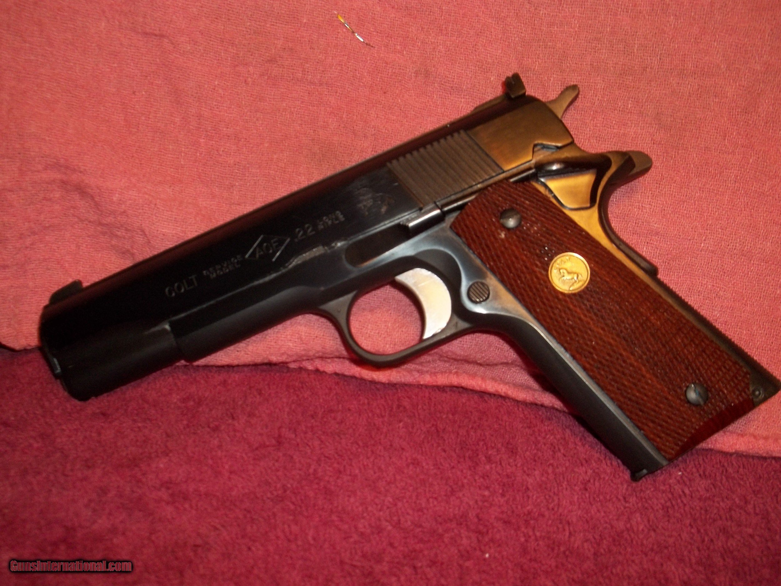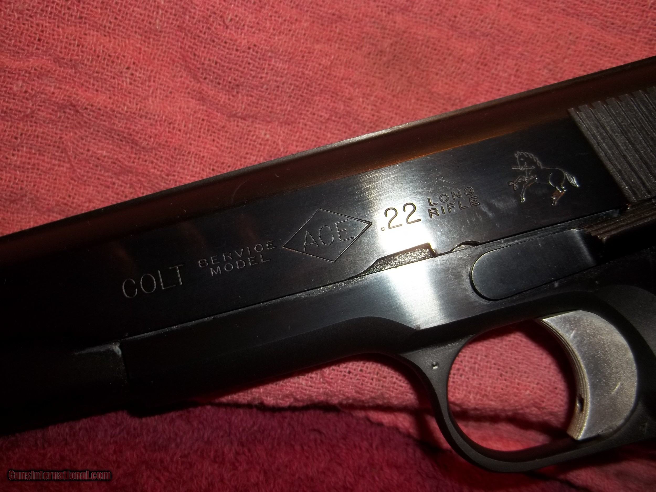 Description: Minty Post-War Ace Service Model...22LR...All original...Mfg. 1982...98% original Colt Blue Finish...Minty Bore & Walnut Grips...Colt Blue Hard case...Manual...Personal Chwck or Money Order...Layaway Available... SOLD |