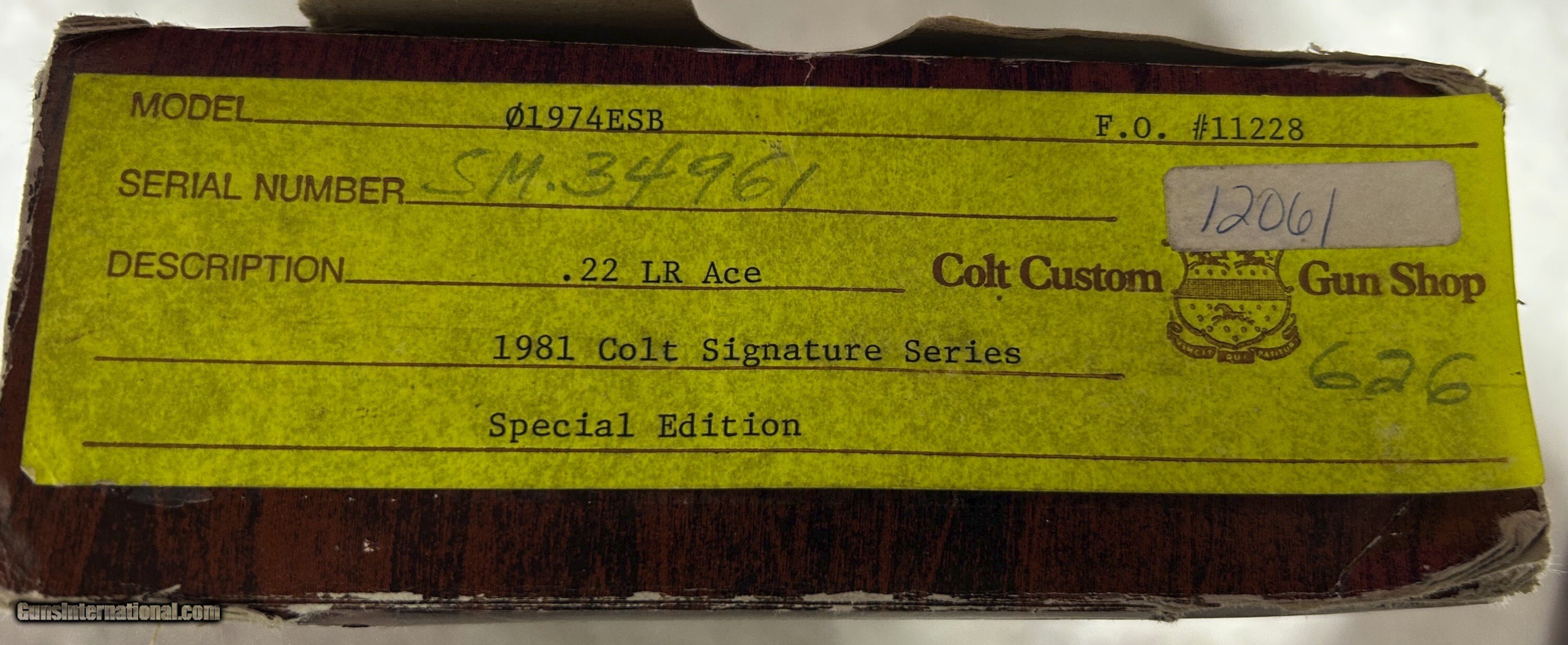 Description: New in the box Colt Ace 22lr. Custom shop 1981, $ 2.475.00 + $45 shipped to ypur FFL For payment i accept ; Postal money orders Ships next day Personal checks , MY BANK REQUIRES 11 BUISNESS DAYS TO GUARANTEE ME FUNDS FOR CHECKS I WILL SHIP DAY 12 Price: $2,475.00 Contact Seller |