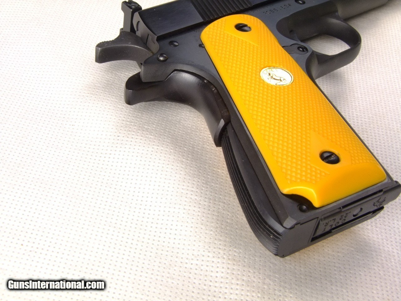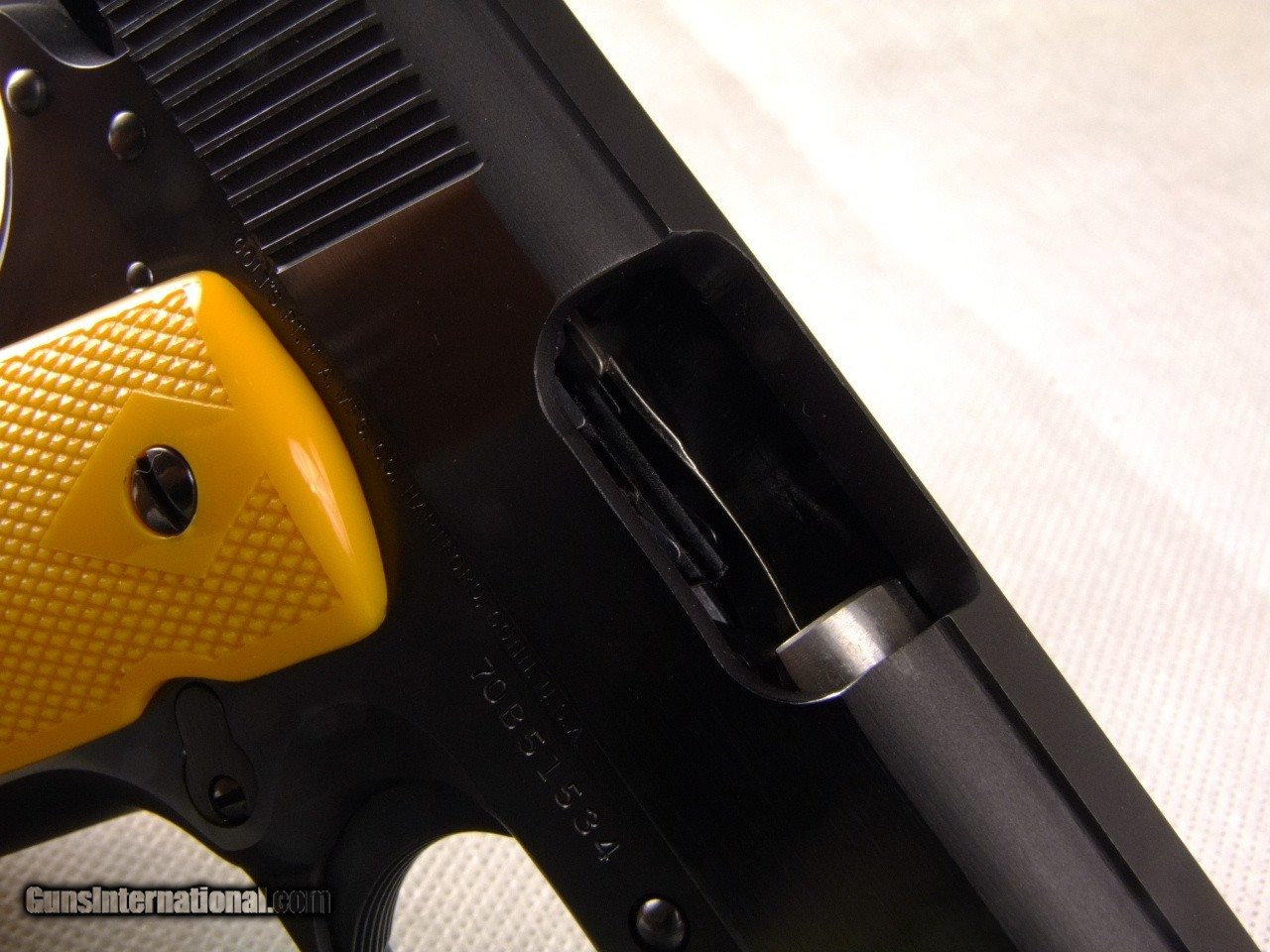 Description: SOLD-SOLD. Colt Service ACE .22 Pistol with Original Factory Box and Papers! In extraordinary "Near New" condition. This pistol has been meticulously kept. The original factory box is still in good condition, and the papers are still taped to the styrofoam inner box. Includes the original factory hang tag and plastic pouch. Only a couple of faint handling marks below the slide release caused by slide release having been taken down and reassembled after cleaning. Also a few very very fine scattered and imperceiveable handling marks on the slide. Beautifully dressed with Ajax #112 Gold Colt 1911 Medallion Grips. $1450 plus $35 Shipping and Handling. NOTE: This Service Model ACE is a rare last year production made in 1983 and assembled on a Colt Government Series 70 Mark IV 70B Serial Number Frame. The Service Ace serial numbers starting with SM were discontinued about the same time. SOLD Manufacturer: Colt Model: Service Ace Serial Number: 70B51534 Caliber Info: .22 Condition: "Near New Action: Semi-Automatic Sights: Fixed Manufacture Date: 1983 Extras: Manual, Etc. Case: Factory Box Item Location: Rio Rancho, NM |