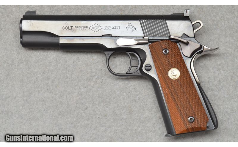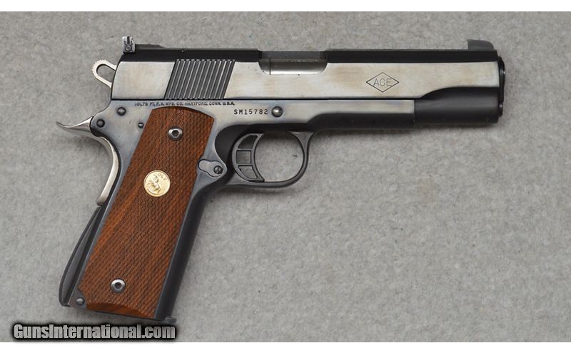 Description: Colt Service Model Ace 1911 in excellent shape. Made in 1978, this Colt features upgraded slide stop, hammer, and grip safety. Also, comes with a non-matching Remington Rand .45 ACP conversion slide and barrel. Has minor wear and handling marks on the slide. SN: SM15782 .45 Auto SOLD Metal Condition: Great Wood Condition: Excellent Bore Condition: Good Rifling Barrels: 5 Butt Pad: Colt Grips Weight: 2 lb 9 oz Item Location: Fort Worth, TX |