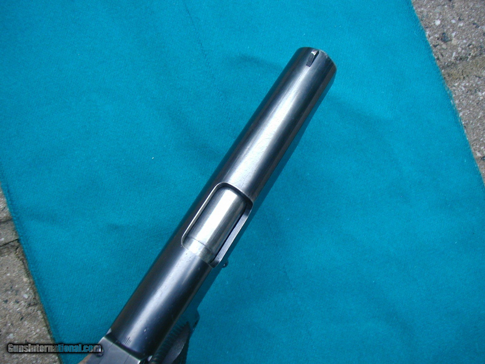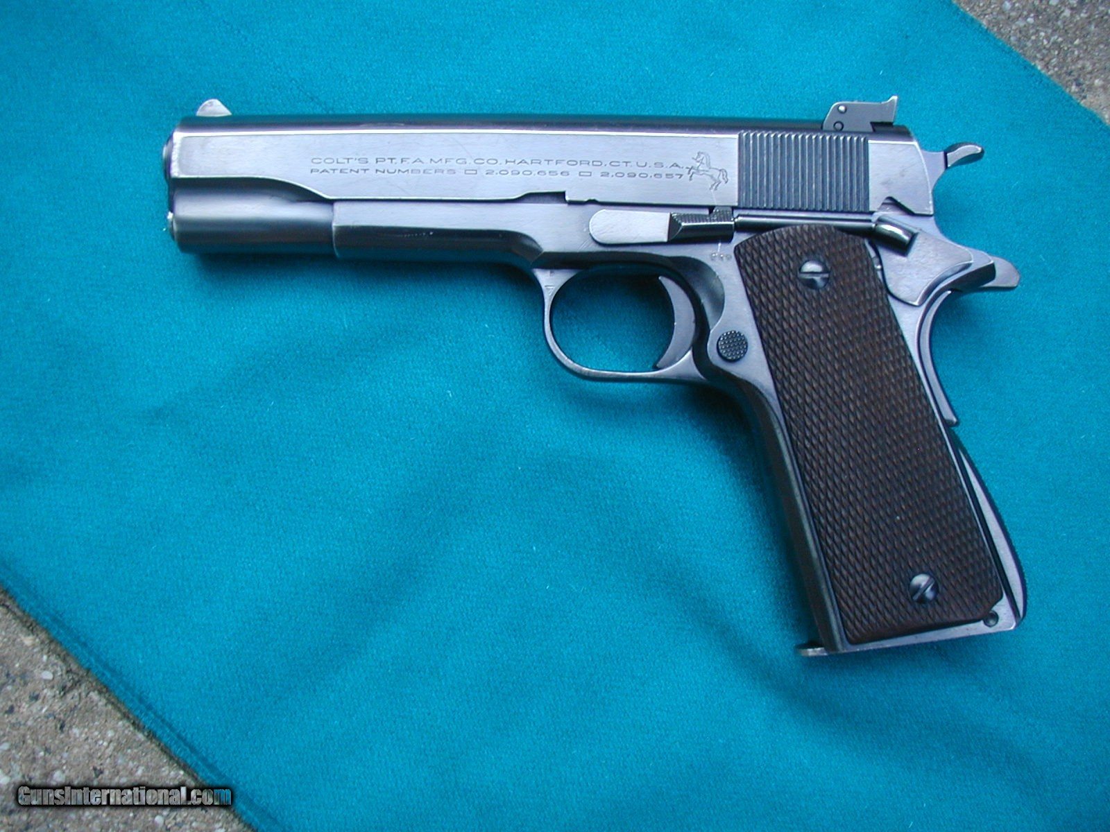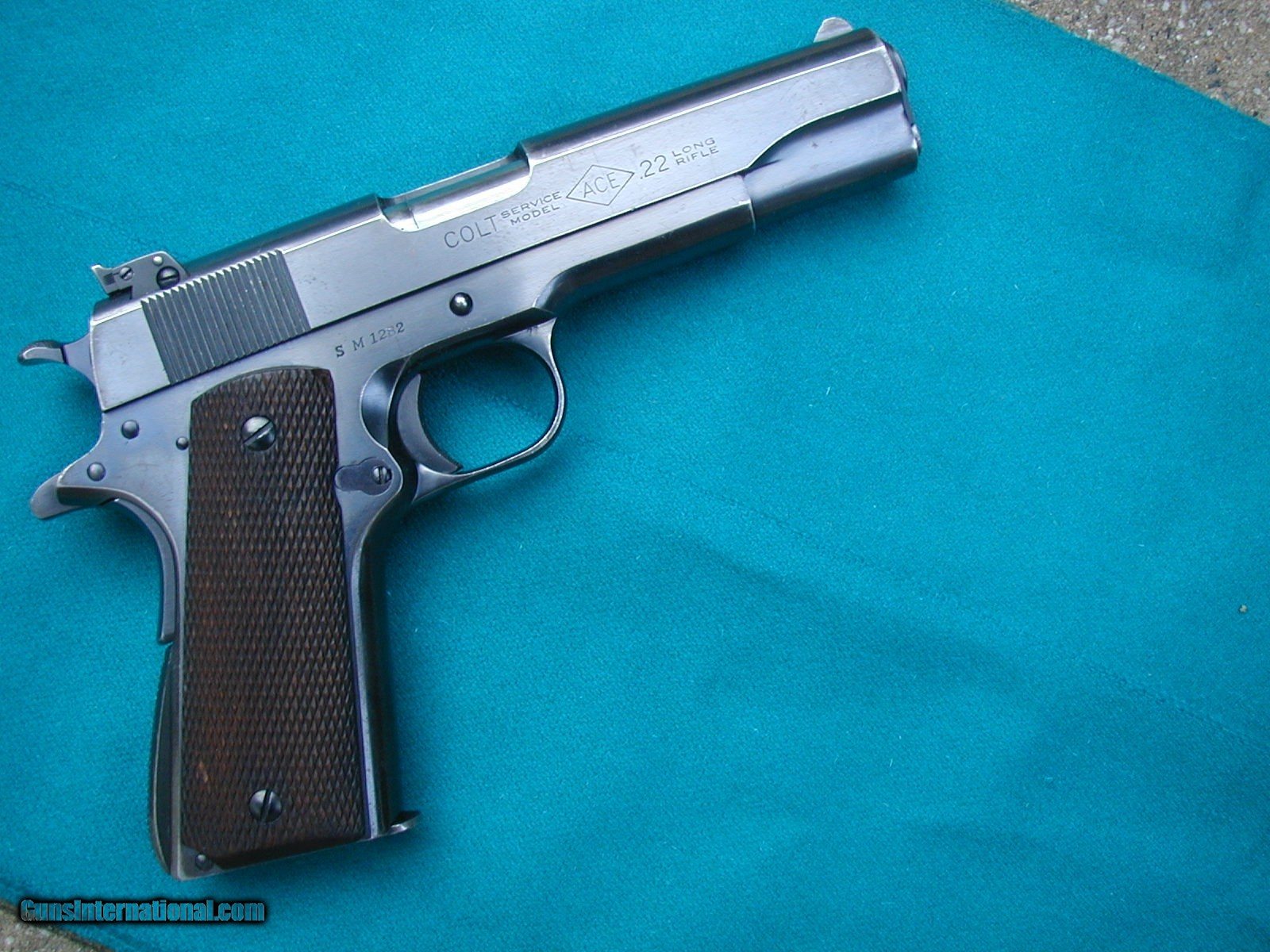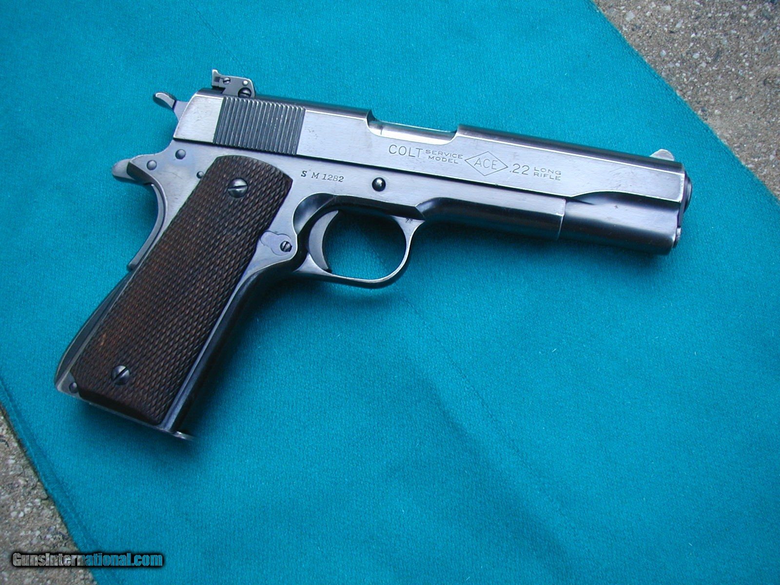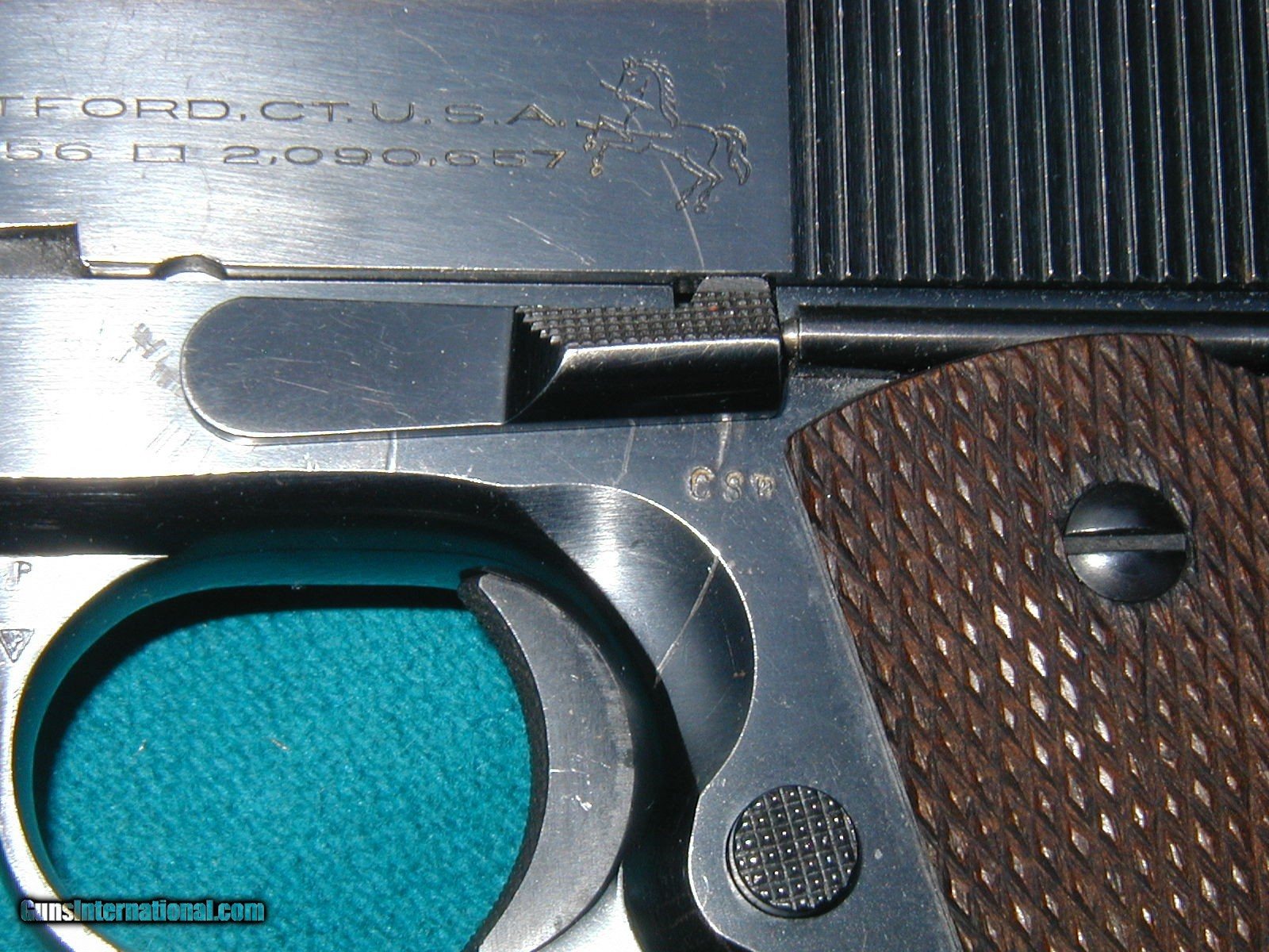 Description: THIS IS A RARE , VERY EARLY , JAN. 1940, COLT U.S. PROPERTY SERVICE ACE. THERE WERE LESS THAN 200 OF THESE 1ST ISSUE EARLY GUNS MADE. IT RETAINS 94% OF IT'S ORIGINAL BLUE, MATCHING SLIDE AND A MINT BORE. THE GRIPS ARE EXCELLENT AND IT FUNCTIONS PERFECTLY. HAS THE ORIGINAL 2 TONE MAG. THERE IS VERY LIGHT EDGE WEAR AND HANDLING WITH MOST OF THE USE CONFINED TO THE FRONT GRIP STRAP WHICH IS TONING A BIT. MARKINGS ARE ALL CLEAR. COMES WITH A COLT FACTORY LETTER. C&R OK SOLD Curio/Relic: Yes |