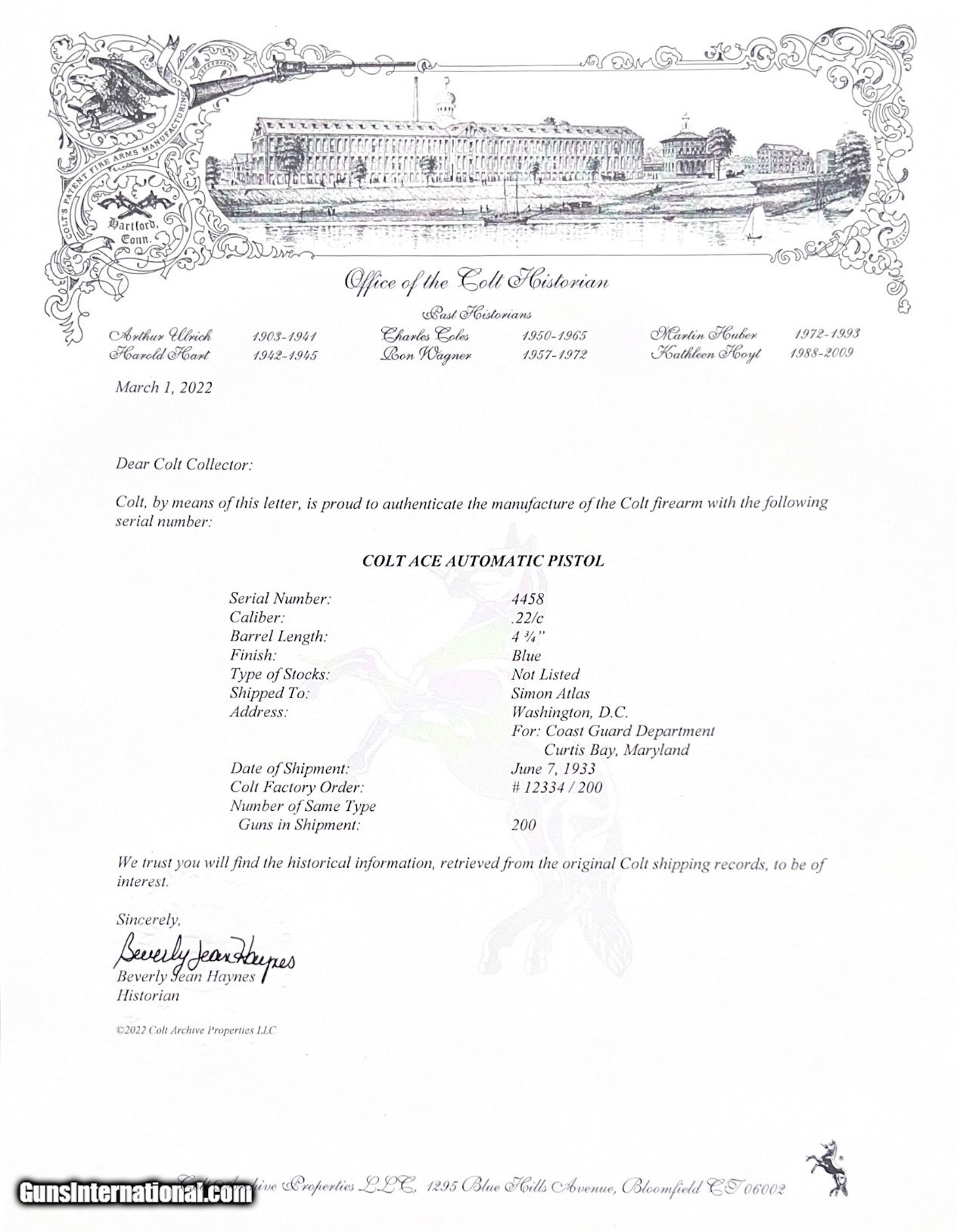 Excellent Pre-War Colt Ace Model .22 Automatic Pistol 1933 - Comes with Letter from Colt