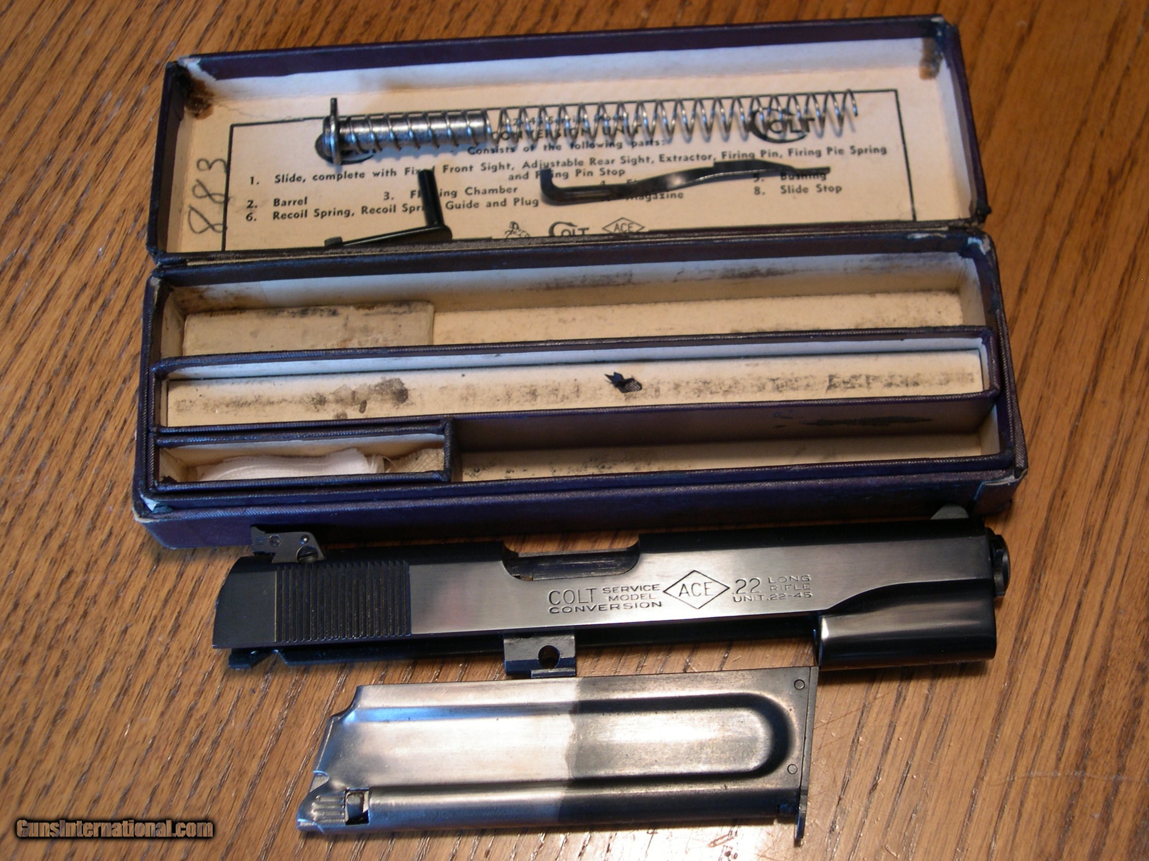 Description: This one made 1940 # U 883, in real nice original box with all, two tone mag, and all parts to convert to 22 caliber, hard to find these with nice box like this one, A great collector piece !! SOLD |