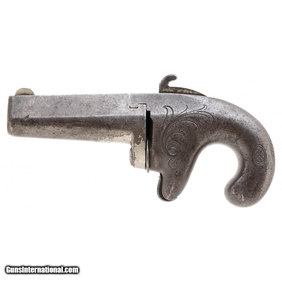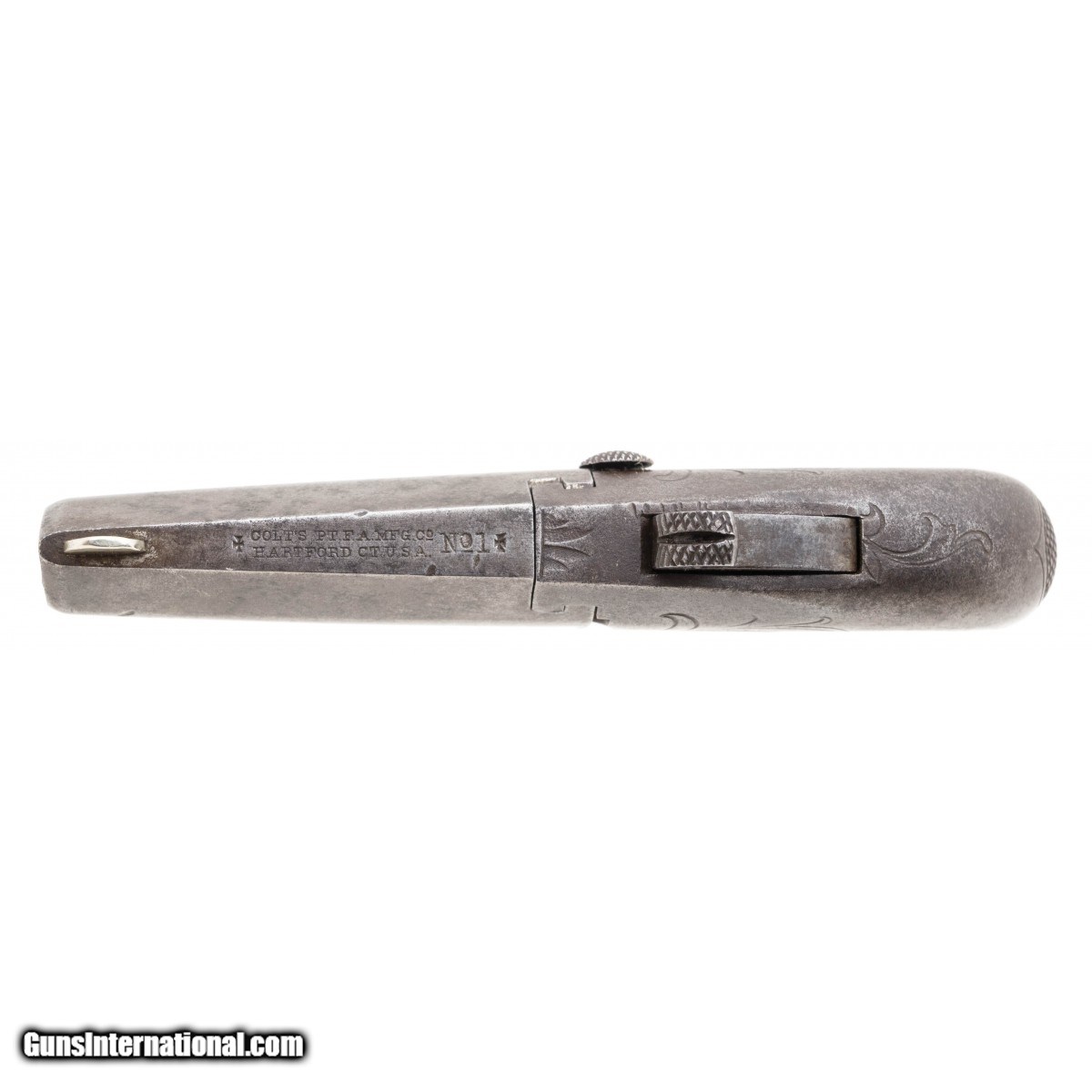 Description: " Single shot Colt Derringer with 2.5"" flat top barrel. The Colt address is clear and excellent. The bore is very good with strong rifling. The action works properly. The hammer holds on full and half cock. This derringer was originally factory nickel plated and remnants of that finish remain under the barrel. SOLD Antique: Yes |