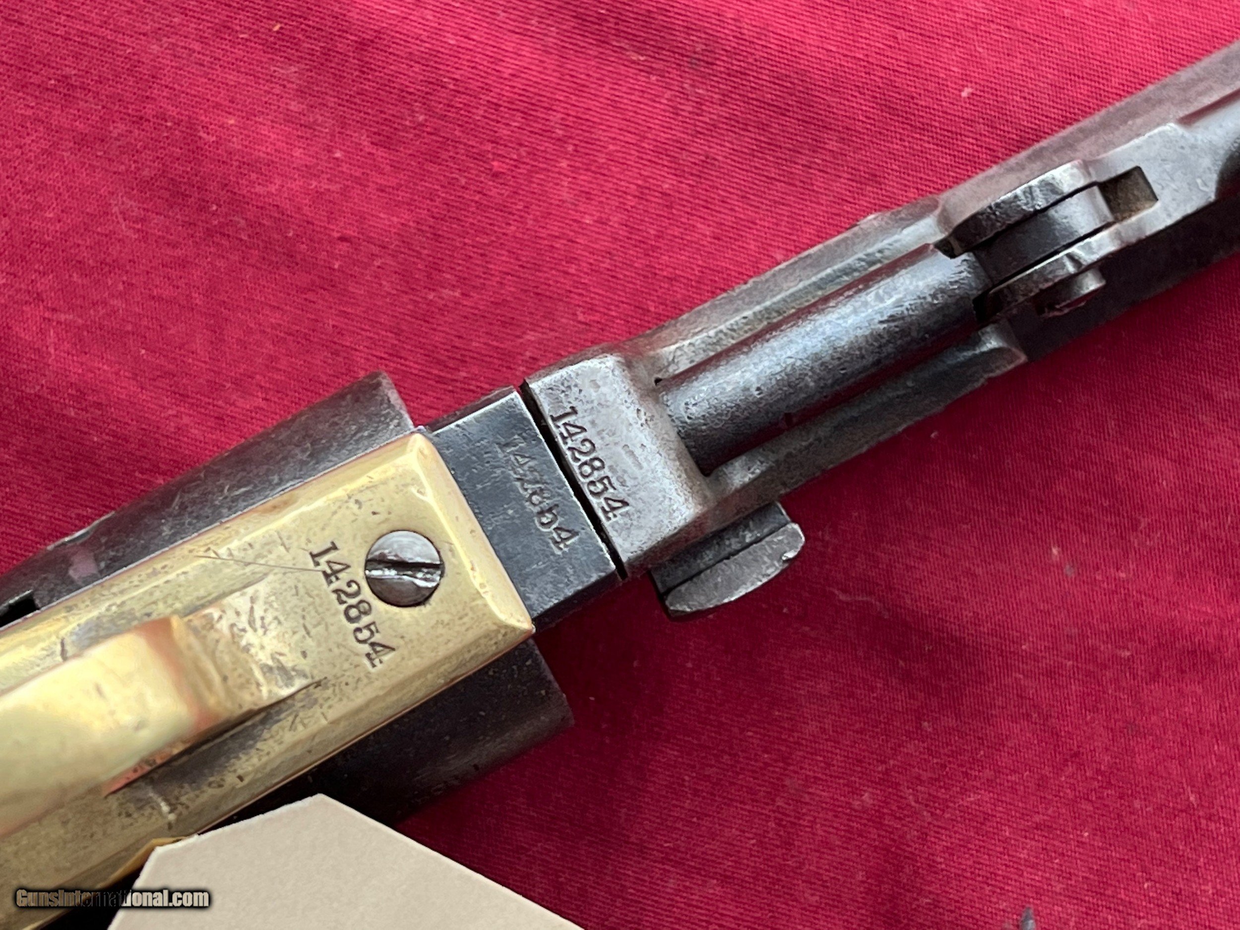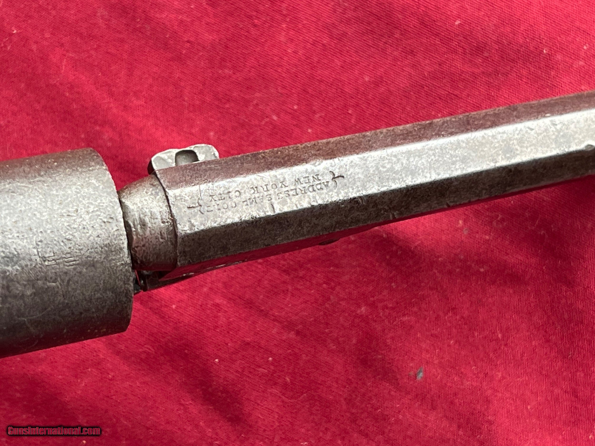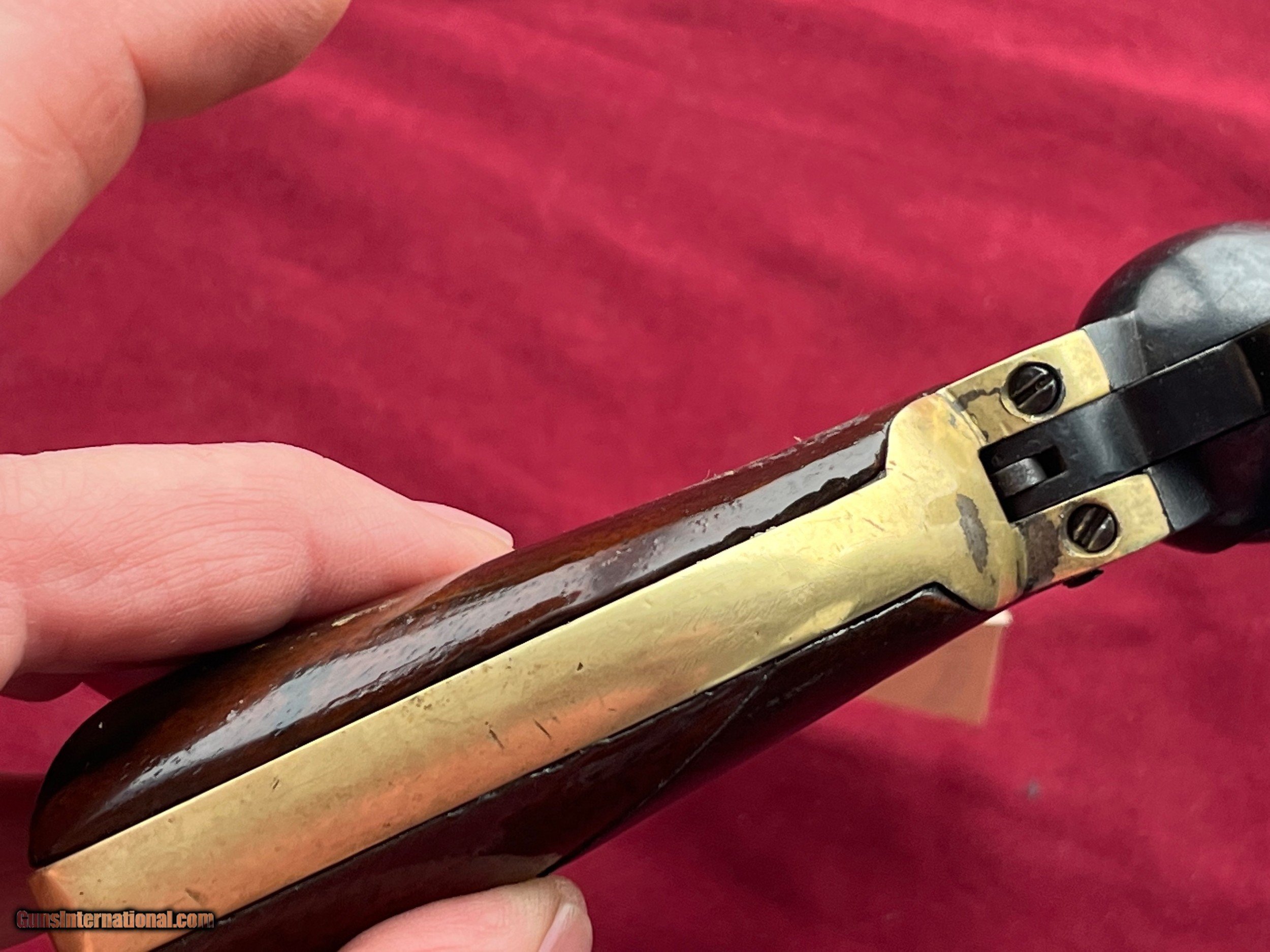 Description: COLT MODEL 1849 POCKET REVOLVER CALIBER .31 PERCUSSION SER# 142854 ALL MATCHING INCLUDING THE WEDGE. RIGHT GRIP PANEL SHOWS A REPAIR. WEDGE IS LOOSE AND BARREL TO FRAME IS NOT TIGHT. ACTION FUNCTIONS AND WORKS FINE. GUN NEEDS SOME HELP. SELLING AS IS . EASTERN BRANCH FIREARMS ADD 35.00 SHIPPING – HANDGUN USPS PRIORTY MAIL ADD 50.00 SHIPPING – LONG GUNS USPS PRIORTY MAIL OPTIONAL INSURANCE IS AVAILABLE AT 1.25 PER 100.00 Questions e-mail or call Glen at Eastern Branch Firearms 207-215-5021 TERMS – PLEASE READ BEFORE I DO NOT HAVE A LAYAWAY OPTION ( WE ACCEPT CREDIT CARDS ) -- I GET ALOT OF REQUEST FOR TRADES, I WOULD PERFER NOT TO DO TRADES ON MY INTERNET LISTINGS PAYMENT OPTIONS- We accept money orders, cashier’s checks , bank checks. sorry no personal checks. We accept all major credit cards please add 3% to the ’s cash discount price.(Shipping within the state of Florida - Florida Residents must pay sales tax) .Handguns and long guns do need to be shipped separate. PLEASE do not send payment via FED EX . USPS & UPS are fine. Thank you. We include a signed copy of our FFL with each firearm shipped. SAFTY NOTICE- Buyer is solely responsible for determining that a used gun is safe to shoot. The firearms offered have not been test fired but have been given a visual inspection only for purposes. It is a requirement that every used firearm is inspected by a qualified gunsmith before firing. By , the buyer agrees to hold seller harmless against damages, injury, or death caused by defective merchandise. U.S. sales only, no exports…this includes antiques. I will ship to third party for exporting SOLD Antique: Yes |