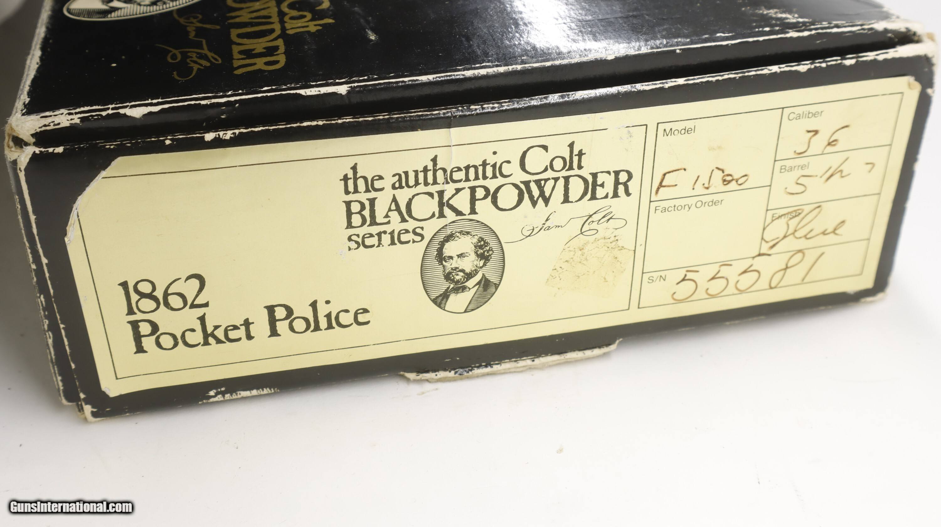 Description: Colt 1862 Pocket Police, 36 Caliber, 5.5" barrel, blue metal, case color receiver. Gun looks to still be new old stock and unfired, but has been played with. Comes in the factory box numbered to the gun. Black powder so no FFL is required. $30 shipping. SOLD Rifle Caliber: .36 Manufacturer: Colt Model: 1862 Pocket Police Barrel Length: 5.5 Condition: New Old Stock |