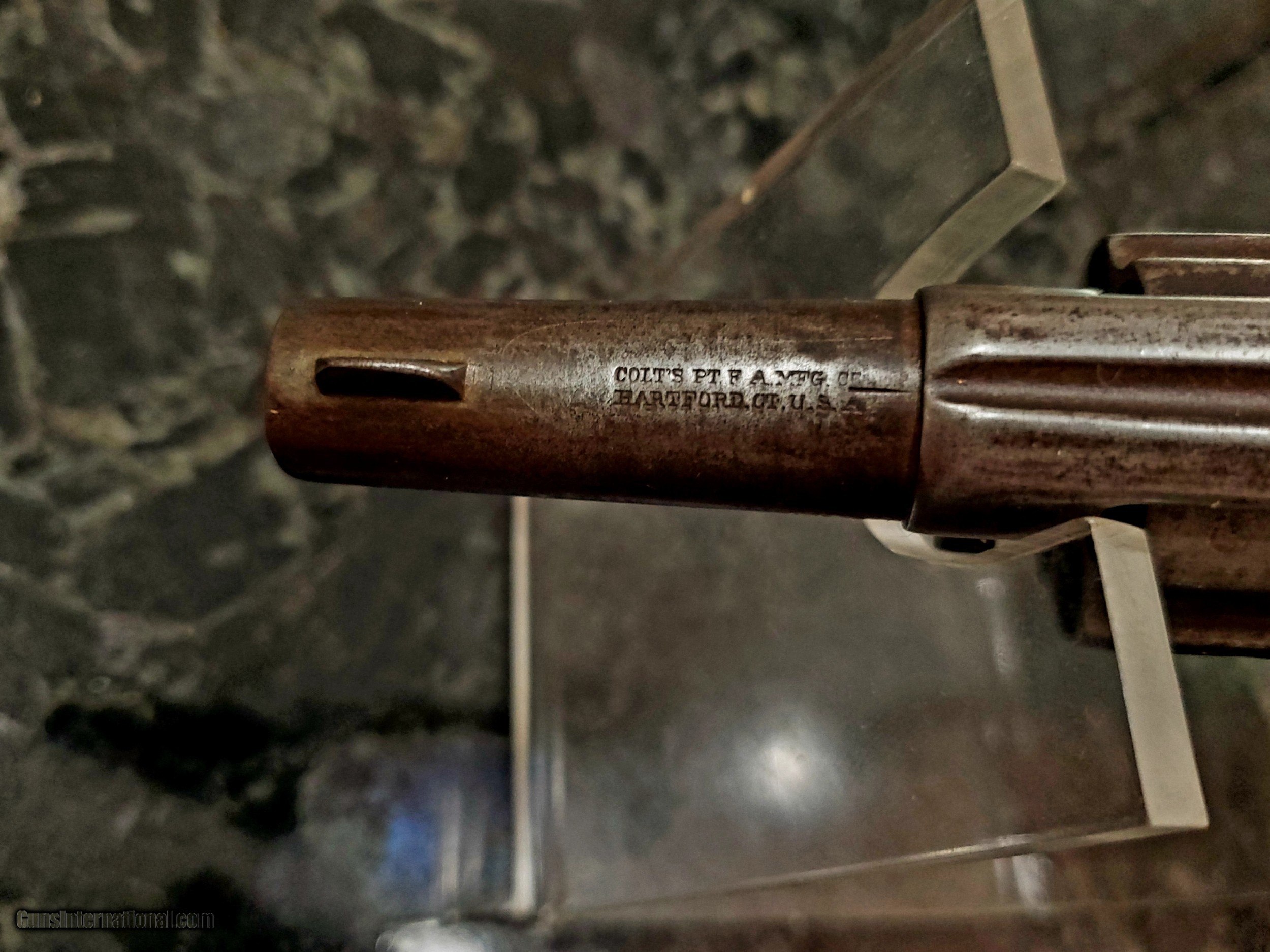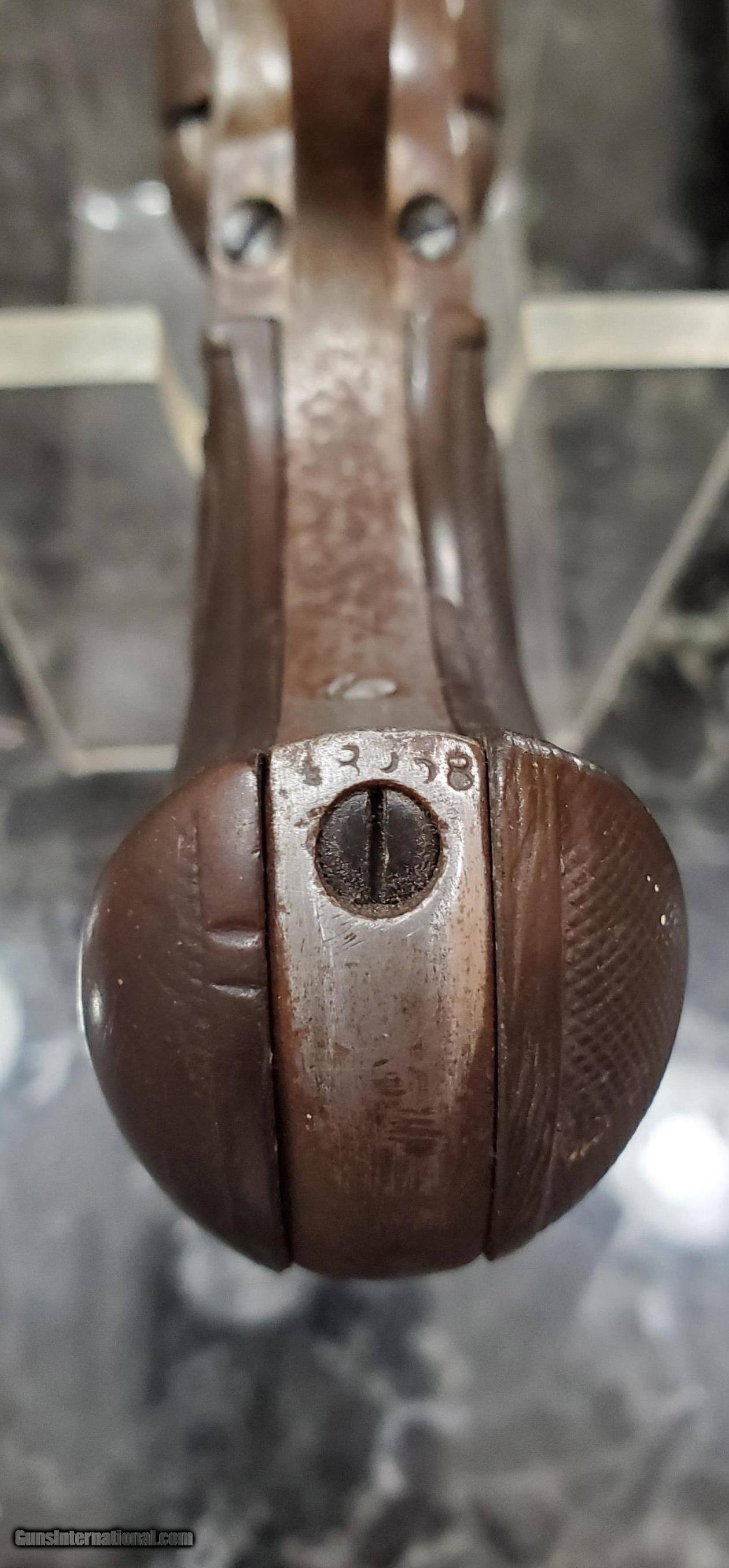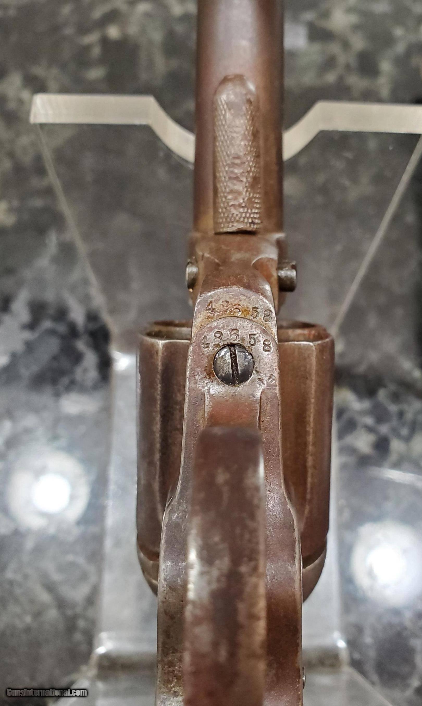Description: !!SALE PENDING !! Colt Lightning Sheriff Model, 38 long colt serial number 48658, made in 1883. I purchased this colt when I was on vacation in Arizona. I would call this a project gun needs action work, but all original—a real western cowboy gun. TERMS: Antique so it can ship directly to you assuming your local laws allow it. Payment by bank check, money order, or personal check.. Sold as a collectible only; a competent gunsmith should check it over before firing it. Always interested in any Civil War relics, Old West, and other firearms so please contact me if you have something for trade or sale. Thanks for looking and please check my other listings. 216 906 3997 with questions or concerns. SOLD Antique: Yes Handgun Caliber: .38 Long Colt Manufacturer: Colt Model: lightning Barrel Length: 2 1/2 Bore Condition: rough |