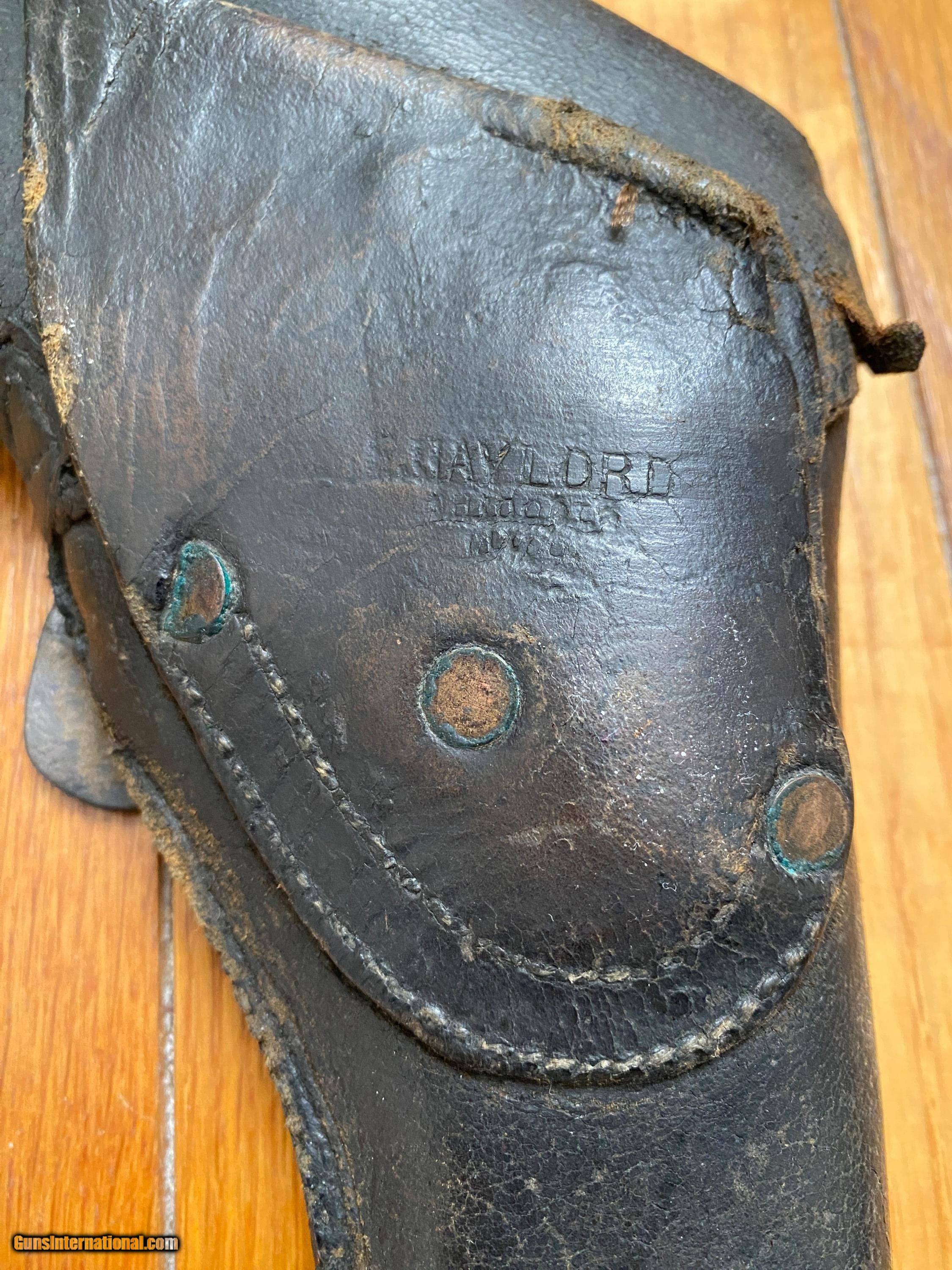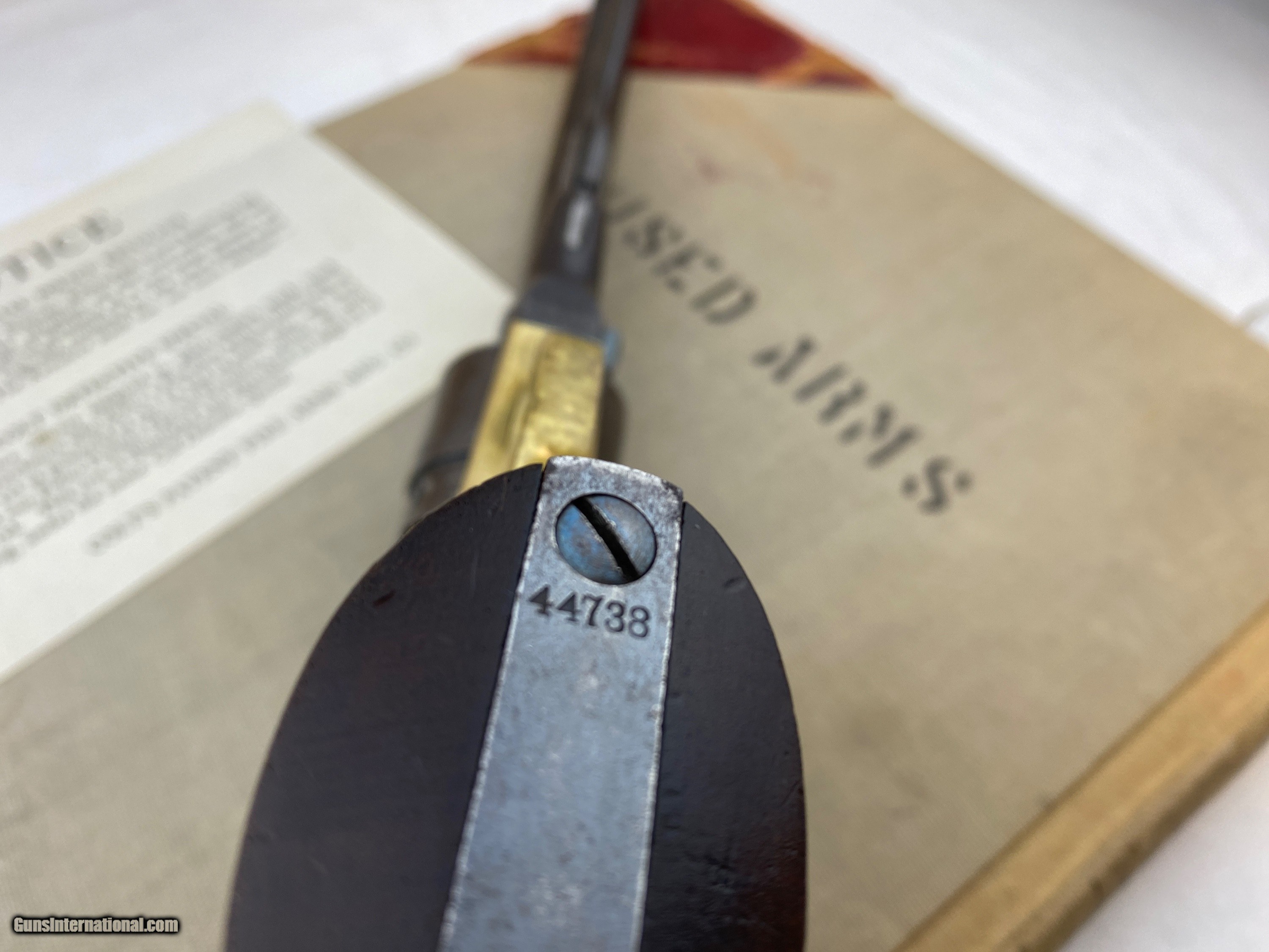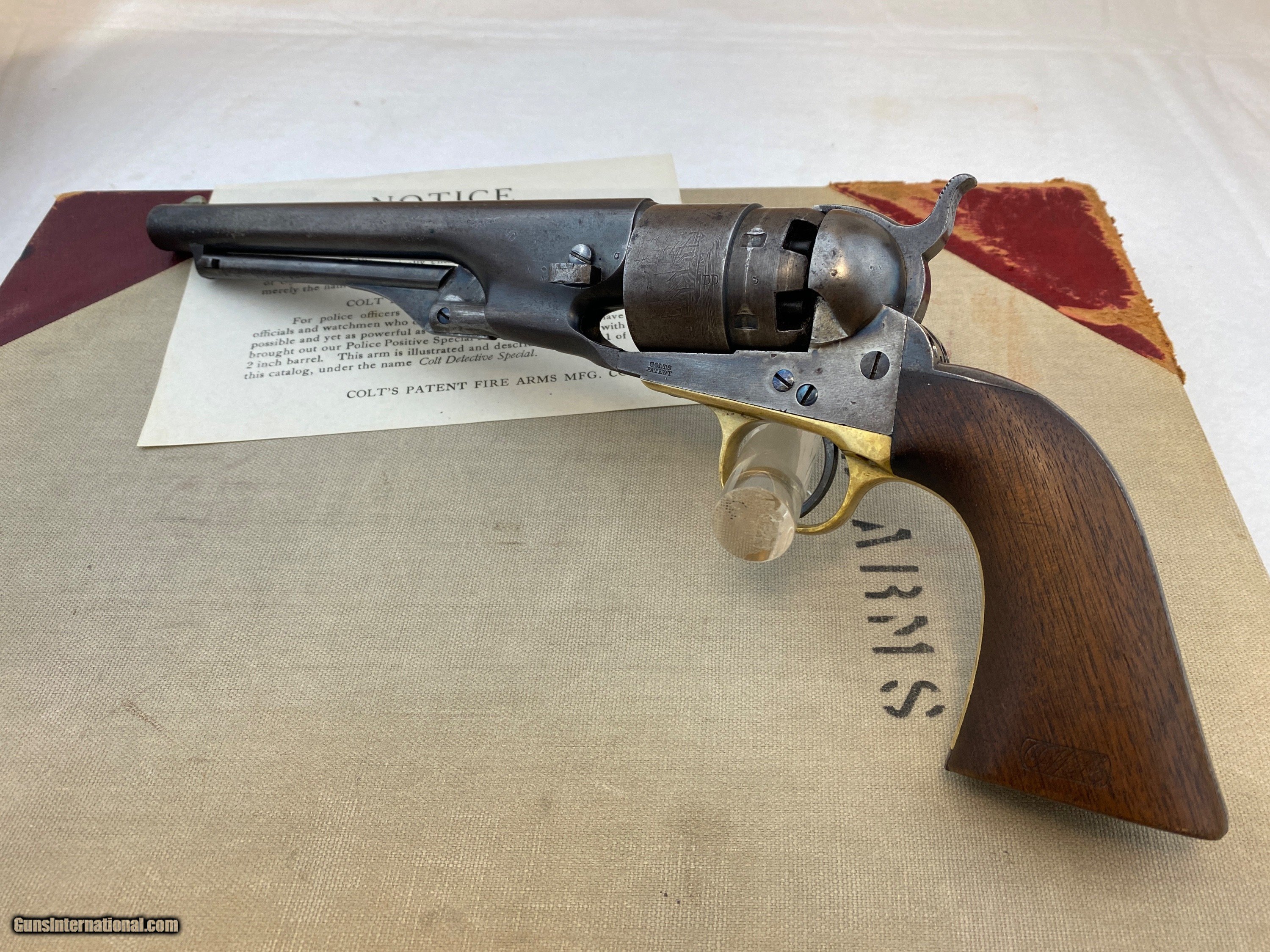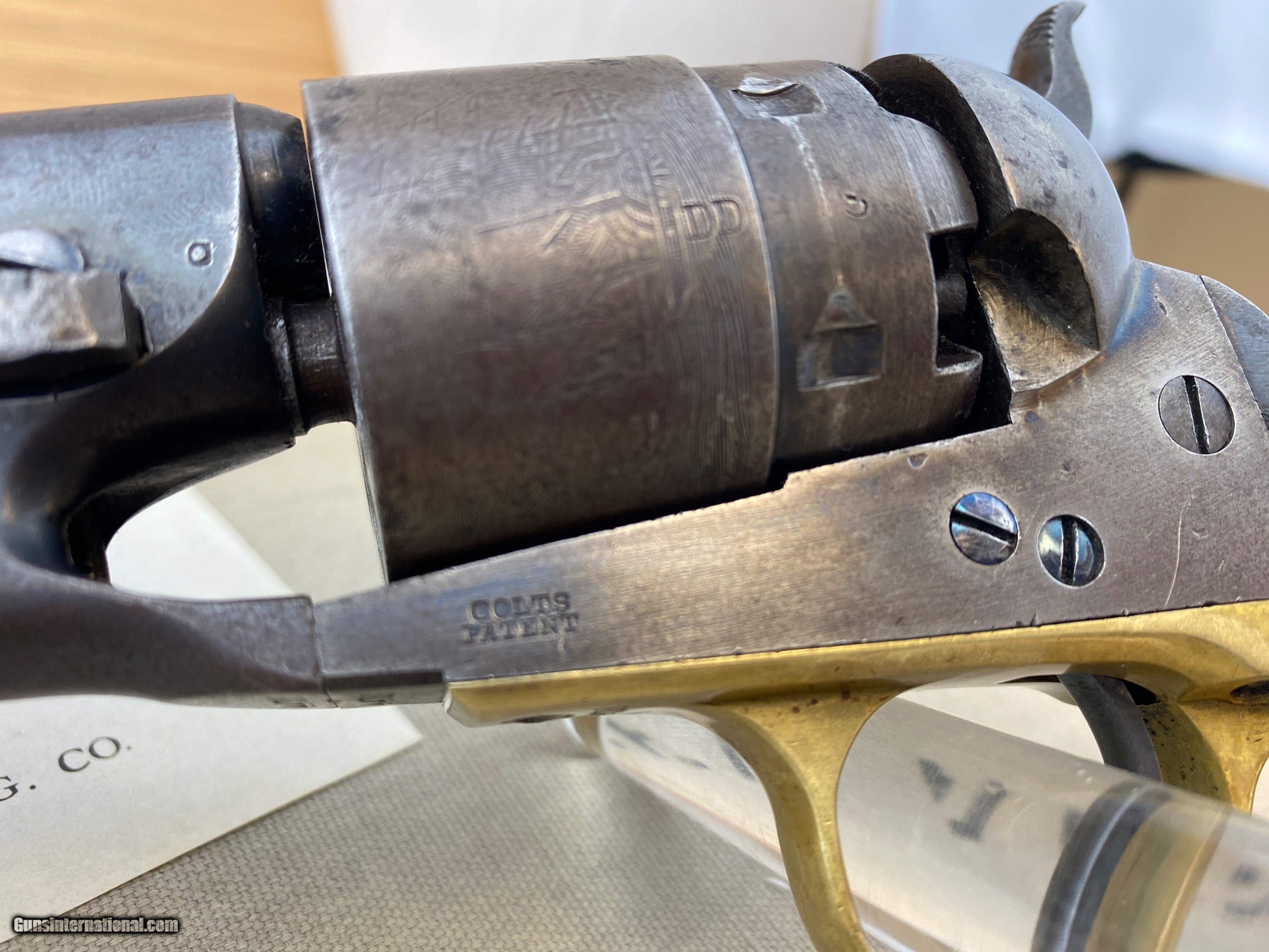 Description: This colt 1860 Army revolver is in excellent condition for its age. Timing and lock up are solid. Serial numbers and roll marks are still very sharp and cartouches on the grips are still very visible. An archive letter will be included with the pistol that confirms it was sent to the Washington Arsenal in Washington DC in June 1862. The original leather holster is also included. This is a truly remarkable piece of Civil War history. Feel free to contact me with any questions you may have. Thank you for looking! SOLD Antique: Yes Handgun Caliber: .44 Manufacturer: Colt Model: 1860 Army Serial Number: 44738 Condition: Very good Wood Condition: Very good Extras: Original leather holster |