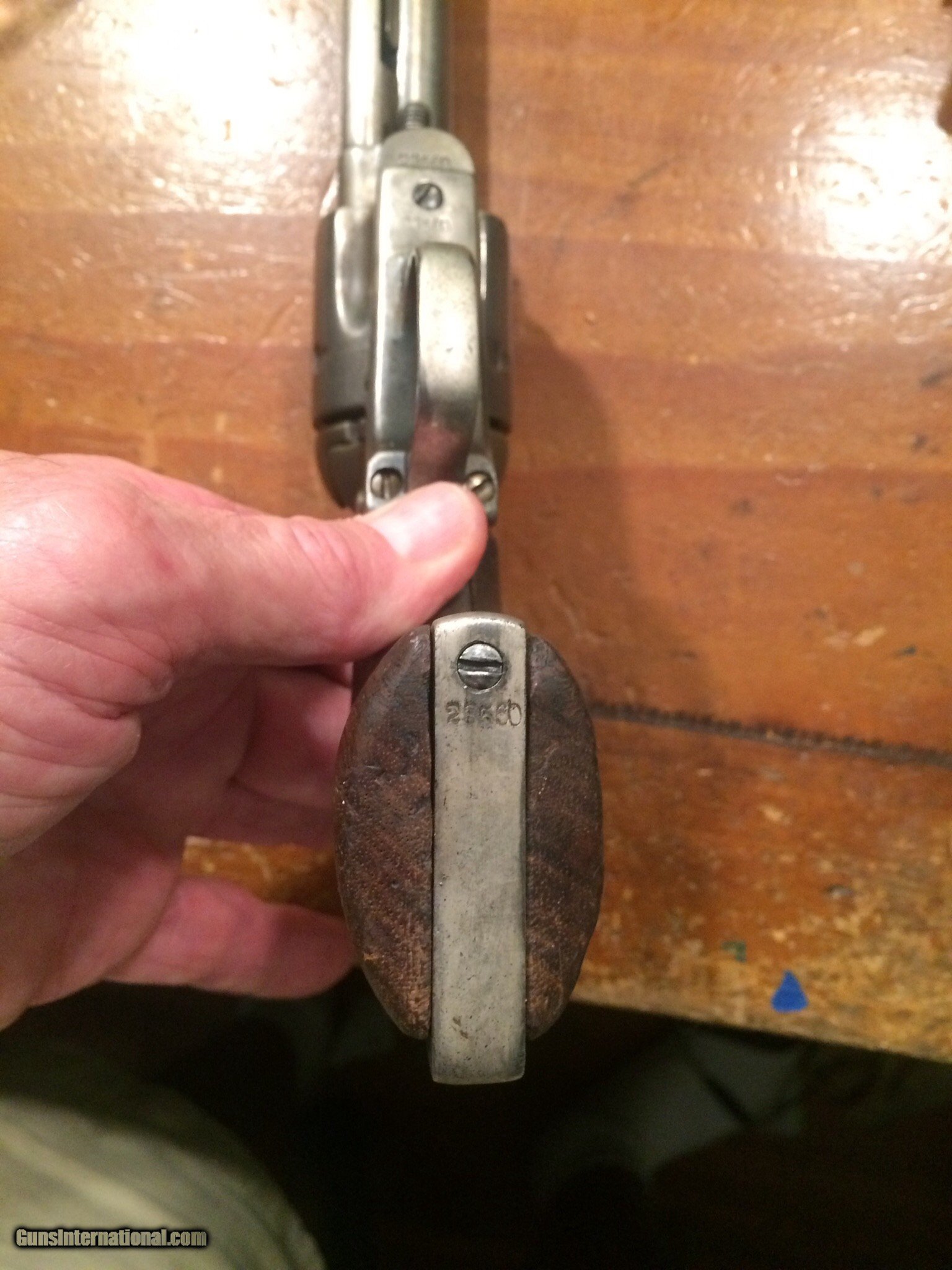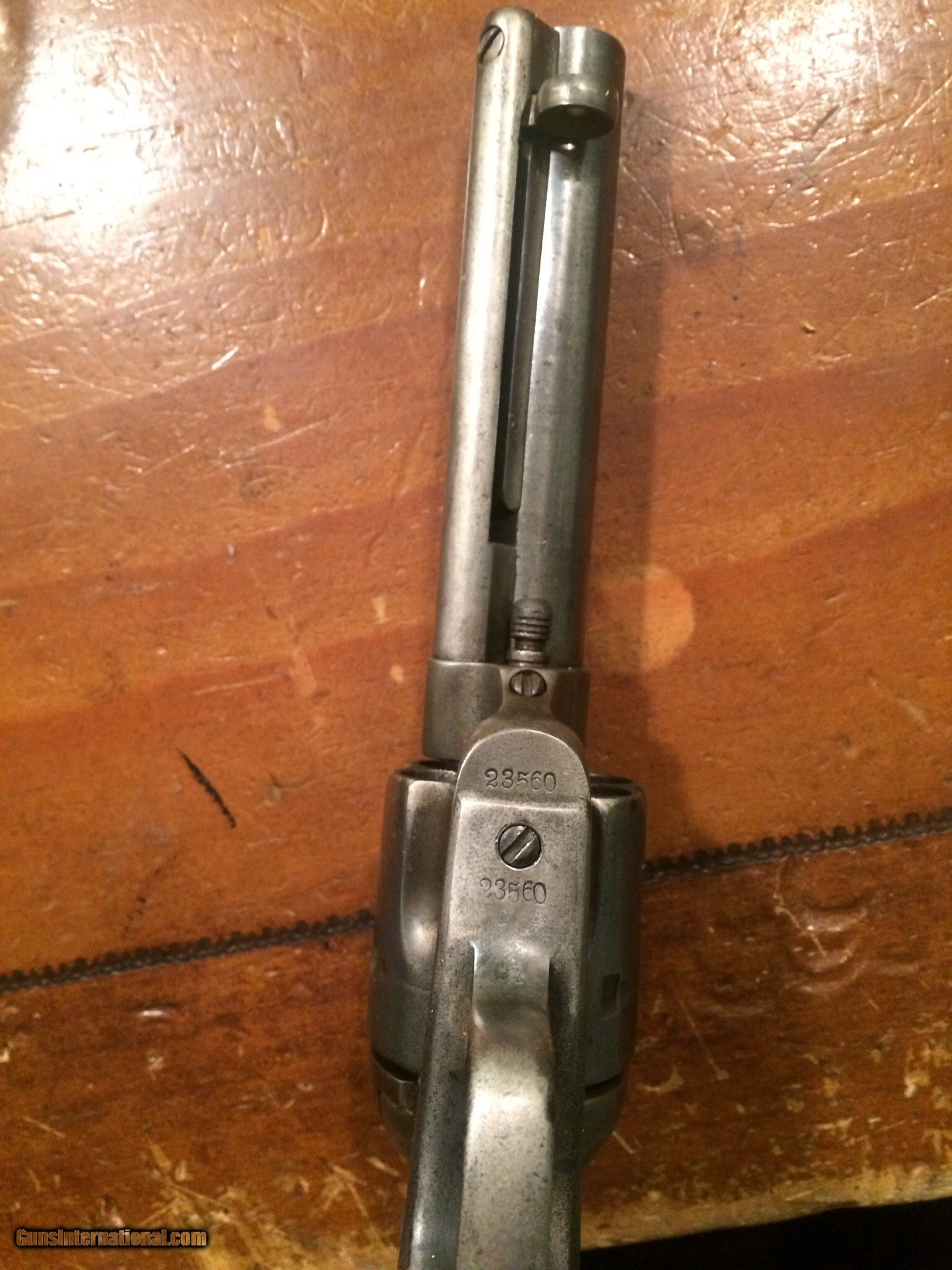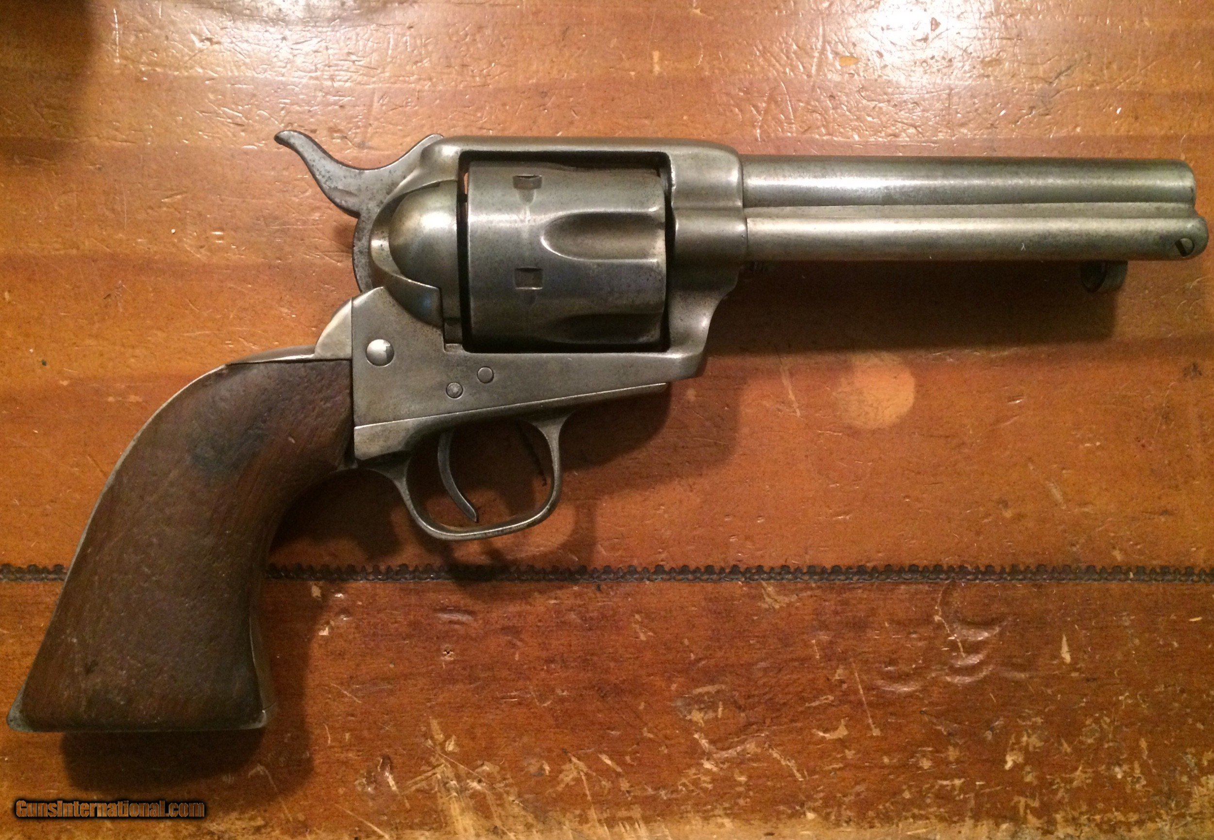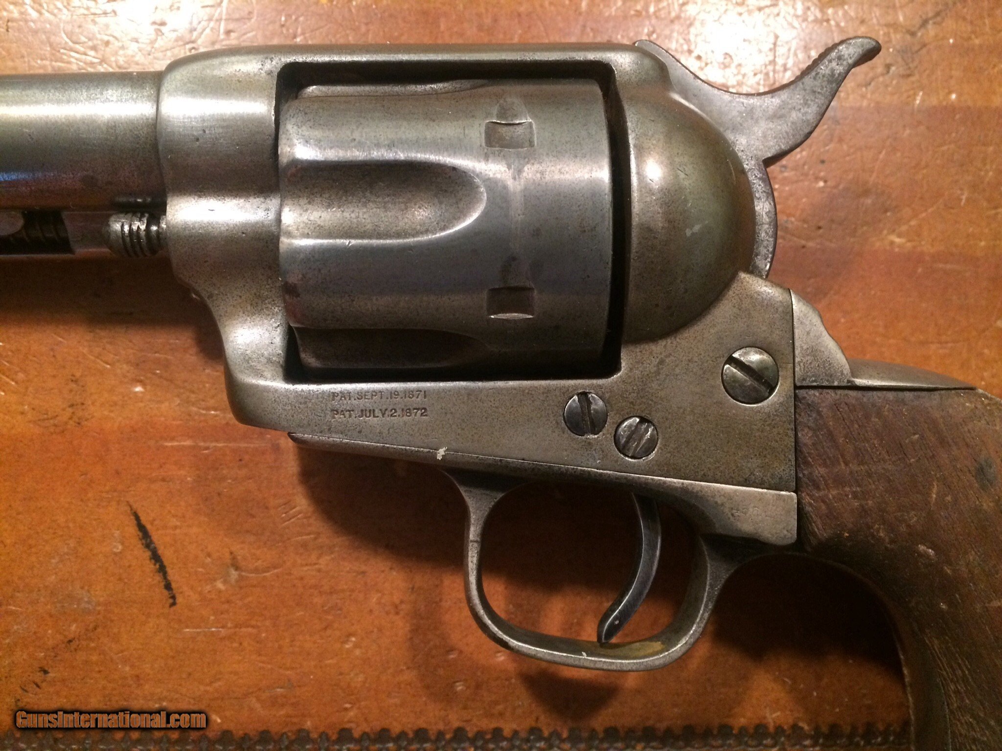 Description: Colt SAA single action .45 caliber shipped in February of 1876. This is an honest old cowboy gun. A very early gun that will letter to Hartley and Graham. The barrel has been cowboy shortened and he never bothered to put a front site on it. Action is good with all four clicks. Serial numbers match on barrel, cylinder, frame, trigger guard and back strap. See photos for description and call or email with questions or to discuss. Antique gun ships direct for $38. Matt 214-957-7574 SOLD Antique: Yes Manufacturer: Colt Model: Single action |