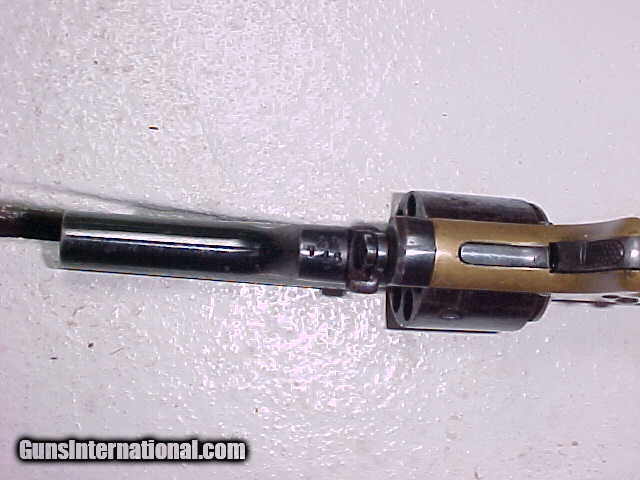 Description: An excellent Colt open top .22 caliber revolver. Gun retains about 99% original blue and the frame has a fine even brass patina. Grips are walnut and have about 98% original varnish. SN 22xxx. Bore is excellent and mechanics are fine. Great little revolver. SOLD Antique: Yes |