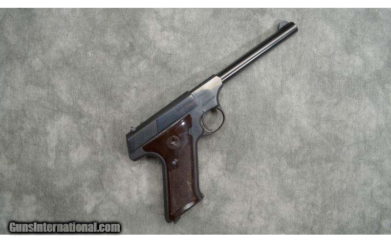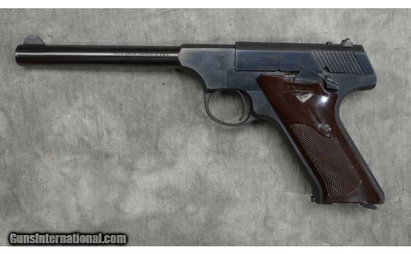 Description: This Challenger features blade and notch sights, everyday brown plastic grips, and good maintenance. SOLD Caliber Info: .22 LR. Chambers: 10 + 1 capacity semi-automatic. Metal Condition: Very good to excellent. Bluing a little bit faded at the muzzle. Wood Condition: Very good. Used but well-maintained. Bore Condition: Bright and shiny. Barrels: 6 inch. Stock: Checkered dark plastic. Weight: 2 lbs. Sights: Blade and notch open sights. Extras: Box. Item Location: Rogers,, MN |