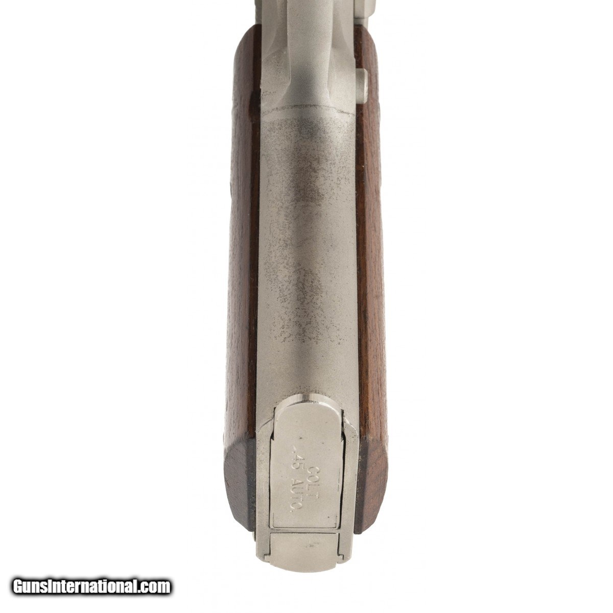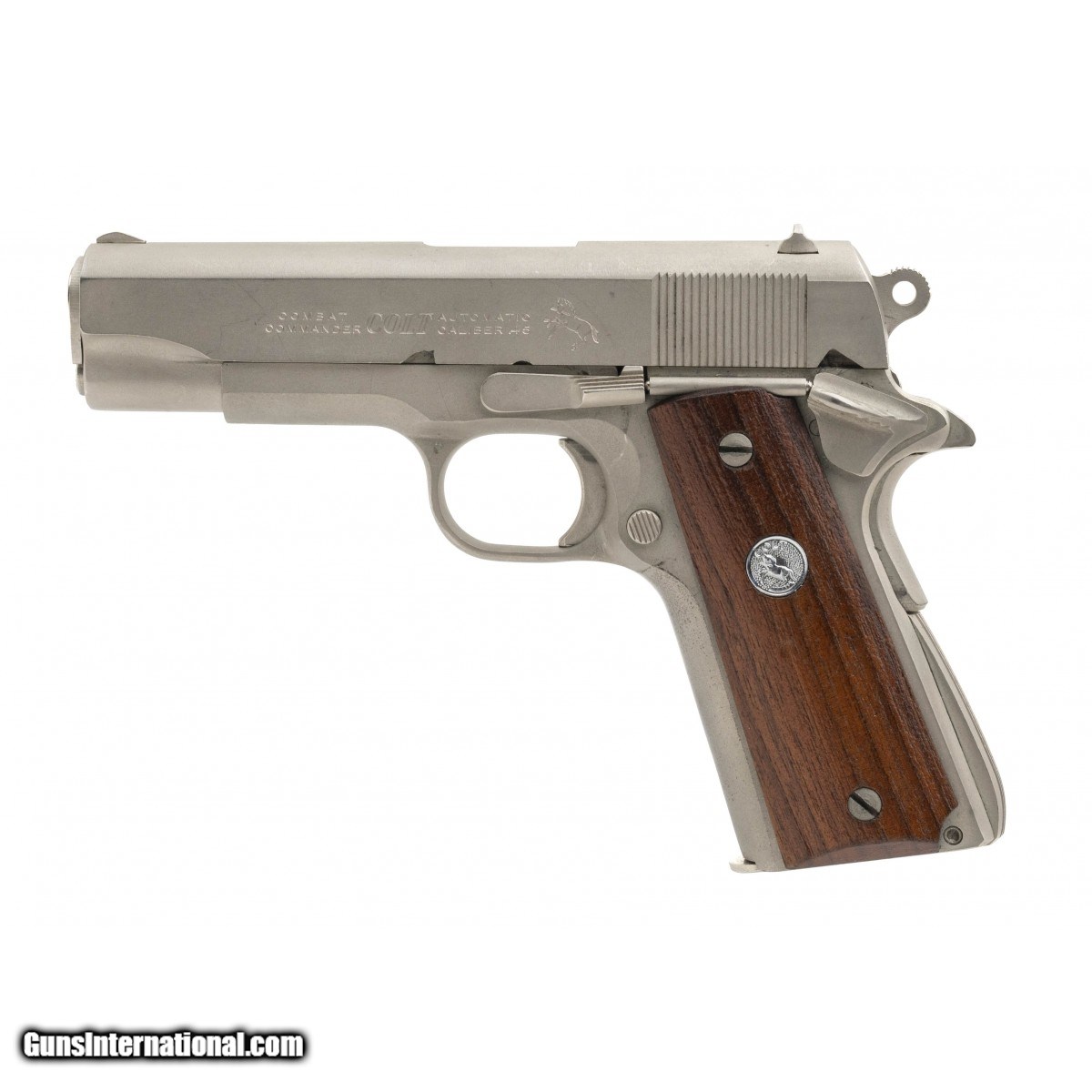 Description: " SN: 70SC29622. Made in 1974, .45 ACP caliber with a 4.25"" barrel. Original all steel Commander with satin nickel finish and wood grips. Has light wear, overall excellent condition with original box. Consignment. SOLD |