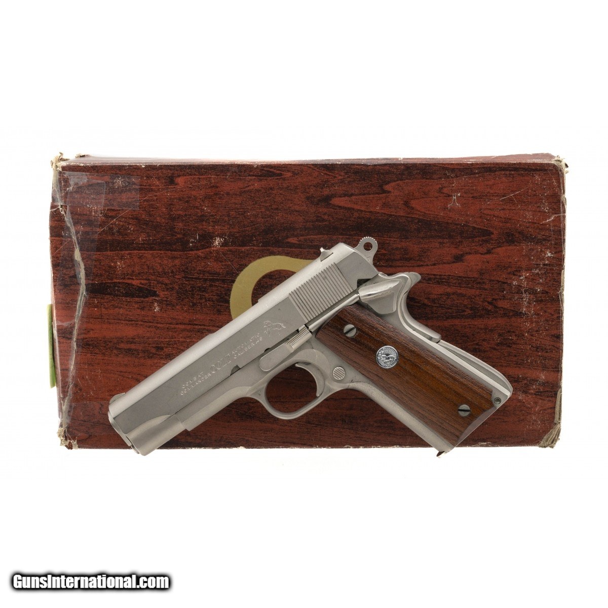 SN: 70SC29622. Made in 1974, .45 ACP caliber with a 4.25"" barrel. Original all steel Commander with satin nickel finish and wood grips. Has light wear, overall excellent condition with original box. Consignment.