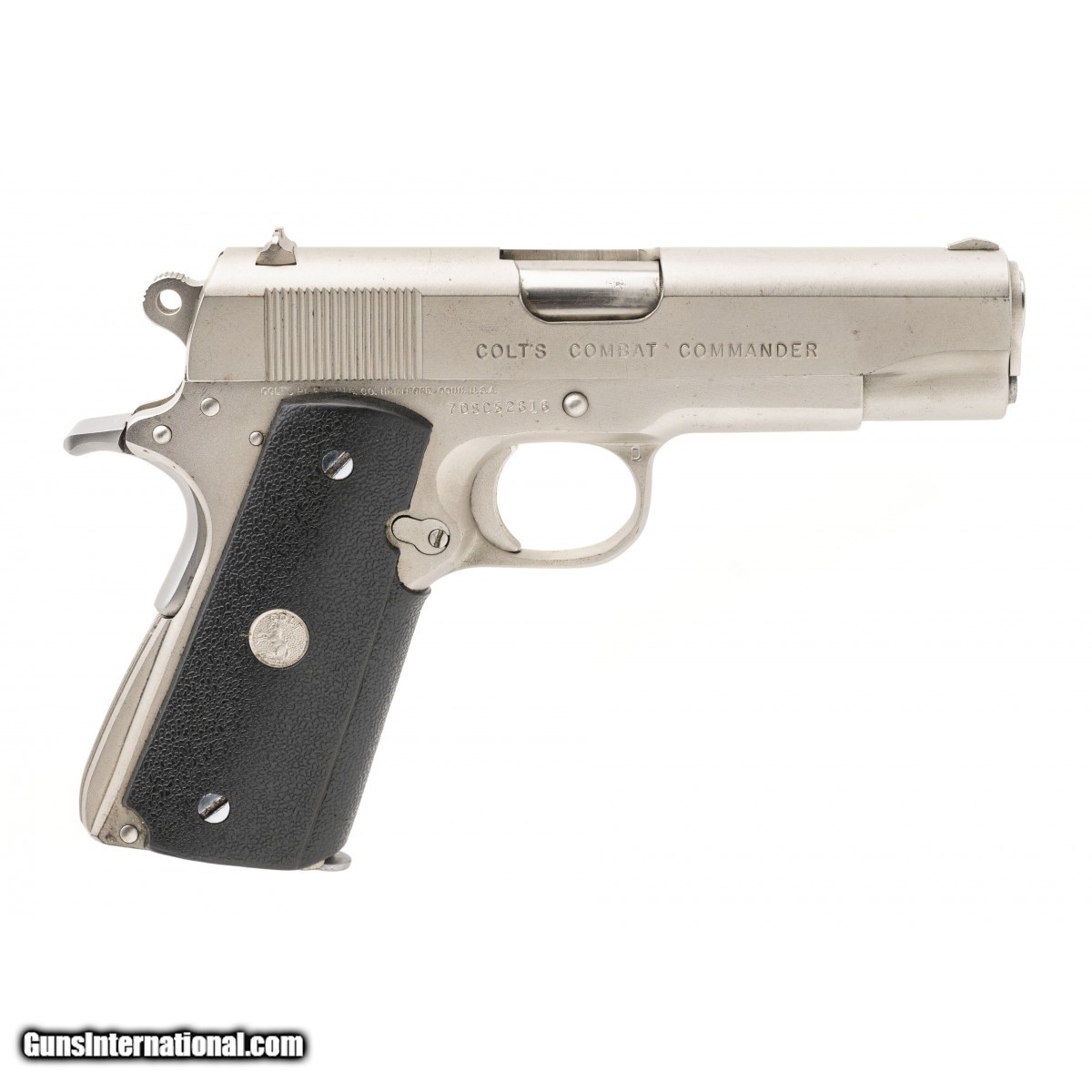 SN: 70SC52616. Made in 1977. .45 with a 4.25"" barrel. Bore is very good with strong rifling. Series '70 Combat Commander with an electroless nickel finish. Finish is in good condition. Grips are in near excellent condition. Overall good condition. Consignment.