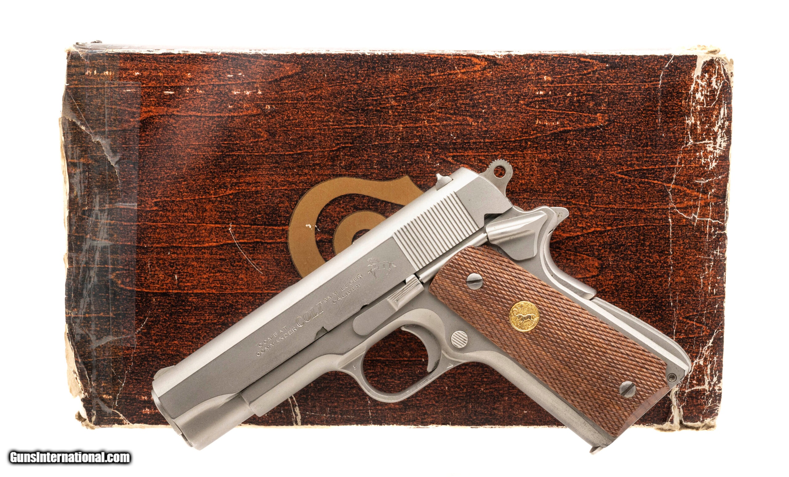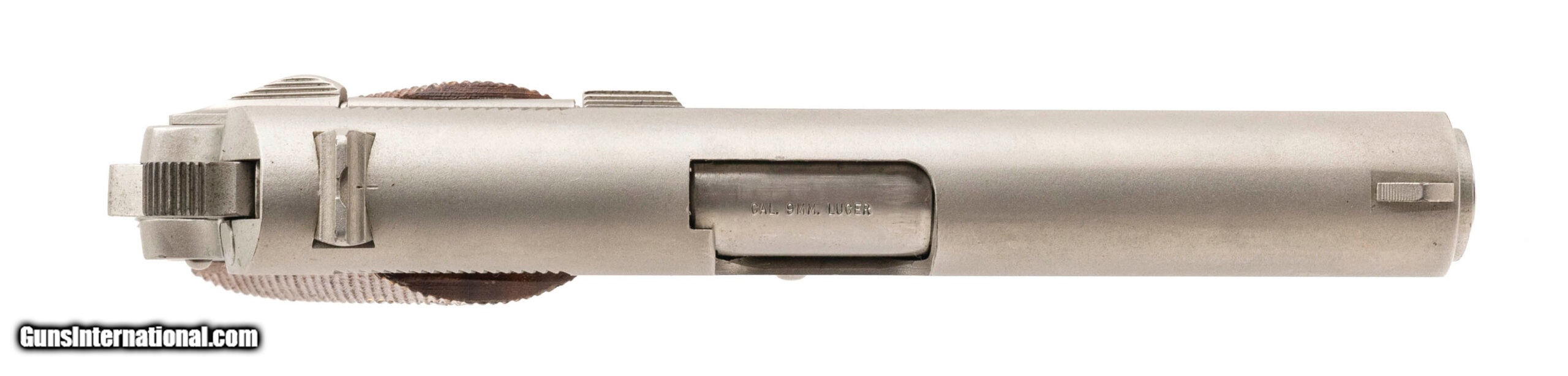 Description: "SN: 70SC14544. Made in 1972, 9mm with a 4.25"" barrel. All steel Commander with satin nickel finish. Very good condition with light wear. Comes with tattered box. A scarce model in 9mm. SOLD |