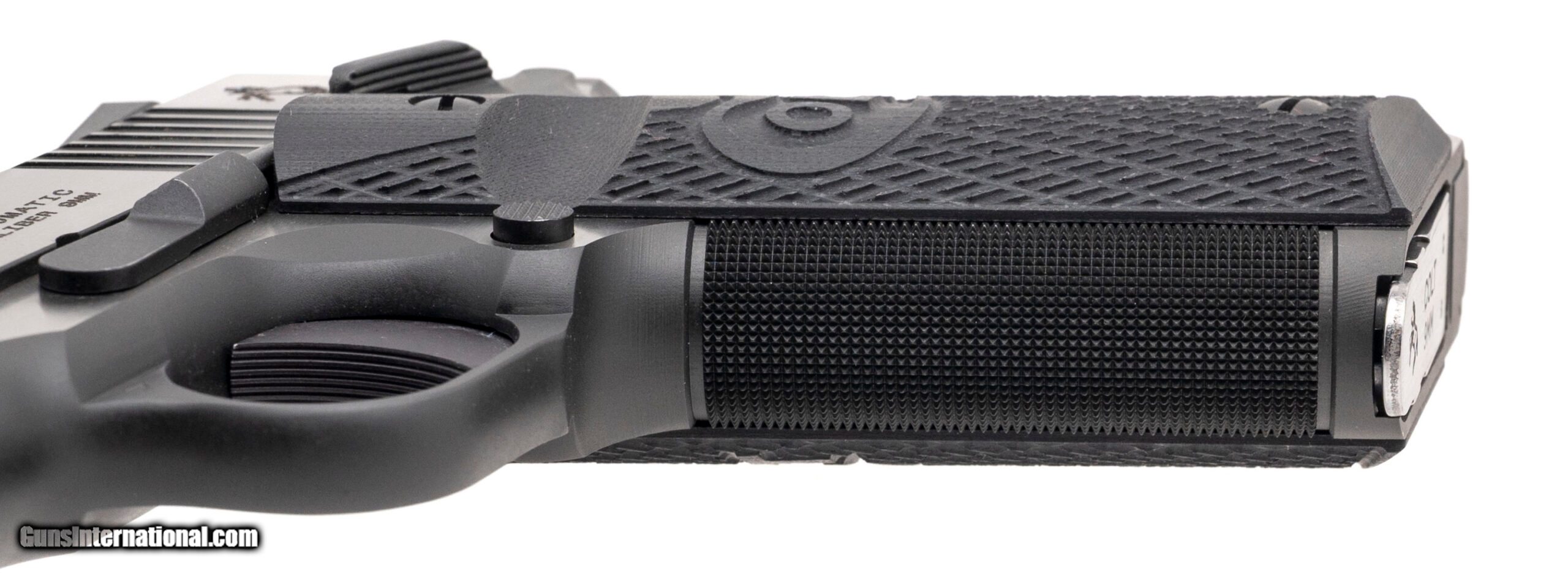 Description: "SN: CD003214. Modern production, 9mm with a 4.25"" barrel. Bore is excellent. Commander size pistol with Novak night sights, ambidextrous manual thumb-safety, two-tone stainless finish, and G10 grips. Metal shows minor handling marks. Includes original case. Overall condition is near excellent. Price: $1,300.00 Contact Seller |