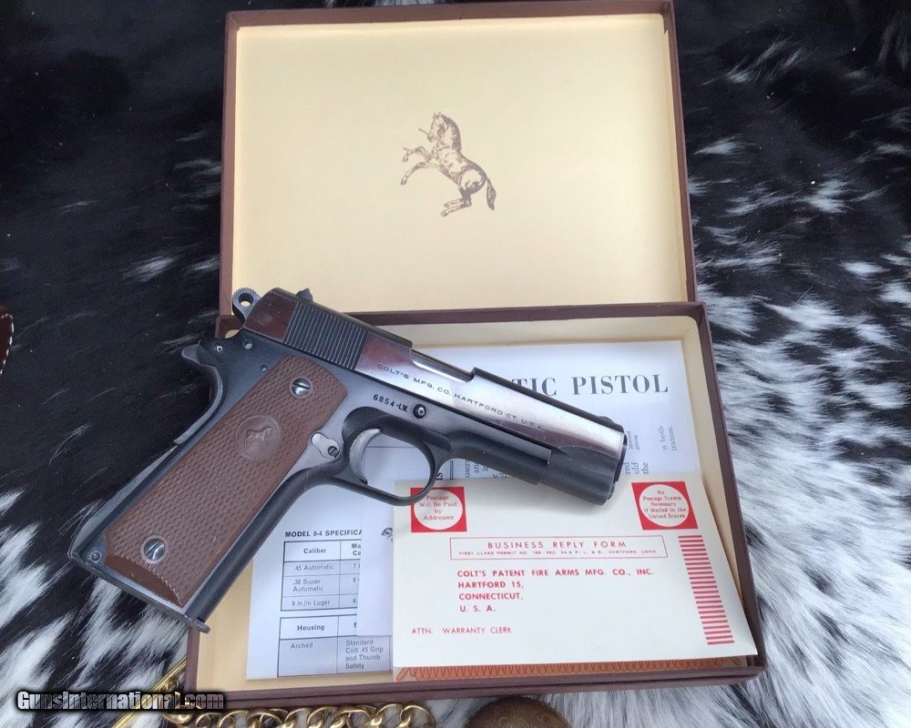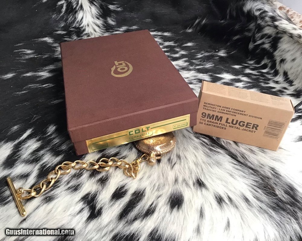 Description: Gorgeous 1951 Colt Lightweight Commander, .9mm, Excellent to Fine condition - Early Production - pistol - 4.25" rnd barrel - brown plastic checkered grips with Rampant Colt trade mark logo; both grip panels remain in Excellent condition with very little if any visible wear - blue/black - slide retains about 97% blue finish turning deep plum color, loss to muzzle, slide sharp edges, and stray striations to top of slide just behind front sight - frame retains about 97%+ with stray striations to front strap, while back strap thinning finish and loss to sharp edges - Markings: crisp & legible - fixed sights semi-auto - single action - Colt alloy frame and mainspring housing - full size grips - 8-rnd single stack magazine - steel slide - Excellent mirror-like bore, appears fired very little - mechanics appear to be strong and in good working order. Comes in numbered to gun Colt box with owners papers, reproduction. Add 3% if paying with credit card. Free shipping to US veterans and retired LEO. thankful for our freedoms.. paid for by the Blood ,Sweat and Tears of our brave men and women in uniform. Ten Below Firearms is a Veteran owned and operated business. We specialize in out of production models of high quality firearms. We love to ship! We ship to all states where legal, just give us a call! Handguns normally ship for $35 and Long guns for $45 up to $75 for extra length long guns. That's 2-3 day USPS Priority shipping, Delivery conformation and with tracking number. Optional Postal insurance is additional $1.70 per $100 and highly recommended. We are OPEN BY APPOINTMENT ONLY FOR IN PERSON VISITS Layaway:If needed we offer a 60 day layaway program. Terms, 1/3 of purchase price down, 1/3 due in 30 days, and the final third to include card fees and shipping due at 60 days. Funds are non transferable and non refundable .Layaway is not available on negotiated prices. SOLD Curio/Relic: Yes Handgun Caliber: 9x19mm Parabellum (9mm Luger, 9x19mm NATO) Manufacturer: Colt Model: Lightweight Commander Serial Number: 6854-LW Barrel Length: 4.25 inch Condition: Excellent Metal Condition: Excellent Bore Condition: Excellent Action: Semi-auto SA Finish: Blued Sights: Fixed Manufacture Date: 1951 Case: Box Item Location: Mn |