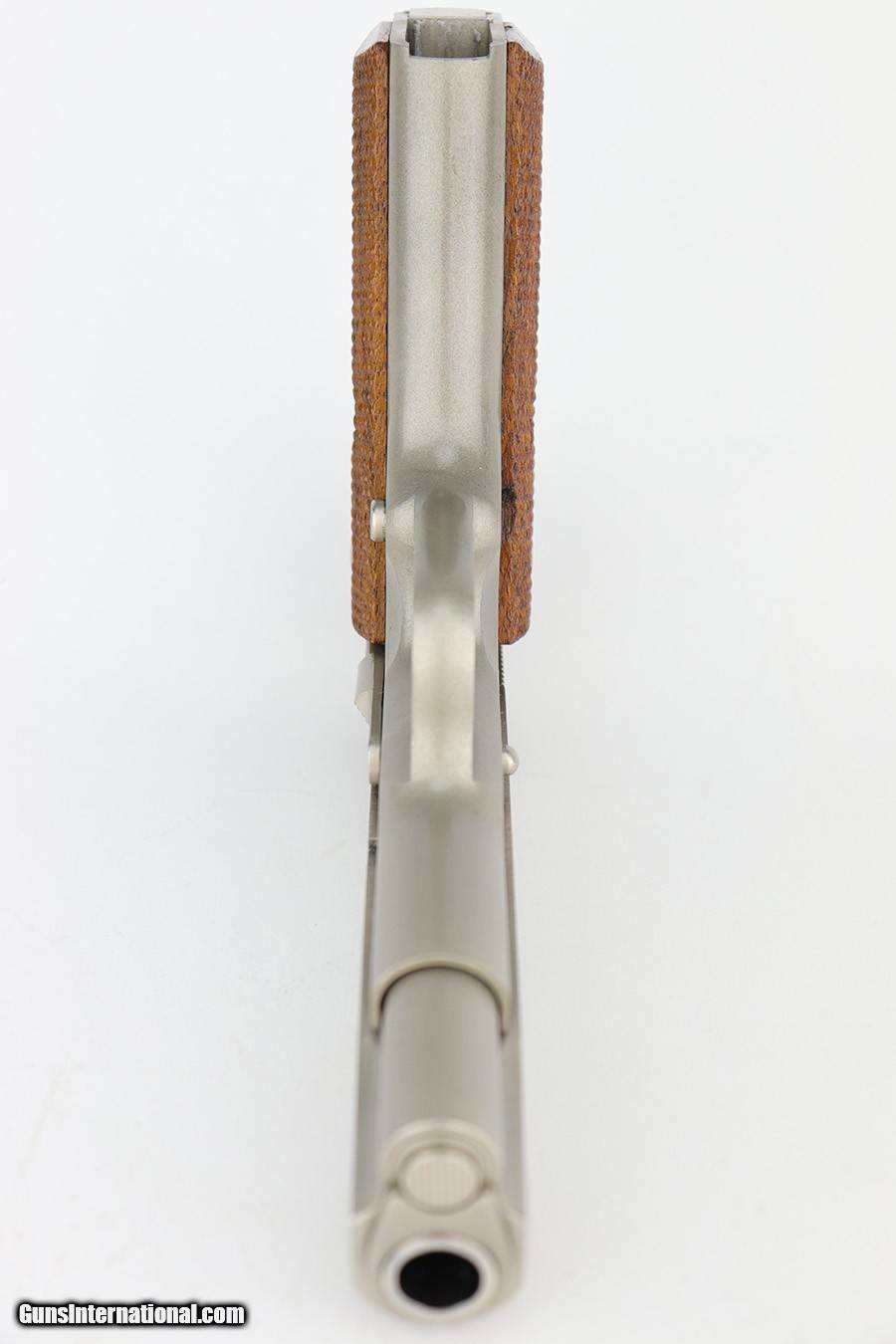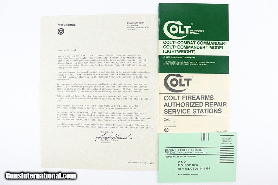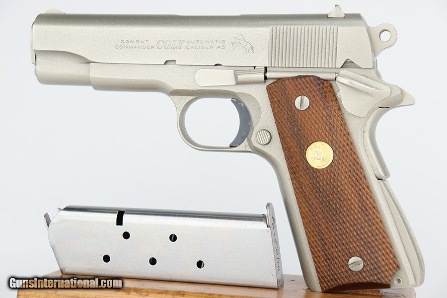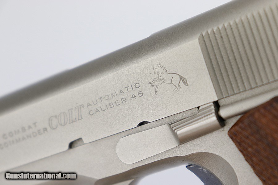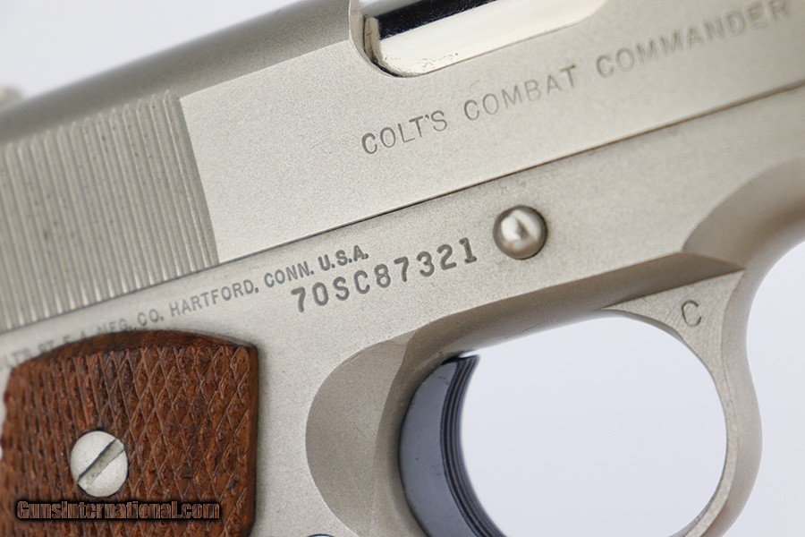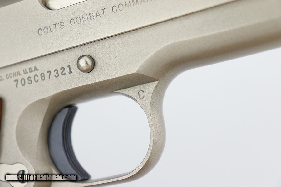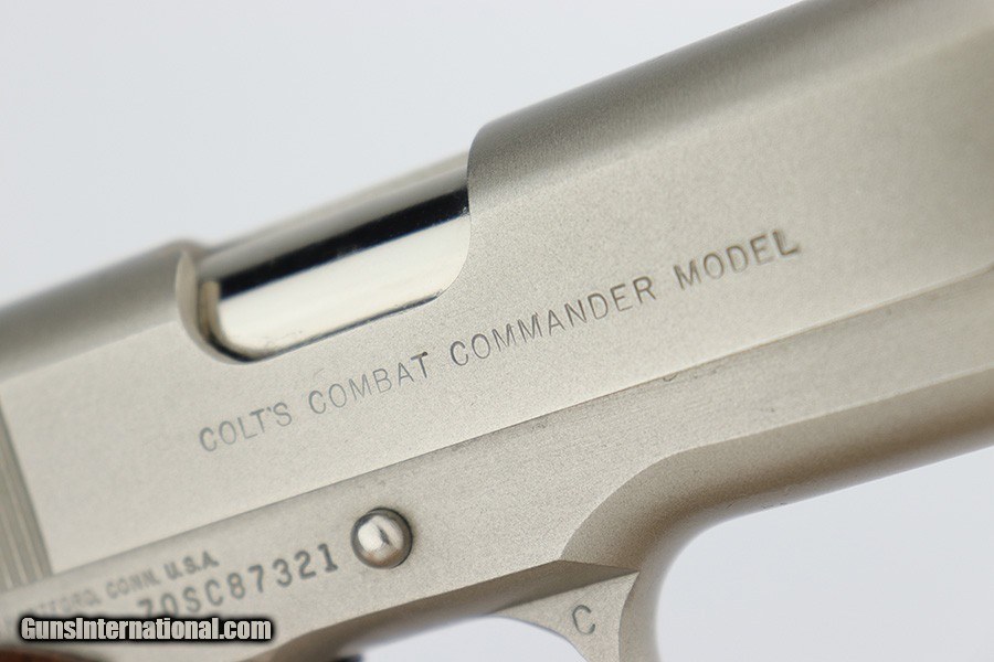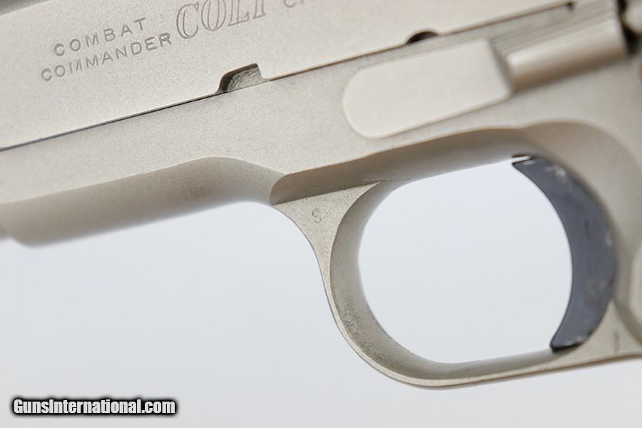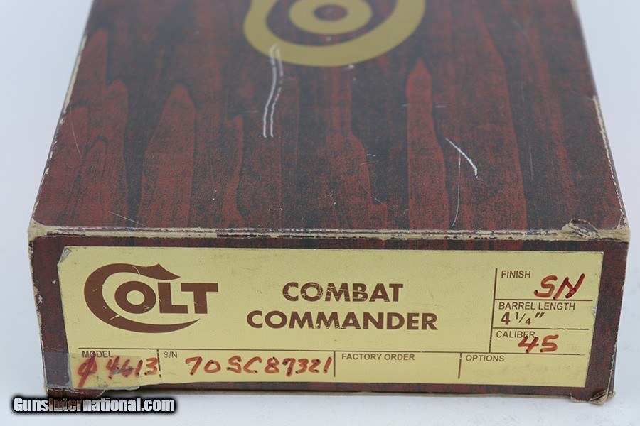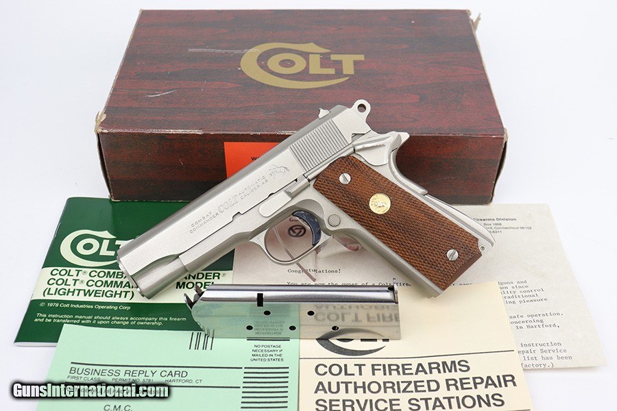 Description: This is a mint Colt Combat Commander in the original, matching box. Made in 1979, it has the desirable factory satin nickel finish with almost zero wear to mention. Mint bore and excellent grips. Has the Styrofoam insert intact, and the manual. FFL required. SOLD Handgun Caliber: .45 ACP (.45 Auto) |