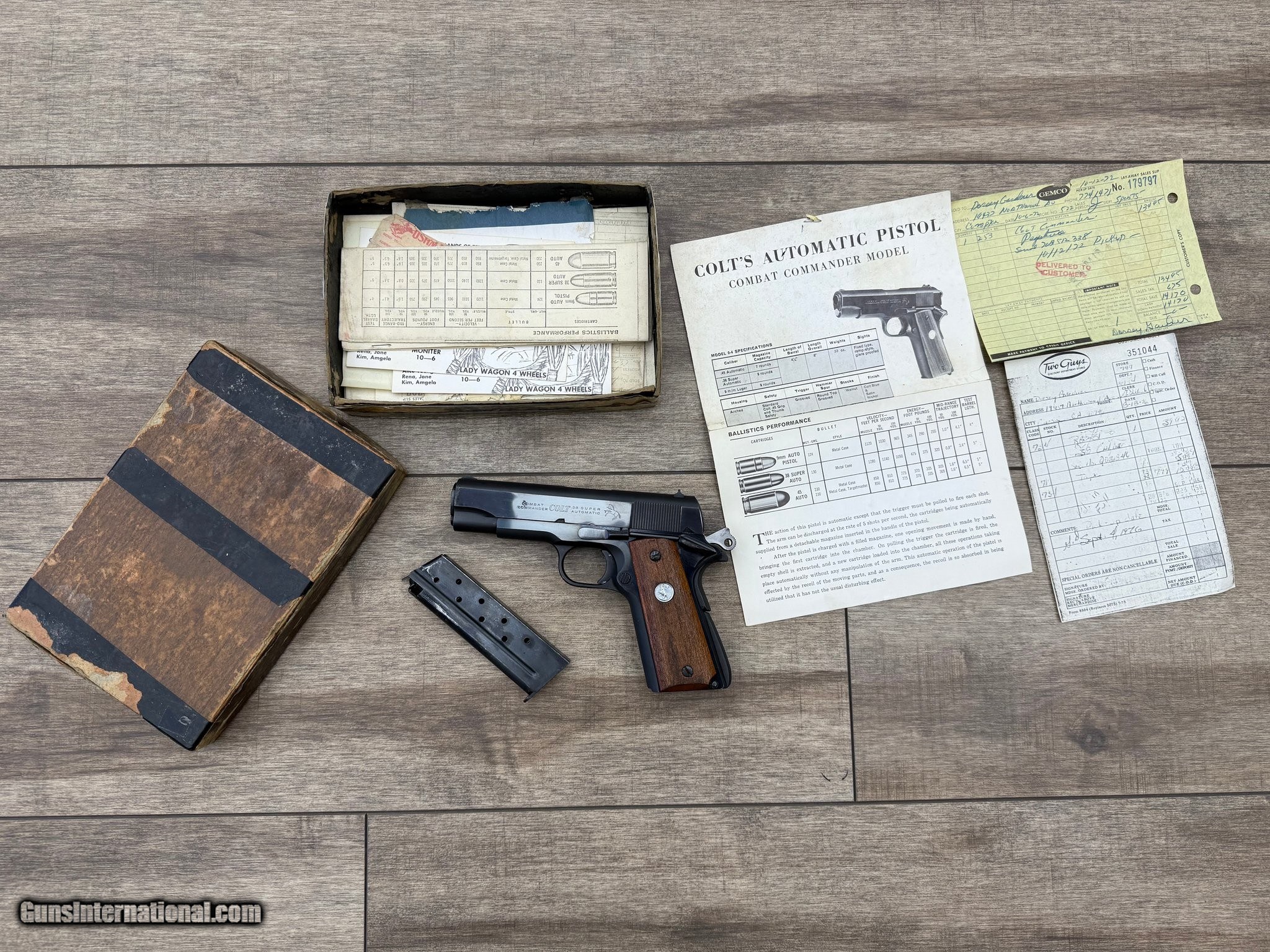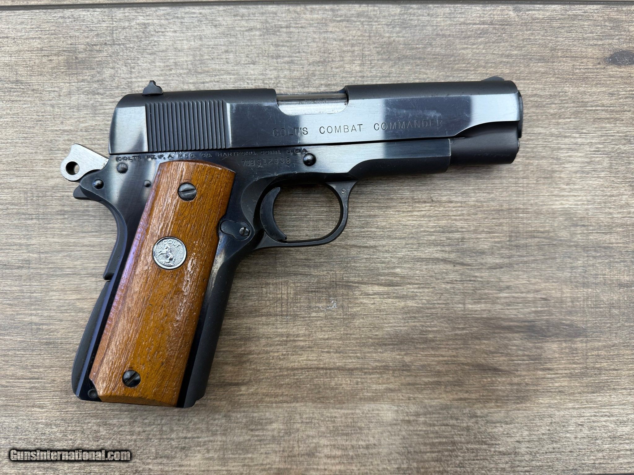 Description: Guns Listing ID: 567878 AWESOME CLASSIC COLT COMBAT COMMANDER CHAMBERED IN .38 SUPER COMES WITH ORIGINAL BOX AND PAPERWORK FROM 1972. SERIAL NUMBER LOOKUP CONFIRMS ITS A 1972 ERA COLT. ALONG WITH ORIGINAL RECEIPT AND MANUAL, THERE IS NO DOUBT. ORIGINAL MAG. LOOKS ALL ORIGINAL. SMALL SCUFFS ON SLIDE AND SAFETY PICTURED. WON‚T LAST LONG. SOLD Manufacturer: COLT Model: 1911 COMBAT COMMANDER Caliber Info: .38 SUPER Condition: Used - Non-Certified Barrels: 4.25" BARREL Action: SEMI AUTOMATIC |