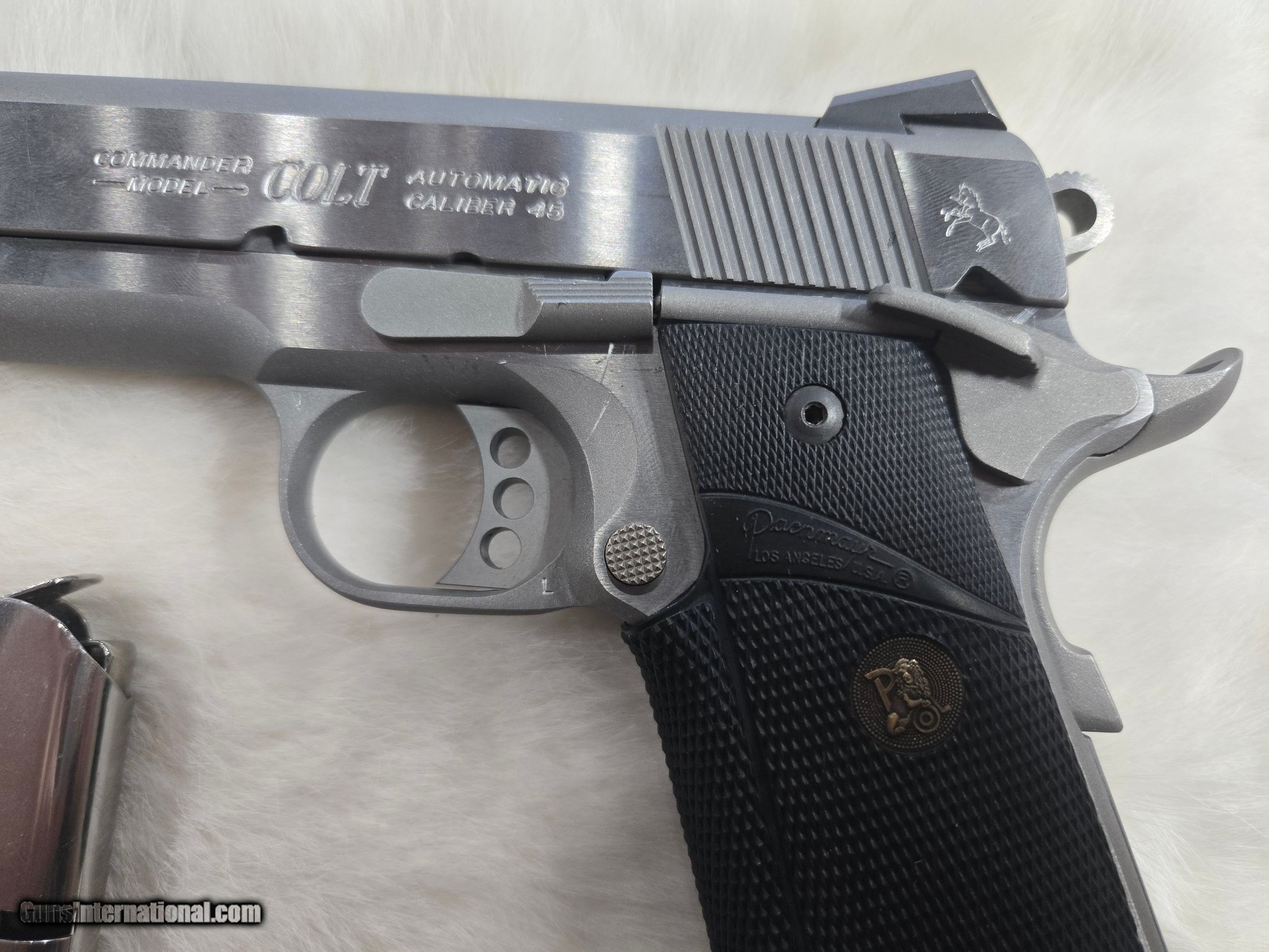 Description: Guns Listing ID: 553817 Colt Combat Commander 45 with 2 magazines in very good condition. SOLD Manufacturer: COLT Model: Combat Commander Caliber Info: .45 ACP Condition: Used - Non-Certified Barrels: 4.25 BARREL Action: SEMI AUTOMATIC Finish: stainless steel |