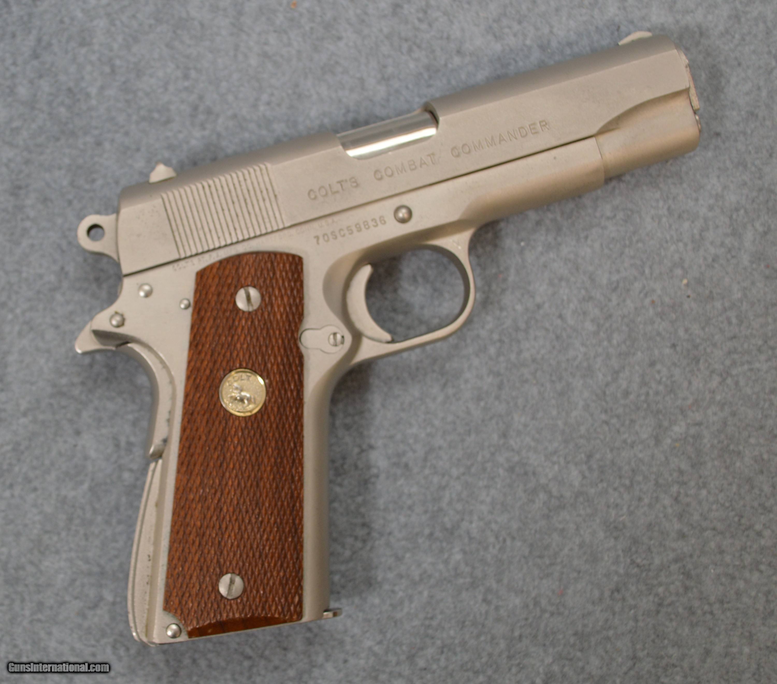 Description: This Colt Combat Commander is a compact, commander-size 1911 semi-automatic pistol that blends the classic .45 ACP power with improved carry ability. Built with Colt's traditional attention to fit and finish, it features single-action operation, a crisp trigger, and familiar 1911 controls for rapid, intuitive handling. With a 4.25" barrel and single-stack magazine, it offers a balance of capacity, accuracy, and manageable recoil. The Combat Commander's versatility makes it well-suited for duty, personal defense and range use for shooters who want full-power performance in a slightly shortened frame. This pistol was manufactured circa 1978 and is in excellent condition. .45 ACP SOLD Metal Condition: Excellent Wood Condition: Excellent Bore Condition: Excellent Barrels: 4.25 Triggers: Serrated Weight: 2.30 lbs. Sights: Factory Item Location: Louisville, KY |