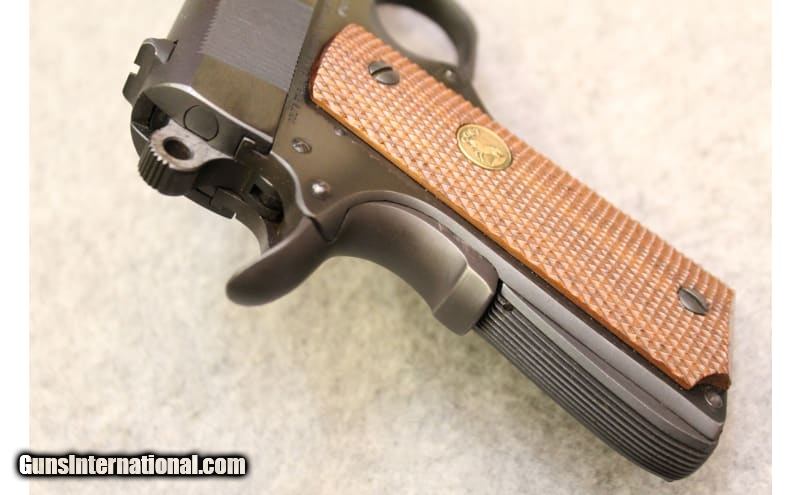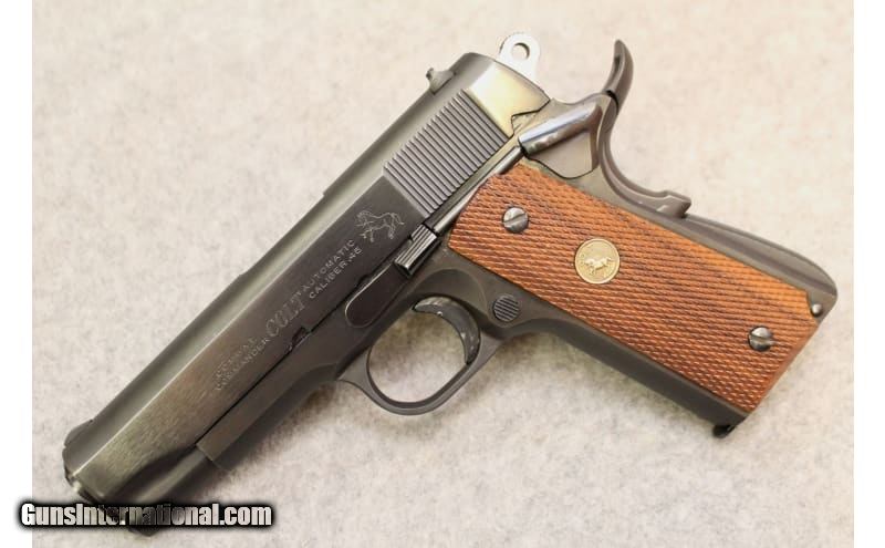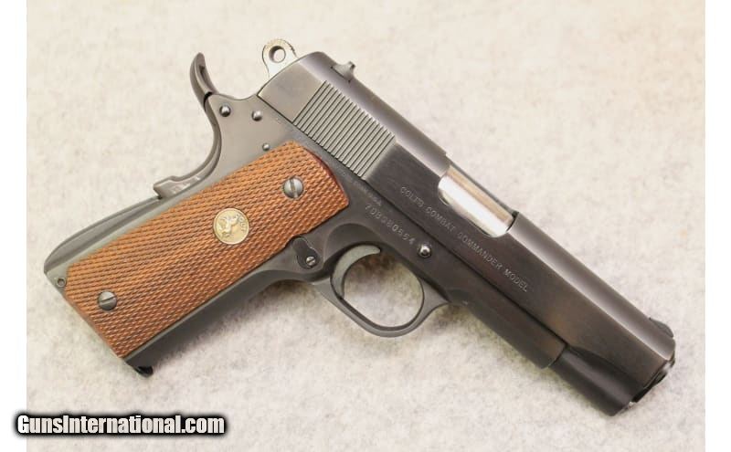 Description: This Colt Combat Commander chambered in .45 Auto features, excellent blue finish, extended beavertail, four inch barrel, and Colt wood checkered grips. .45 Auto SOLD Metal Condition: Excellent Wood Condition: Excellent Bore Condition: Bright Barrels: 4 Inches Weight: 2.2 lbs. Item Location: Hoffman Estates, IL |