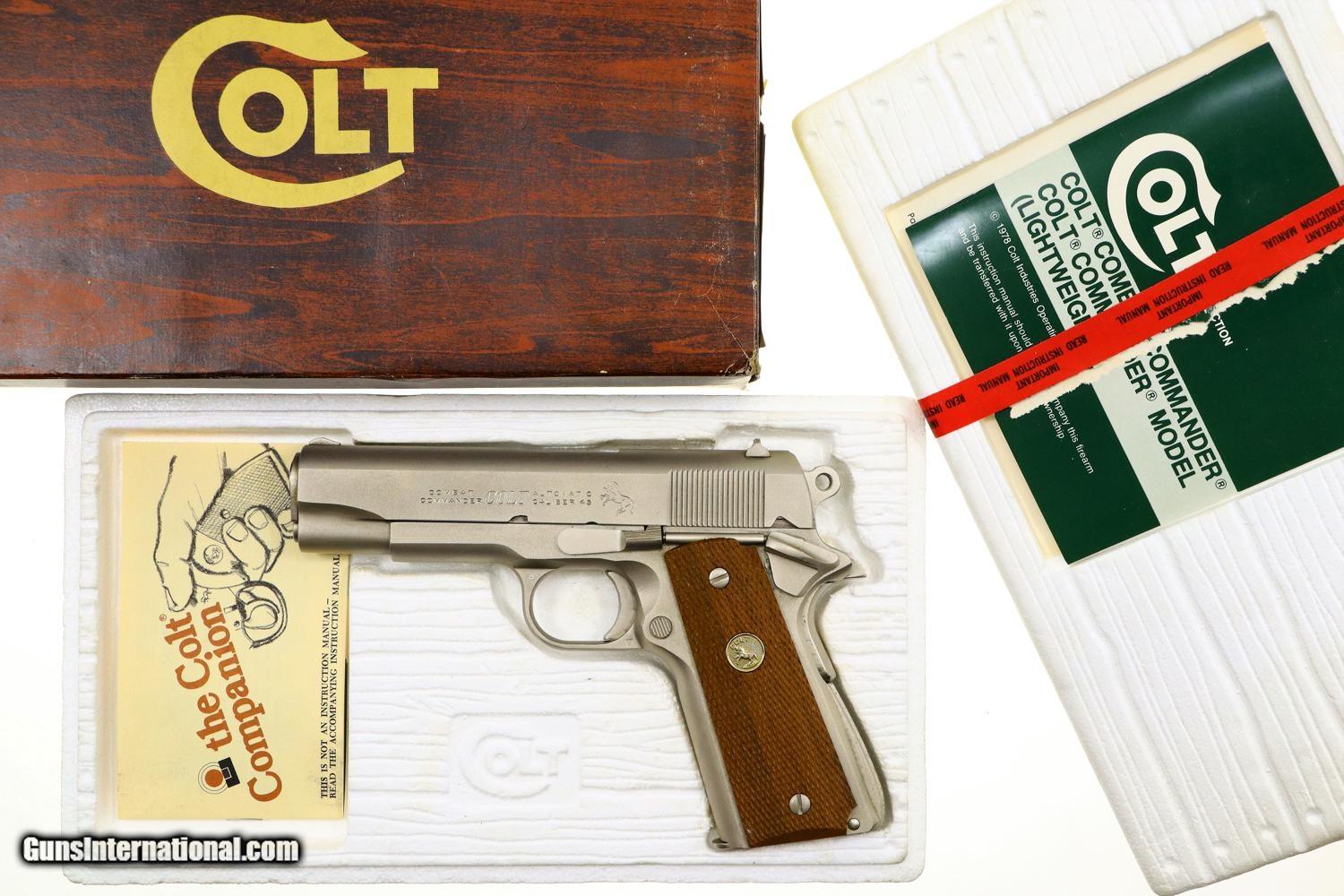 Excellent+ satin finish Colt Combat Commander in original matching shipping box complete with literature.