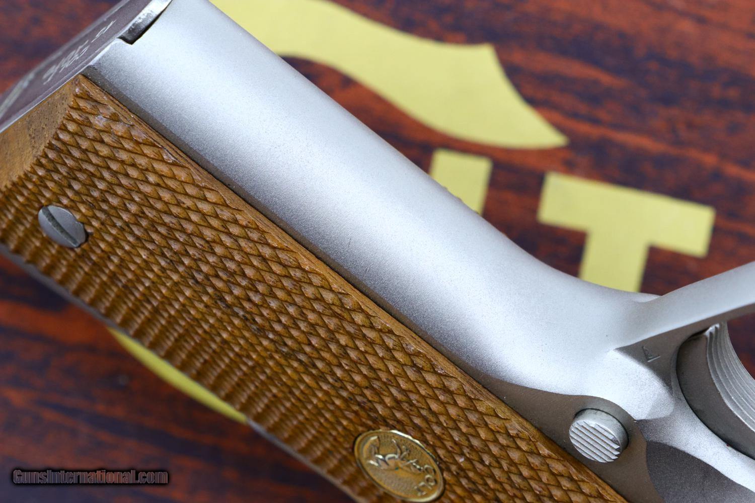 Description: Excellent+ satin finish Colt Combat Commander in original matching shipping box complete with literature. Synopsis: Colt, Combat Commander, excellent plus, satin nickel, boxed, in .45 Condition: Excellent+ as applied to pistol and magazine. Mirror bore. Perfect manual mechanics. Styrofoam liner with stains and handling marks as photographed. Shipping box with shelf wear and fraying of the end label. A great gun, with just enough use to be equally at home at the range or in your collection! ~~Insured shipping fee of $55; most packages shipped using FedEx 2nd Day.~~ SOLD Manufacturer: Colt Serial Number: 70SC66373 Caliber Info: 0.45 |