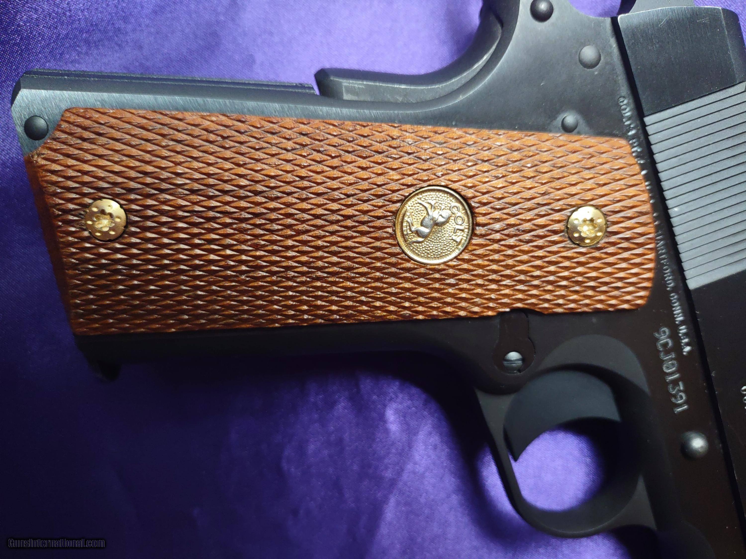 Description: COLT COMBAT COMMANDER MODEL in 9mm caliber with 9-round + 1 capacity magazine, 4.25" barrel with bright glossy bore, white 3-dot sights, gorgeous checkered walnut grips with Colt gold medallions and hex-head gold grip screws and pristine blu finish. This masterpiece comes with factory original owner's manual in the original Colt blue hard case with serial number PLUS a high quality soft zipper carry case. The price is $1550 including UPS shipping to the FFL dealer near you. Call or text me at 318-780-4242 if you are interested. Manufacturer: Colt Model: Combat Commander Serial Number: 9CJ01391 Barrel Length: 4.25 Bore Info: bright and glossy Chambers: flawless Ejectors: Semi-automatic Condition: Flawless Metal Condition: Flawless Wood Condition: Flawless Bore Condition: Perfect, glossy Barrels: Single Barrel Type: Pistol Action: Semi-automatic Triggers: Single Finish: blu Sights: 3 white dot Engraving: None Extras: Factory hard box Case: Quality soft zipper carry case Item Location: Shreveport, Louisiana Grips: Checkered walnut Price: $1,550.00 Contact Seller |