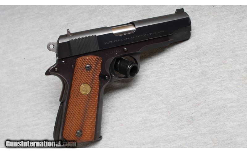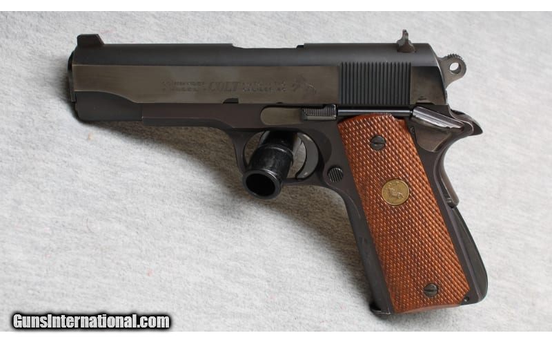 Description: Very good condition, light finish wear, small nicks and scratches, comes with one Colt mag. Classic Colt 1911 "Commander Model" pistol, 4 1/4" Barrel, factory iron sights, blued finish, serrated ring hammer & mag release, checkered slide stop, curved mainspring housing and Colt factory wood grips. Serial number CLW023509. .45 Auto SOLD Chambers: Semi auto Metal Condition: Very good Bore Condition: Bright Barrels: 4 1/4 Triggers: Single action Butt Pad: Wood grips Sights: Factory iron sights Item Location: La Vista, NE |