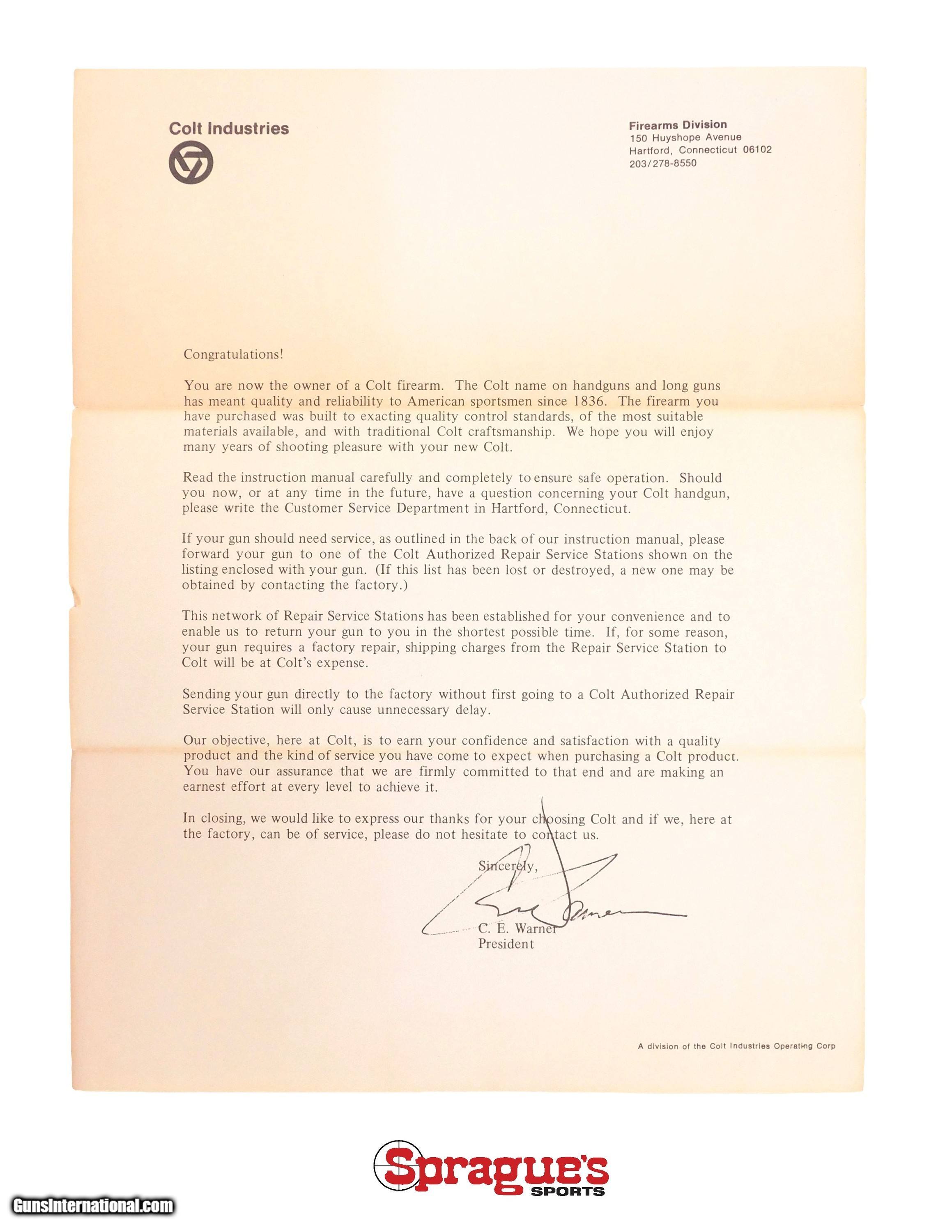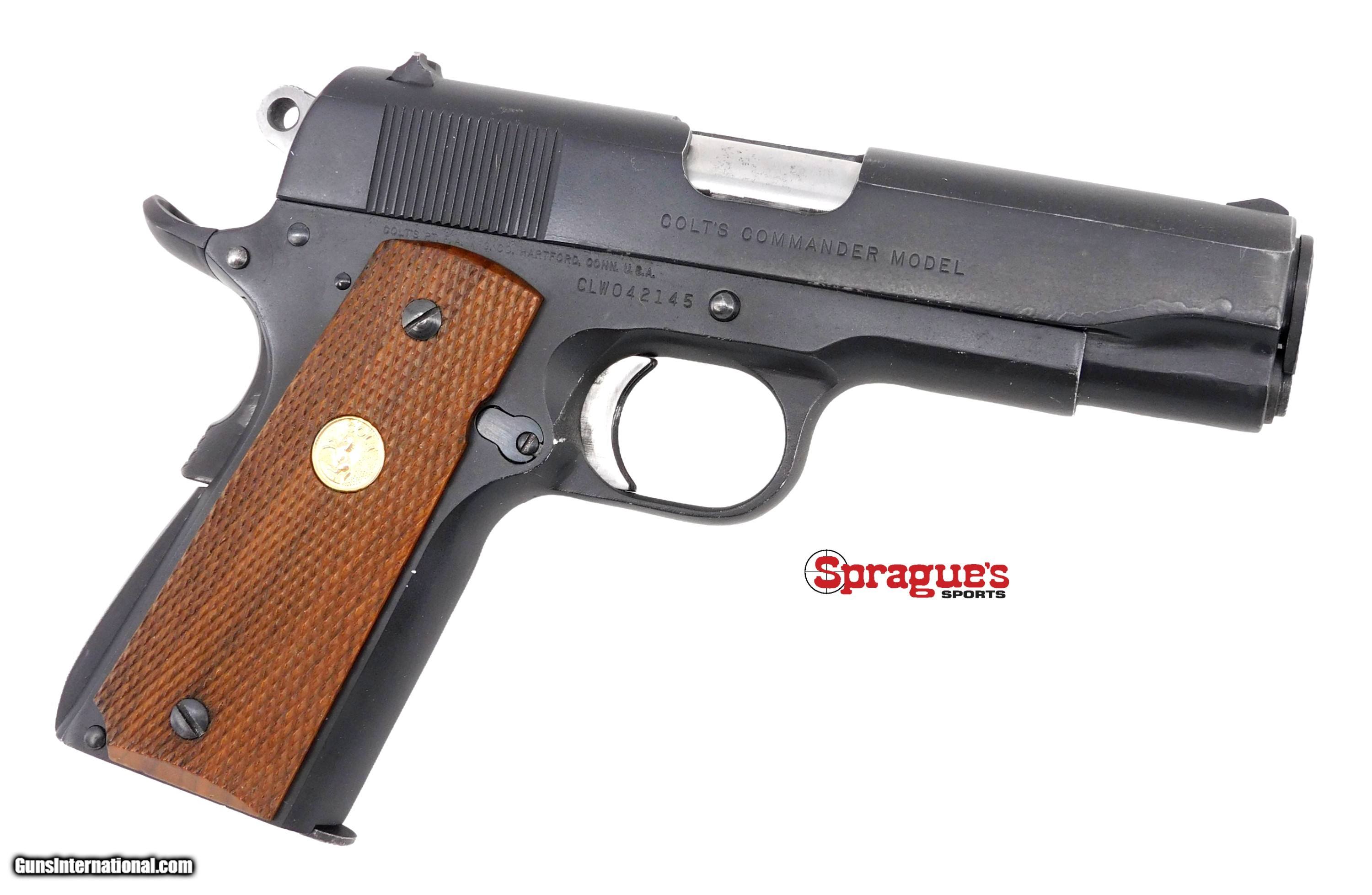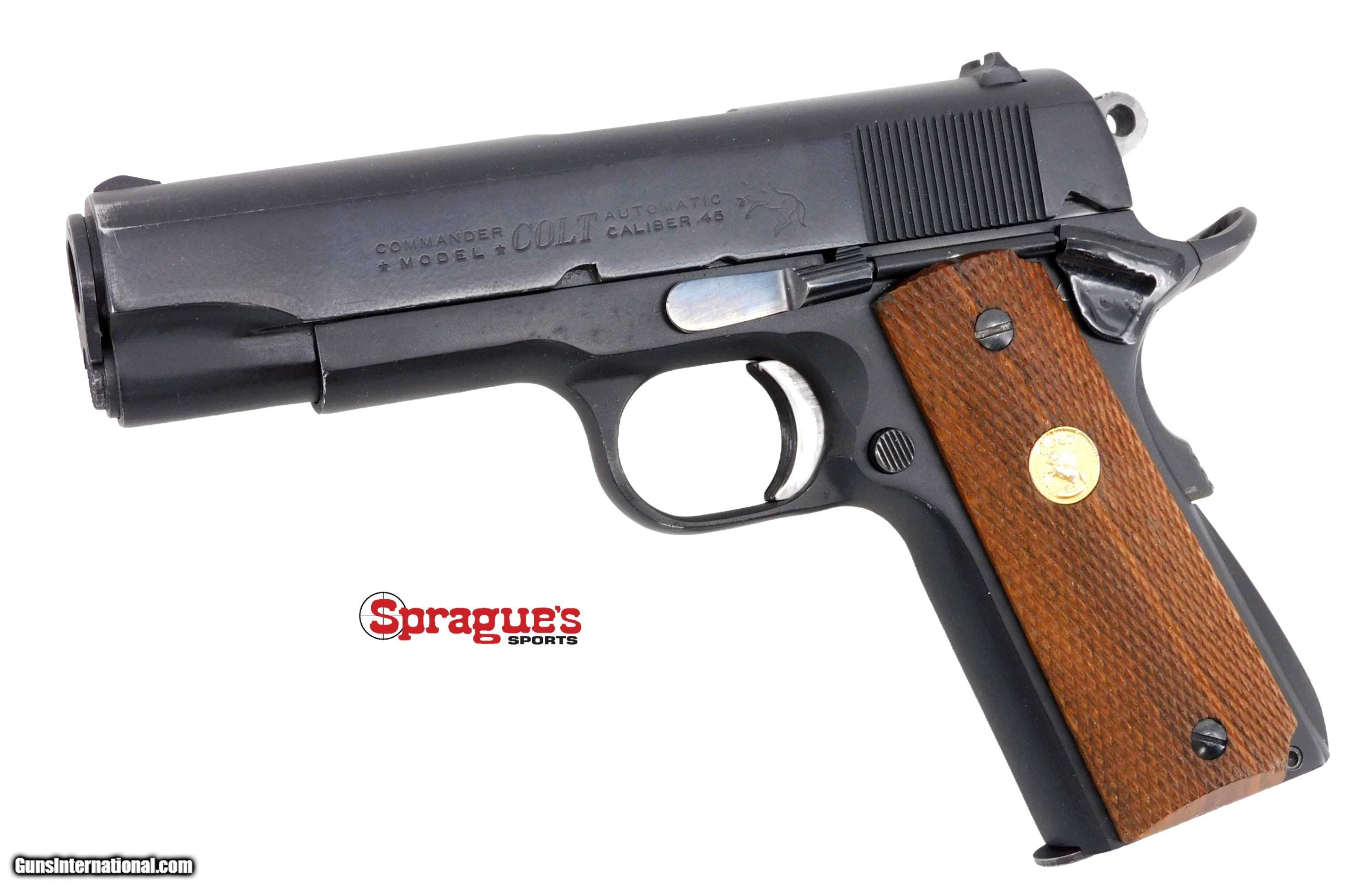 Description: Colt Commander LightWeight 4 1/4" 45 ACP Original Box Two Mags MFG 1971 Manufacturer: Colt Model: 1911 Commander LightWeight Caliber:.45 ACP Manufactured:1971 Barrel:4 ¼", bright shiny bore, good rifling Rear Sight:Dovetail square notch Front Sight:Serrated ramp, fixed Optic:N/A Finish:Blued, has been re-blued at some point, light handling marks Action:Single action semi-automatic, mechanically solid, fed by detachable magazines, rear cocking serrations, serrated slide release - thumb safety, checkered magazine release, extended beavertail grip safety (original included), serrated main spring housing - trigger - hammer spur, left side of slide stamped with “COMMANDER” - “* MODEL *” - “COLT” - “AUTOMATIC” - “CALIBER .45” - with Rampant Colt logo, right side is stamped “COLT COMMANDER MODEL”, right side of frame is stamped “COLT'S PT.F.A. MFG. CO. HARTFORD. CONN. U.S.A.” - “CLW042145”, light handling marks Grips:Very nice checkered walnut with gold Rampant Colt medallions inset Accessories:Original Colt box with Styrofoam inner box, Colt Instruction Manual, two Colt magazines, original store hang tag. Condition:This is a very nice example of a used Colt Commander Light Weight pistol including original box with Styrofoam inner box and manual. Serial Number:CLW042145 Sprague's Number:156541 +++++++++++++++++++++++++++++++++++ Add 3% for Credit Card Sipping will be actual cost plus insurance +++++++++++++++++++++++++++++++++++ This handgun will be a GREAT addition to your future outings! In-house pictures are of the item(s) being sold and the item(s) that will be shipped to the buyer! If there are no boxes, documentation, accessories, etc. shown in the pictures or described in the description, they are not included. Any stock pictures will be labeled as such. PRIOR TO PURCHASE!!! We will do our best to answer all questions Monday through Saturday during business hours, but are CLOSED ON SUNDAY. PLEASE ALLOW 7-10 BUSINESS DAYS FOR PROCESSING PRIOR TO BEING SHIPPED ONCE PAYMENT AND FFL INFORMATION HAVE BEEN RECEIVED. Buyers are responsible to ensure that you have fully reviewed the listing before purchase. Buyers are responsible to know and ensure that they are in compliance with local, state, and federal regulations/laws and are of legal age for items purchased. We have not test fired any firearms unless specifically noted in the description. Have a GREAT SAFE HEALTHY day! SOLD |