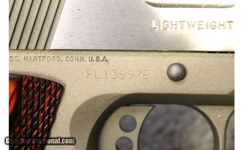 Description: This Colt Lightweight Commander chambered in .45 Auto features, stainless finish, alloy frame, Novak 3-dot white sights, ambidextrous manual thumb safety, extended beavertail, serrated mainspring housing, and wood checkered furniture. .45 Auto SOLD Metal Condition: Great Wood Condition: Great Bore Condition: Bright Barrels: 4.25 Weight: 1.8 lbs. Item Location: Hoffman Estates, IL |
