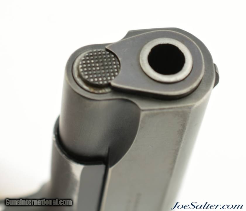 Description: Serial #10223-LW, .38 Super Auto, 4.25 inch barrel with an excellent bore. This is the Lightweight Colt Commander Model pistol manufactured in 1951 which was the third year of production. The metal surfaces retain about 85-90% original blue and anodized finishes with small amounts of a later added blue in the slide top. The frontstrap, grip safety, and arched mainspring housing have to toned to gray in addition to fine pitting along the top edges of the slide, and light to moderate edge wear. The brown checkered Coltwood grips feature Rampant Colt monograms and remain in near excellent condition showing light wear. This gun has a serrated ramp front sight, drift adjustable rear sight, and the other features are correct for the period of manufacture. It includes a single factory marked nine-round magazine. It also includes a factory letter indicating this gun shipped as described on May 18, 1951, to Charles Ilfeld Company, Albuquerque, New Mexico, in a fifteen gun delivery. A fine example of these early Commander model pistols in desirable .38 Super. FFL or C&R SOLD |
