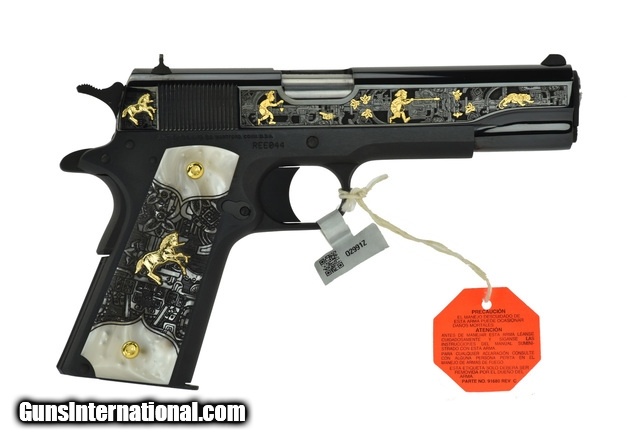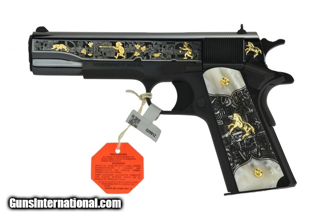 Colt Government “Aztec Jaguar Azul” .38 Super caliber pistol. New. Rare Talo 1 of 300 Aztec Jaguar Azul with gold decorations.