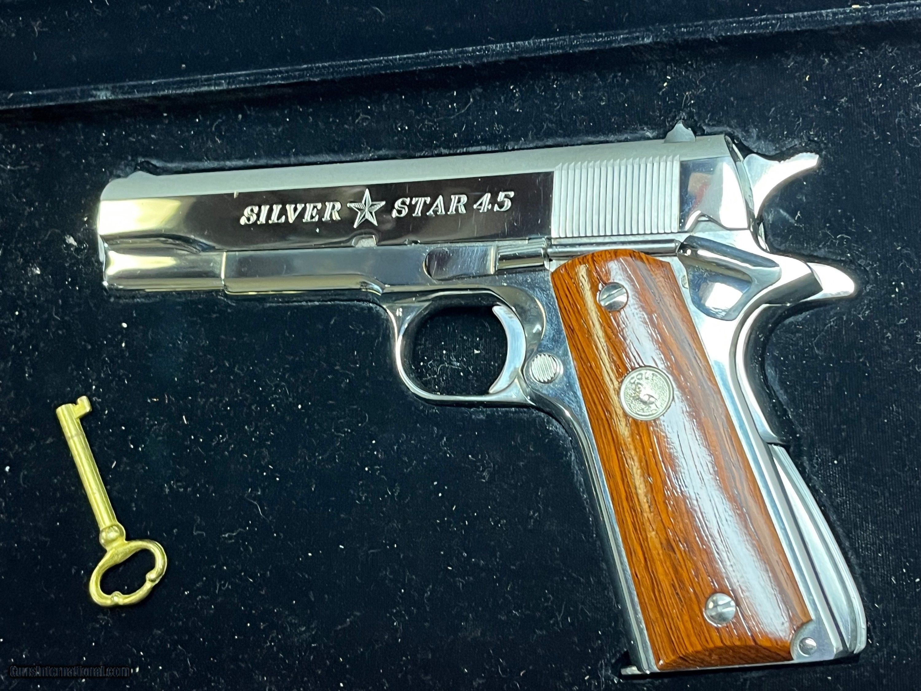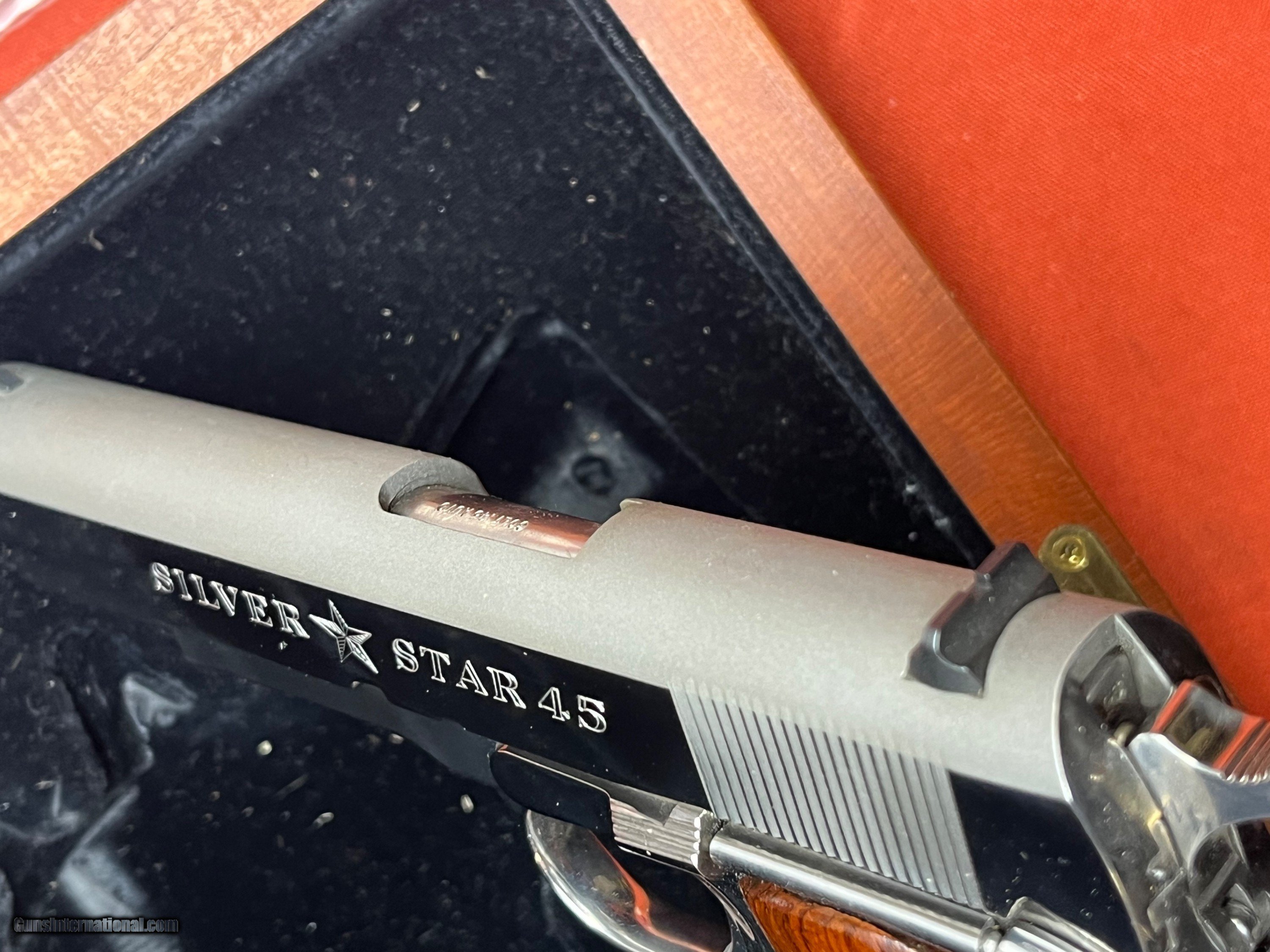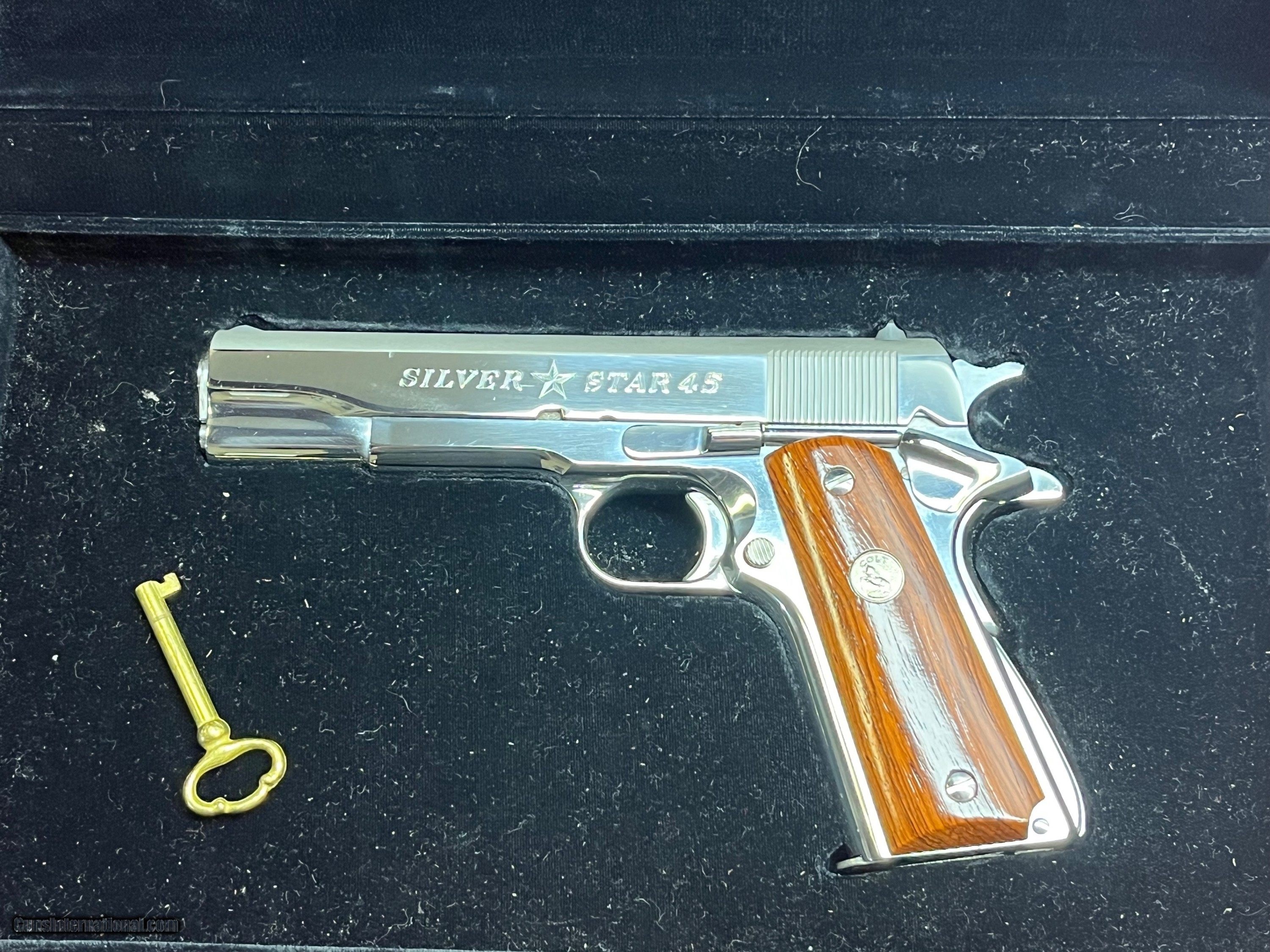 COLT 1911A1 POLISHED STAINLESS SEMI AUTO PISTOL ~ SILVER STAR ~ COMMEMORATIVE #725 OF 1000